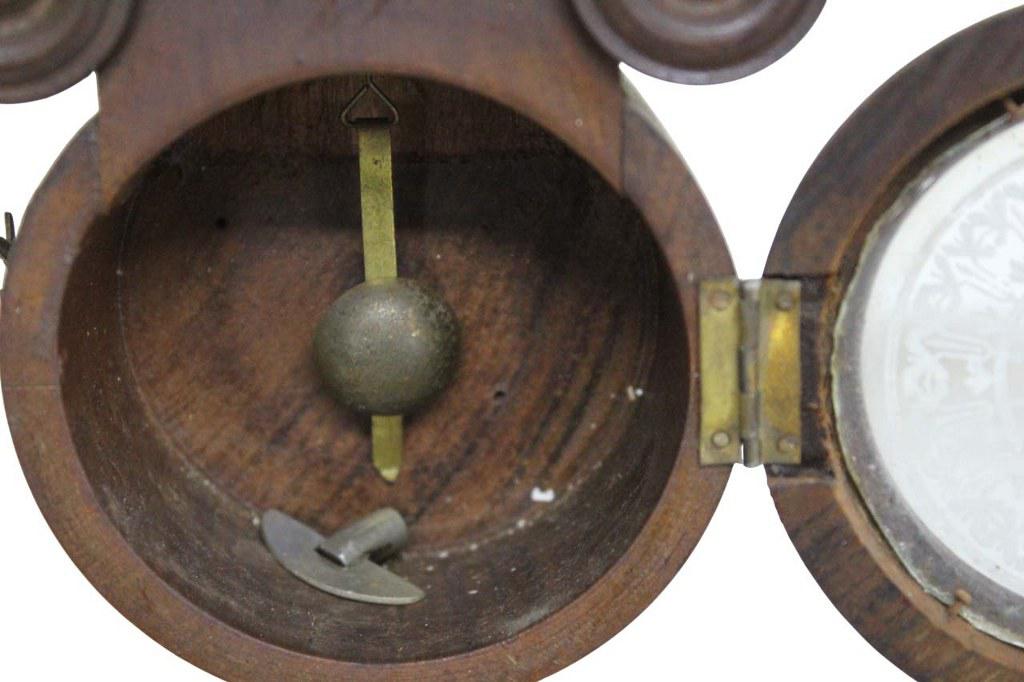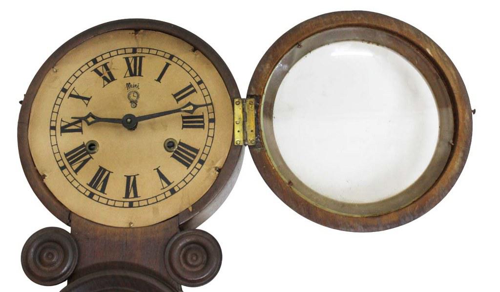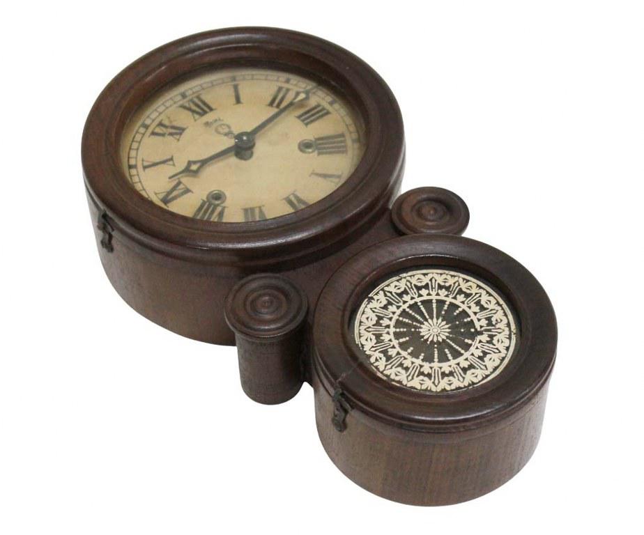Tradicional relógio modelo oito Mini com bela caixa em madeira nobre. Mostrador de papel com algarismo romano, acabamento frontal com vidro. Maquinário com mecanismo a corda sem teste e sem garantias futuras.
