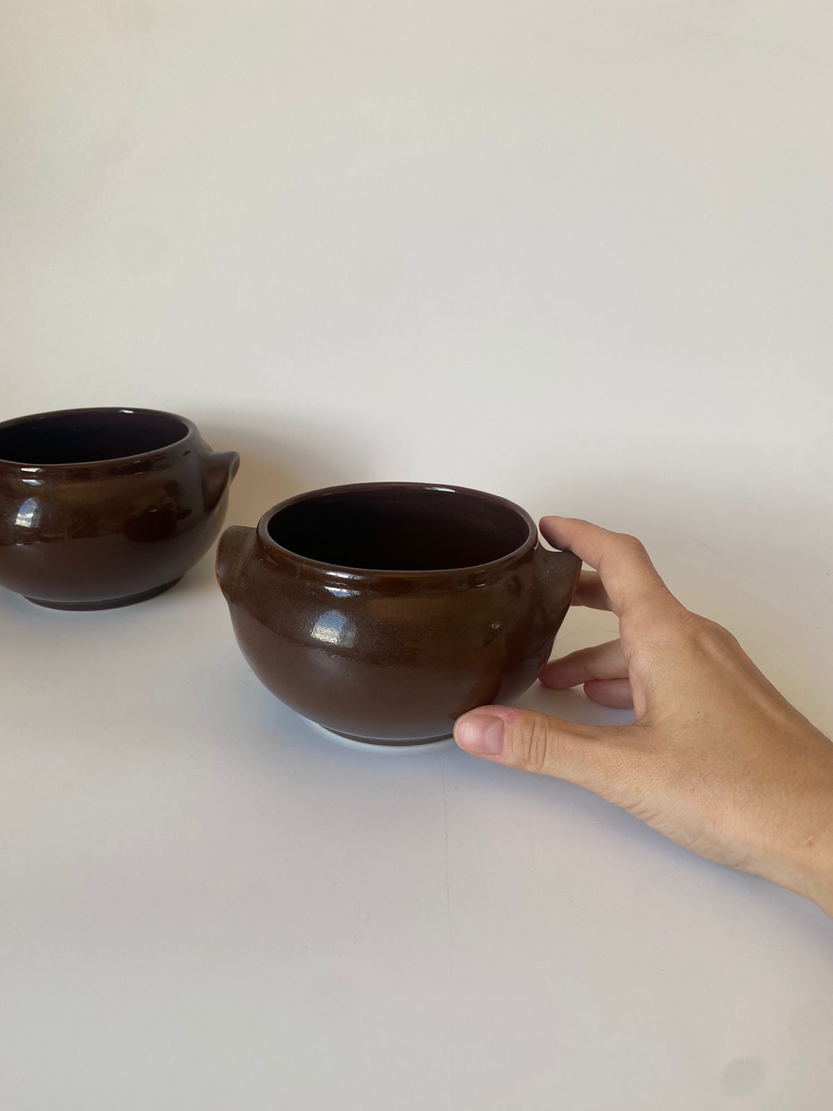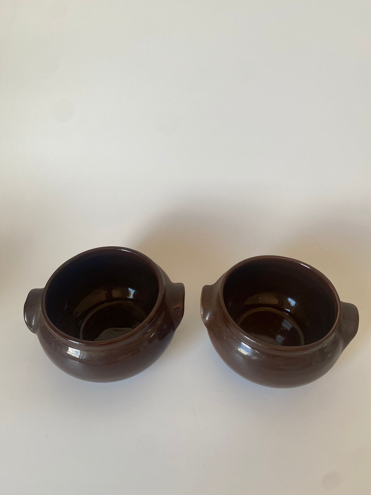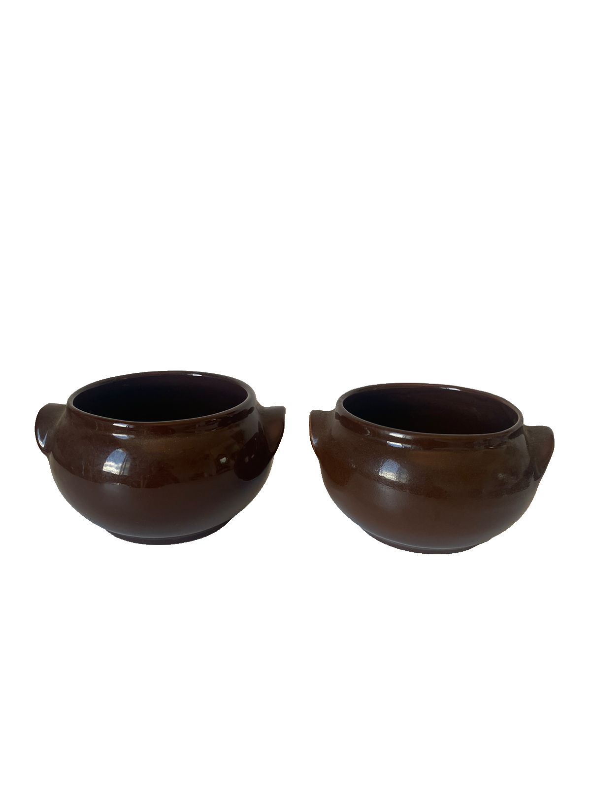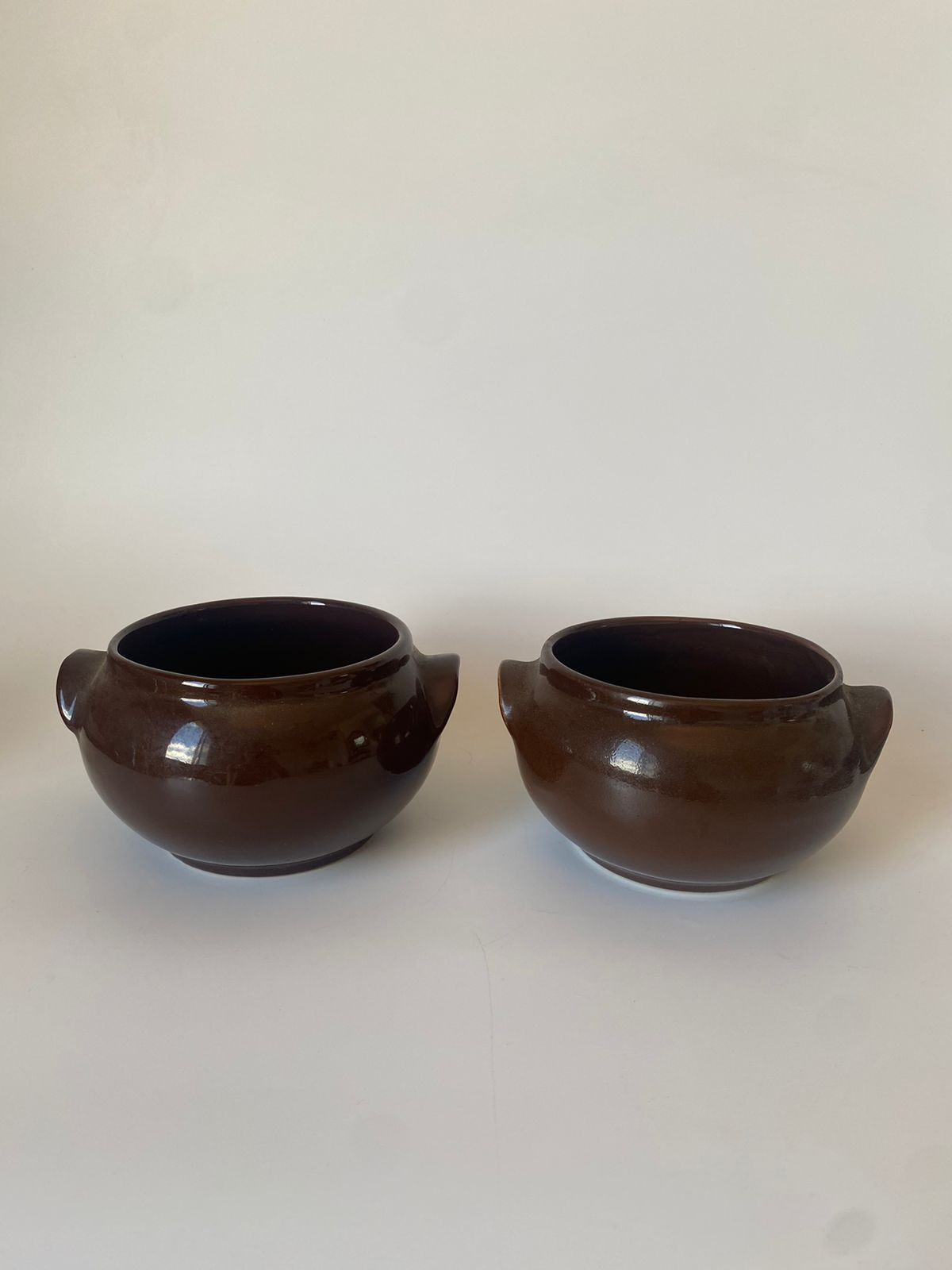 Dupla de bowls em cerâmica, marrom.
