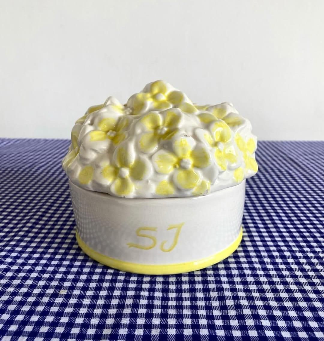 Queijeira em cerâmica, com as iniciais SJ