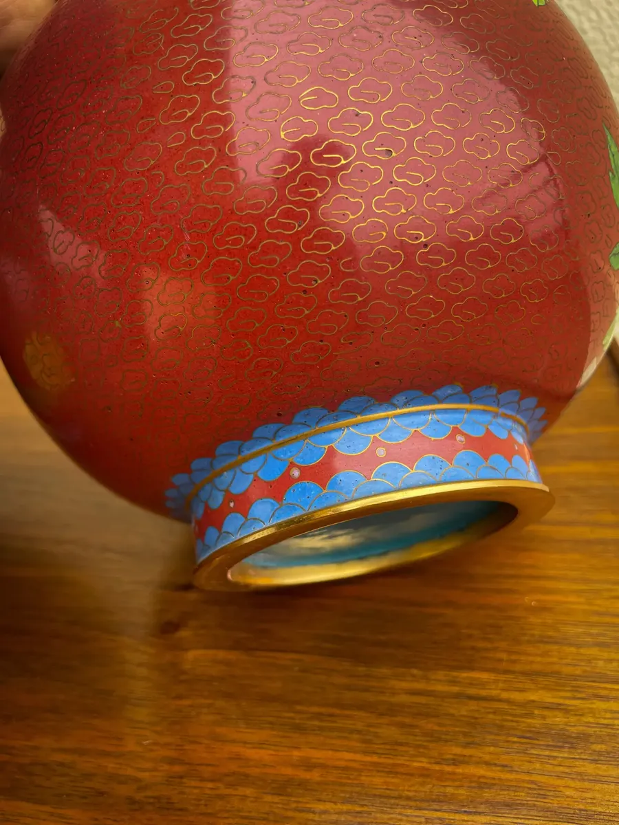 Essa técnica de trabalho em esmalte na qual tiras finas de metal são coladas sobre uma superfície, formando um desenho composto por vários pequenos compartimentos preenchidos com pasta de esmalte vitrificado. A técnica do Cloisonné é de origem bizantina e foi introduzida na China no século XIV.