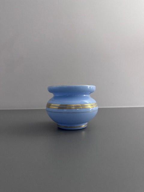 Um encontro de elegância, tradição e raridade — peça que reflete o esplendor da arte francesa em vidro opalino com pintura a mão em ouro.