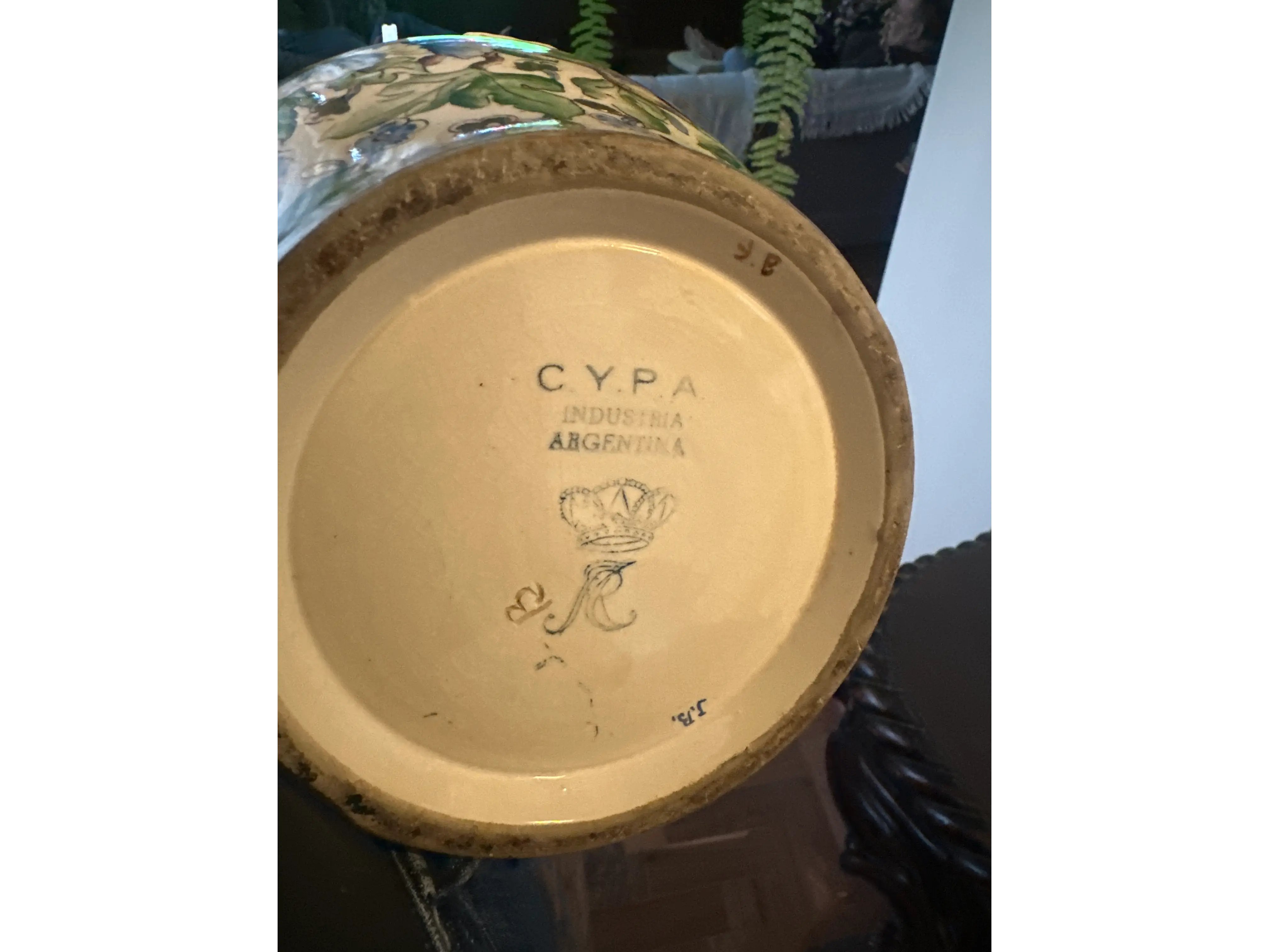 Elegante vaso em porcelana vitrificada, manufatura C.Y.P.A. – Cerámica y Porcelana Argentina, marcado na base com selo da fábrica (coroa sobre a letra “R”, inscrição Industria Argentina).