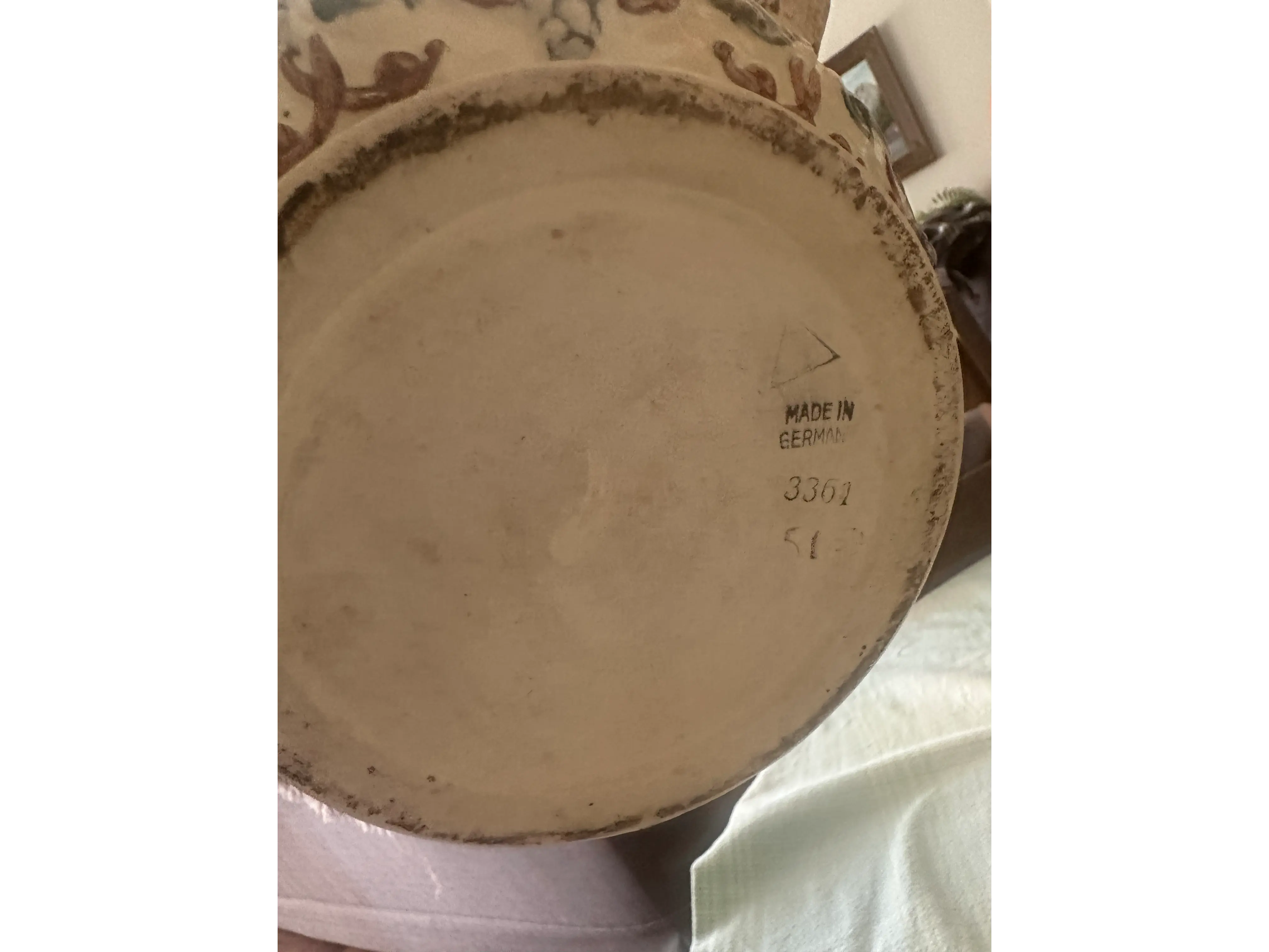 Elegante vaso em porcelana alemã, marcado na base com a inscrição “Made in Germany” e código de produção (3362). O detalhe do símbolo triangular indica fabricação do período entre-guerras, anterior a 1949.