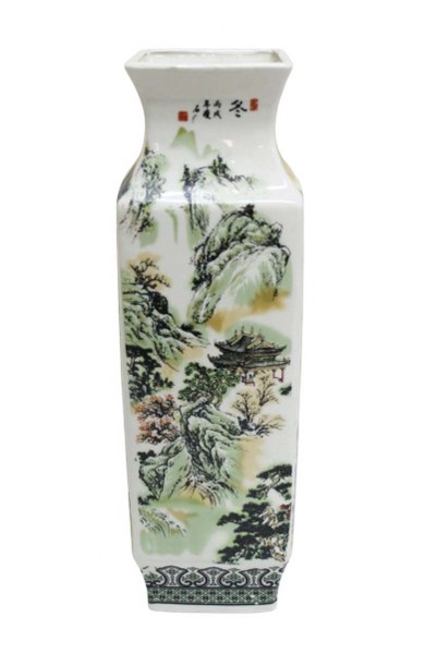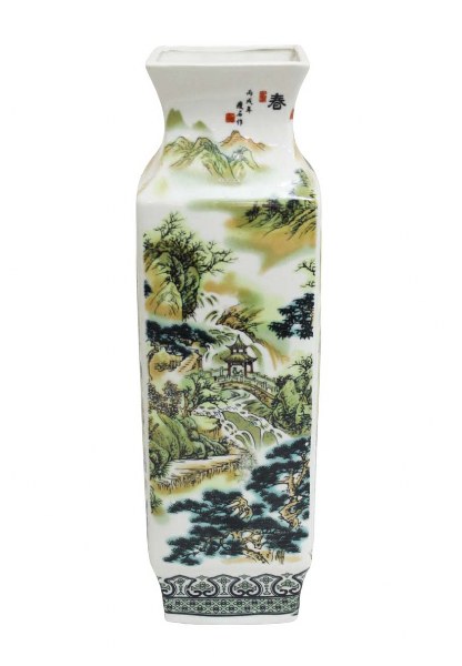 Vaso oriental em cerâmica com decoração de cenas típicas do cotidiano.