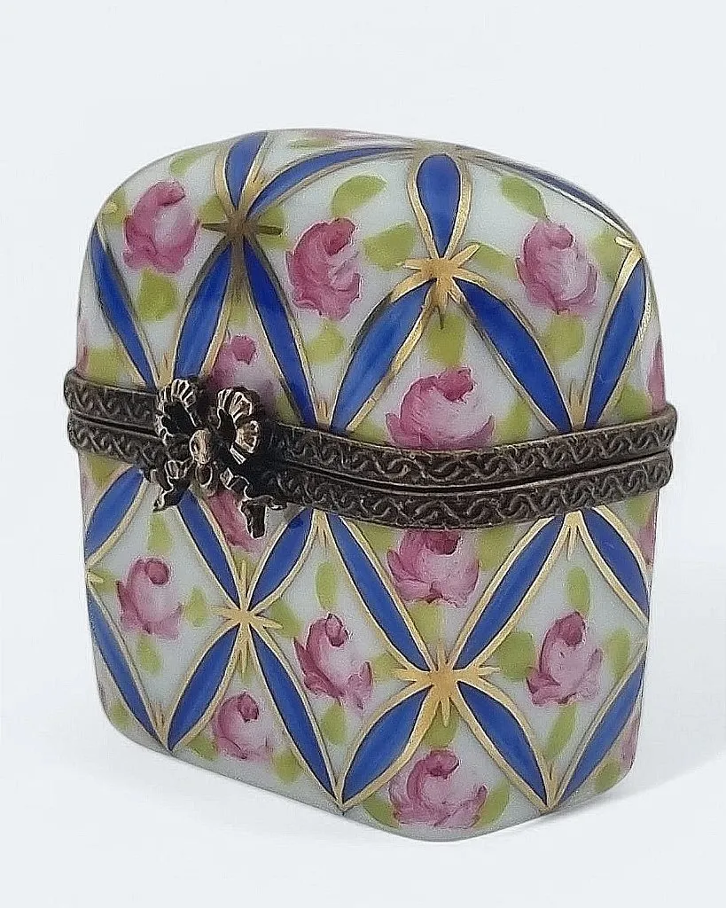 A Pequena caixa em porcelana Limoges com 2 frascos é uma peça de arte que combina elegância e funcionalidade. Feita à mão por artesãos experientes, esta caixa é ideal para armazenar pequenos objetos ou como um elemento decorativo em sua casa.
