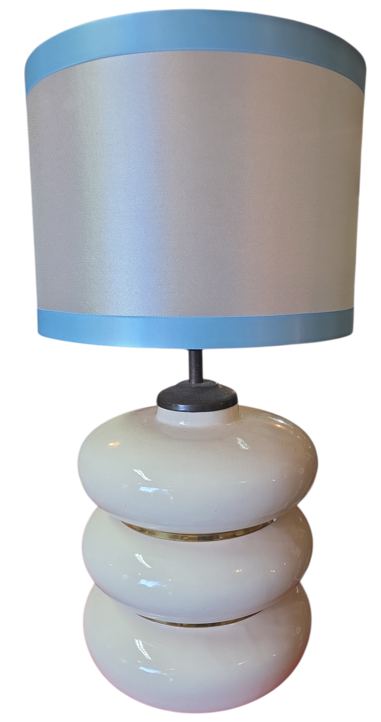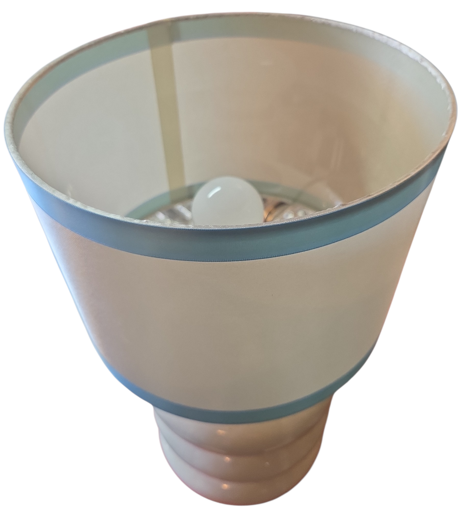 Abajur versátil e elegante com base em porcelana trabalhada em relevo ondulado. Design funcional que combina com qualquer estilo de decoração, do clássico ao moderno.