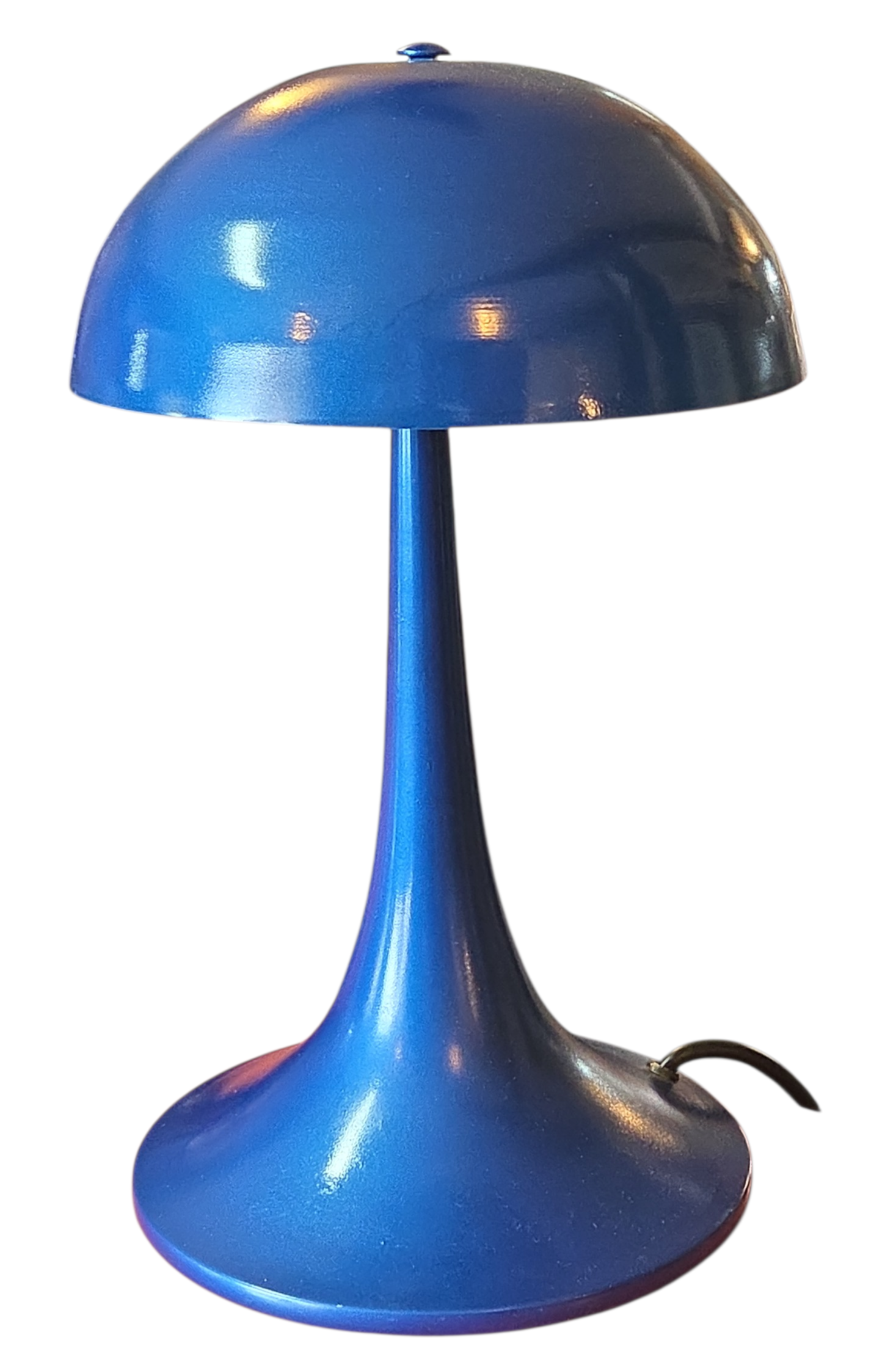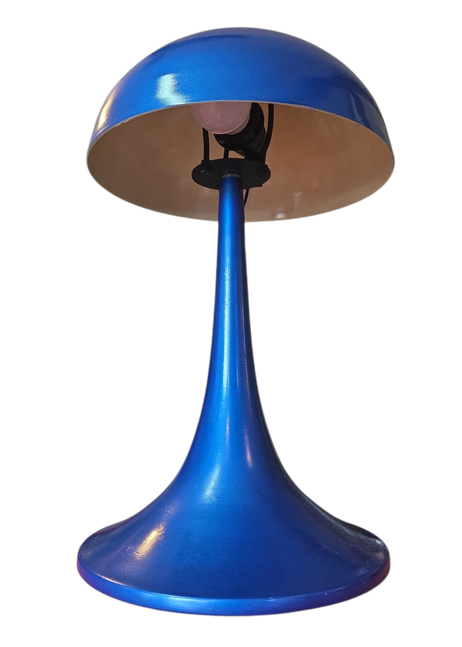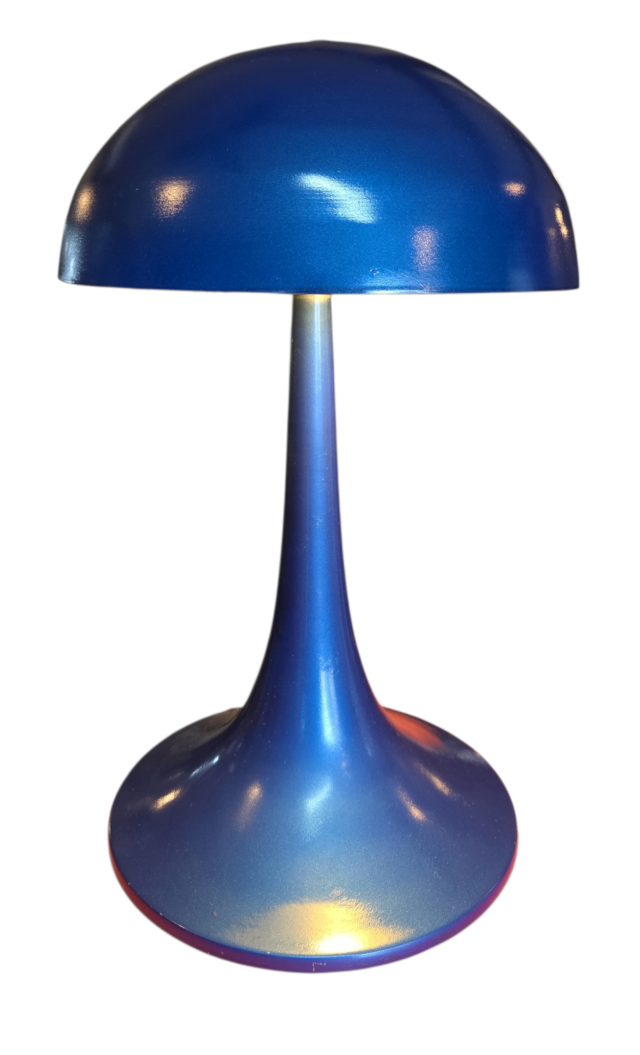 Este exemplar é uma peça icônica de iluminação que remete ao design futurista e audacioso das décadas de 1960 e 1970, conhecido como Space Age. Com suas linhas fluidas e silhueta inspirada no formato de um cogumelo, este abajur combina a estética retrô com uma presença visual marcante.