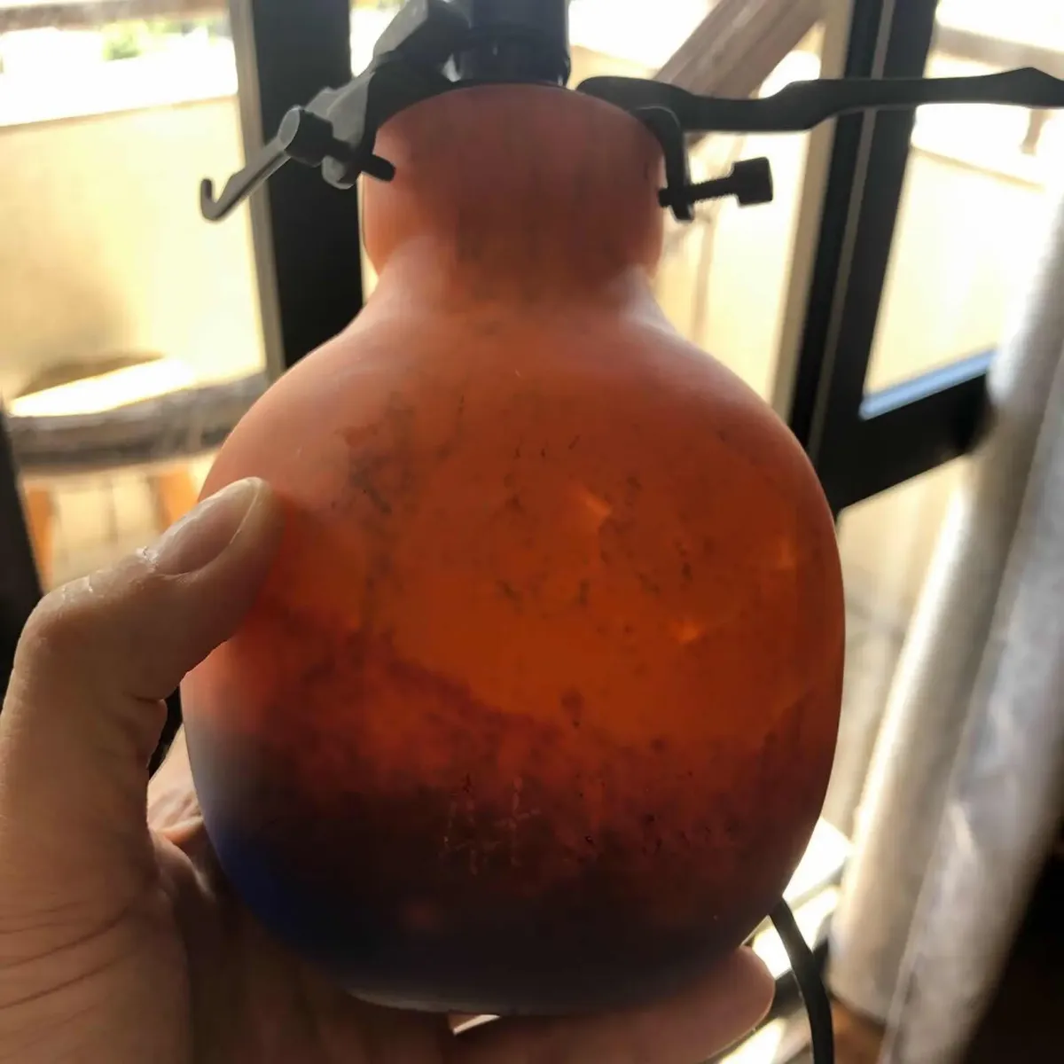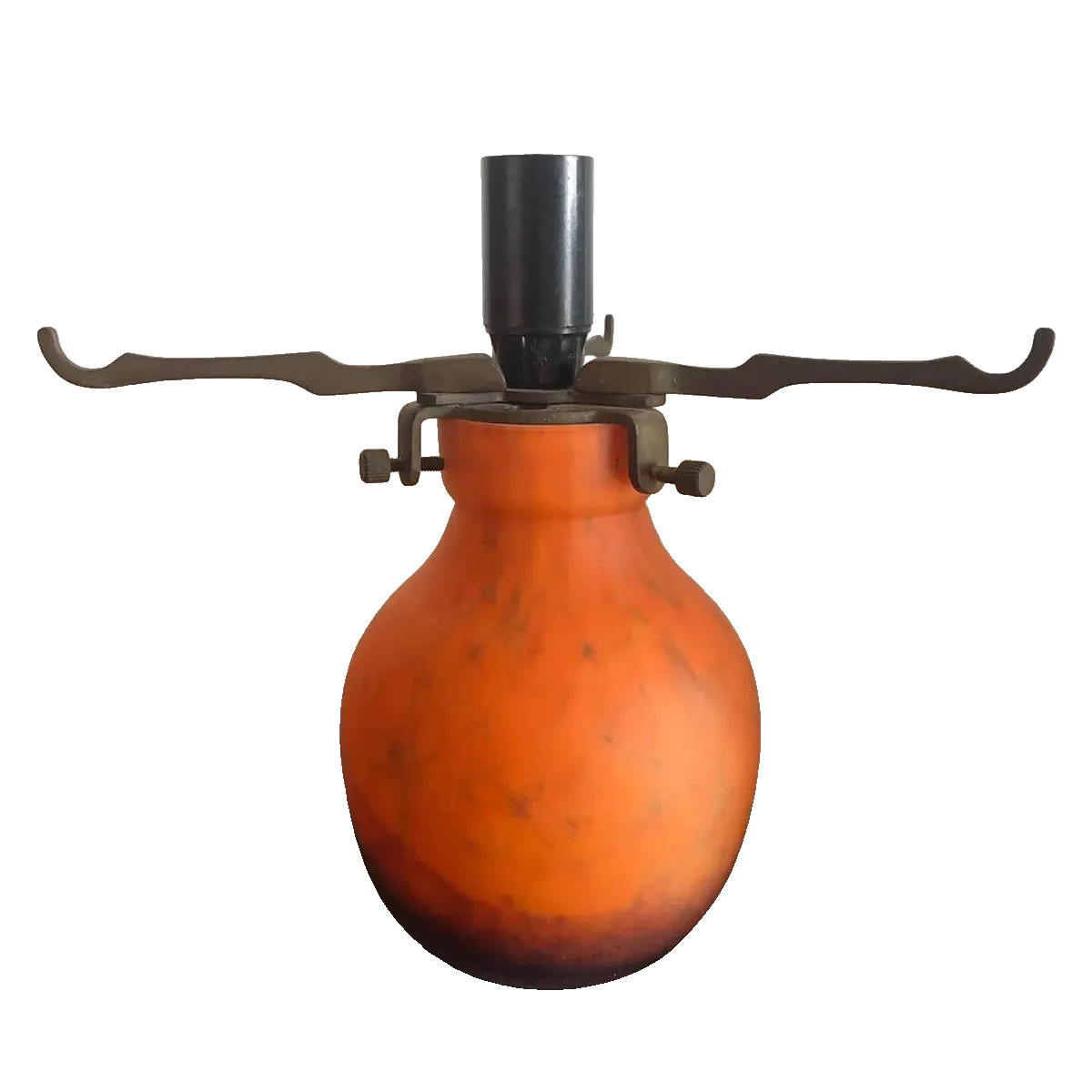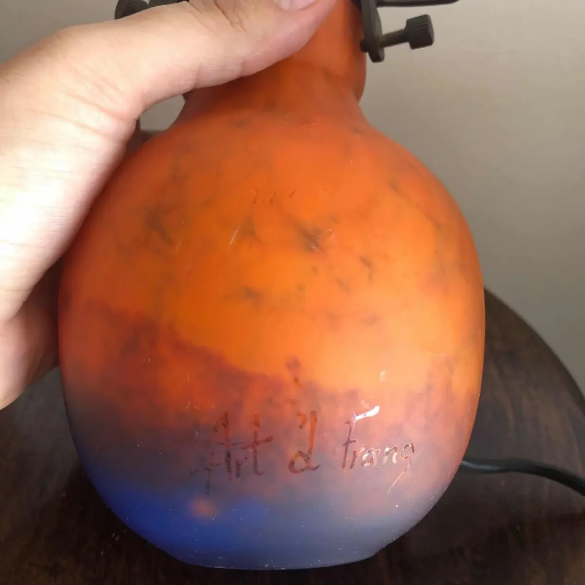 Antiga luminária Art Deco artística, ricamente moldado a mão em pâte de verre, assinado Art’d Frans. Década de 1950. Impecável.