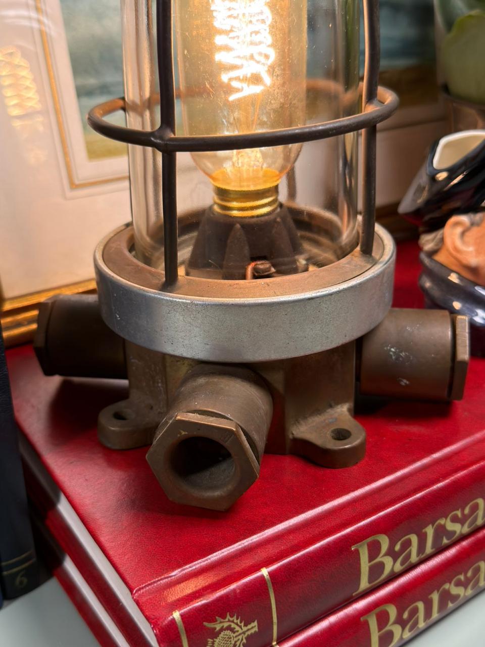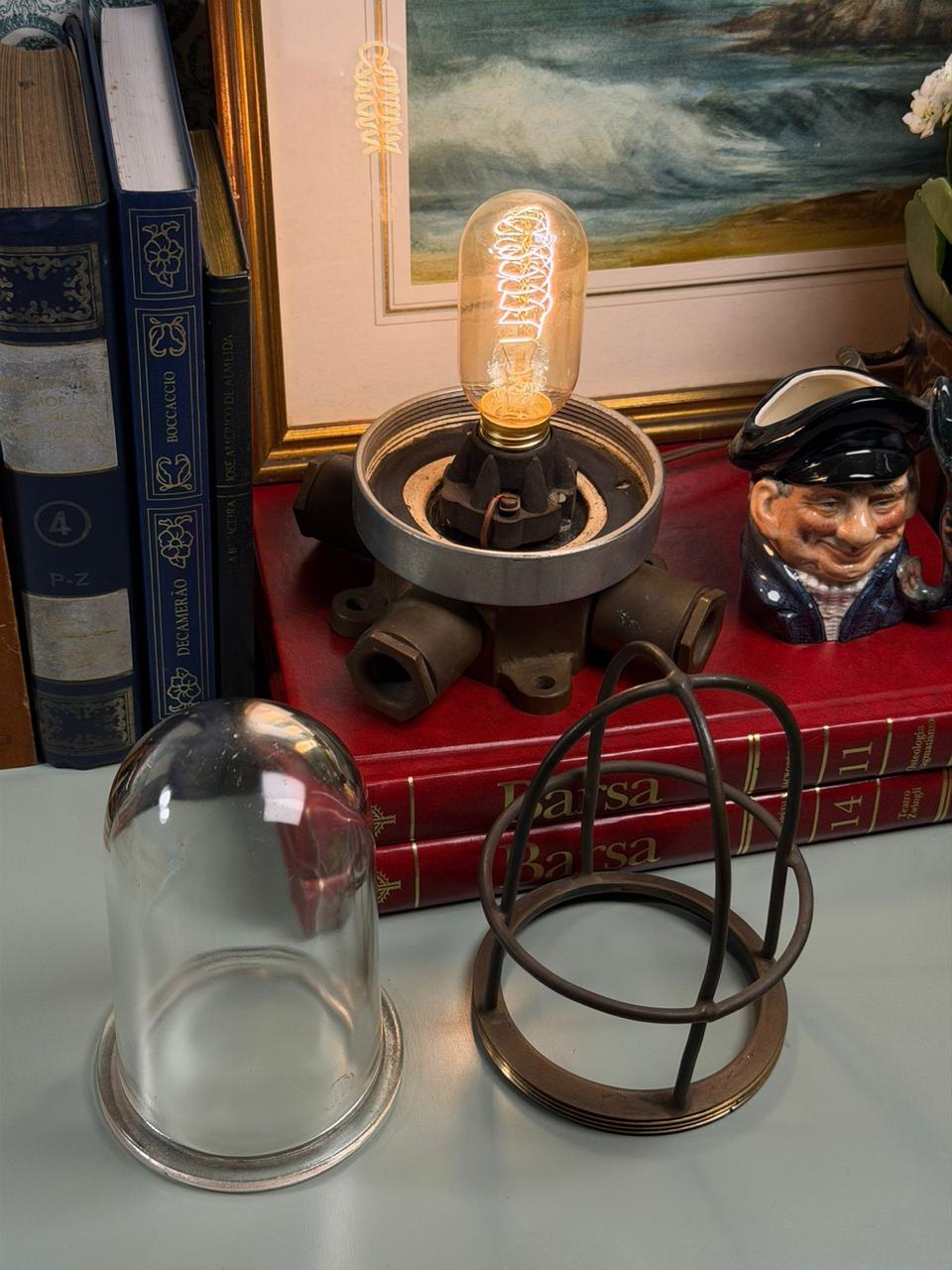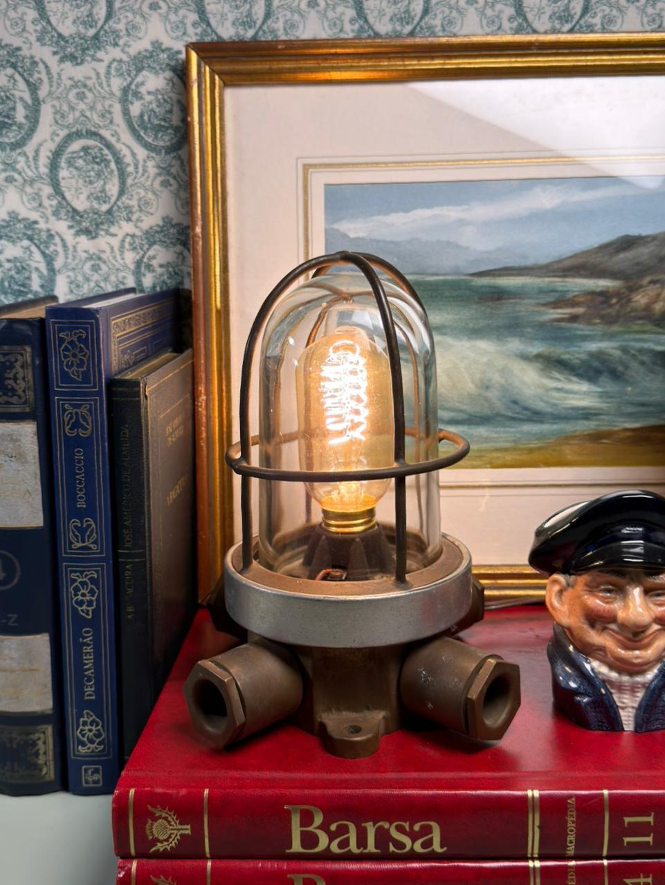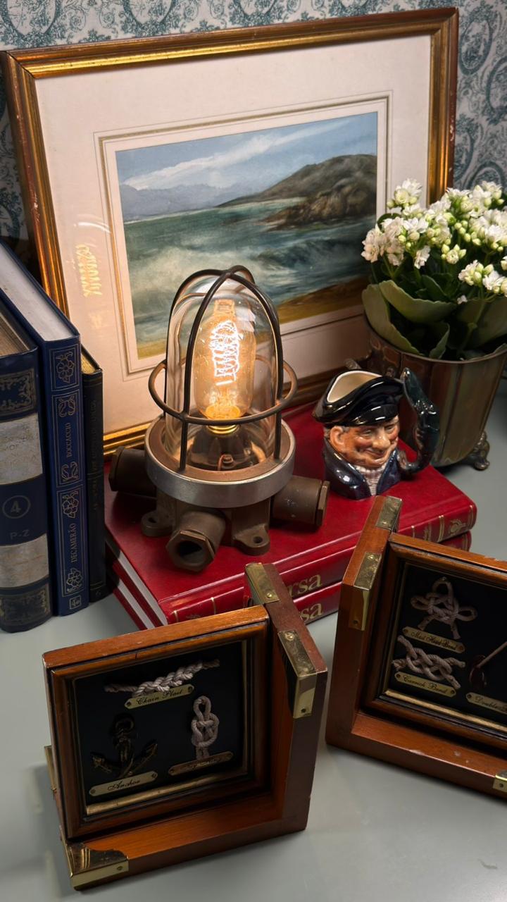 Além de seu valor material e histórico, é uma peça que funciona como ponto de destaque na decoração, especialmente em ambientes com madeira, livros, couro, objetos antigos e composições de inspiração industrial ou naval. A luz quente realça ainda mais sua atmosfera acolhedora e sua força estética.