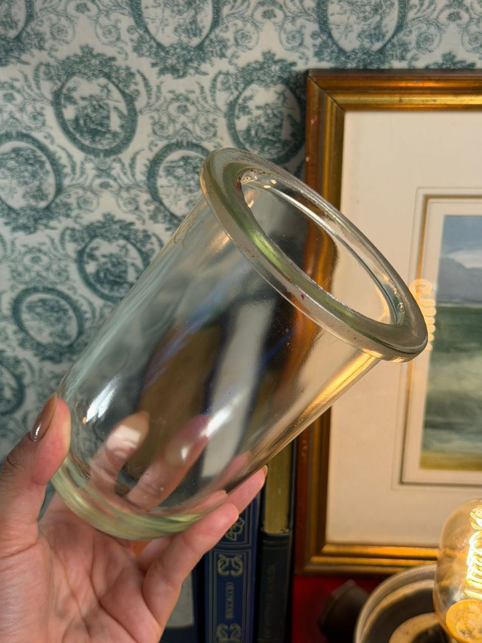 A peça preserva seus elementos originais principais, com corpo em bronze, grade e vidro compatíveis com sua proposta e época. Apresenta marcas do tempo e do uso, pátina natural, oxidações e desgastes superficiais coerentes com a idade, sem comprometer sua beleza, autenticidade e presença decorativa. Justamente essas marcas ajudam a contar sua trajetória e reforçam o caráter original da peça.