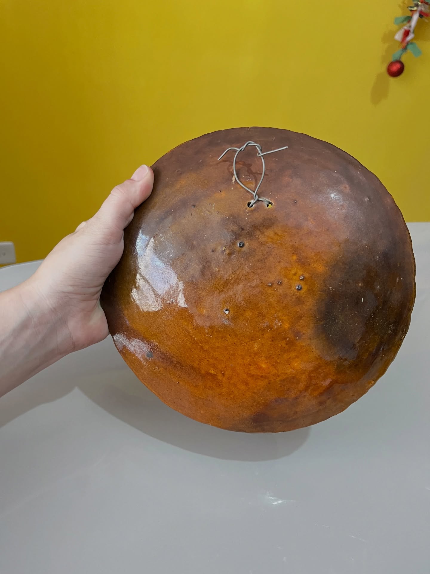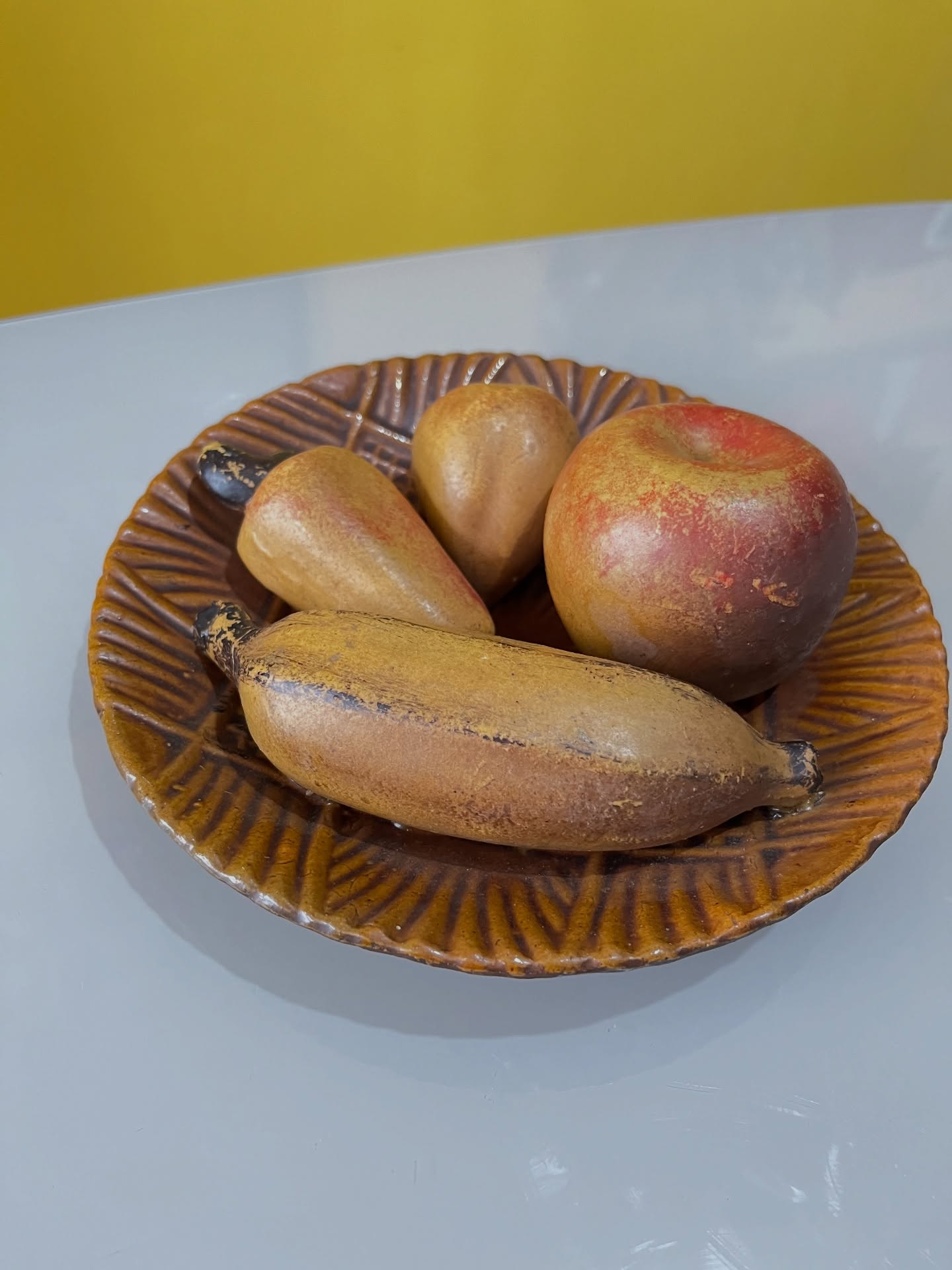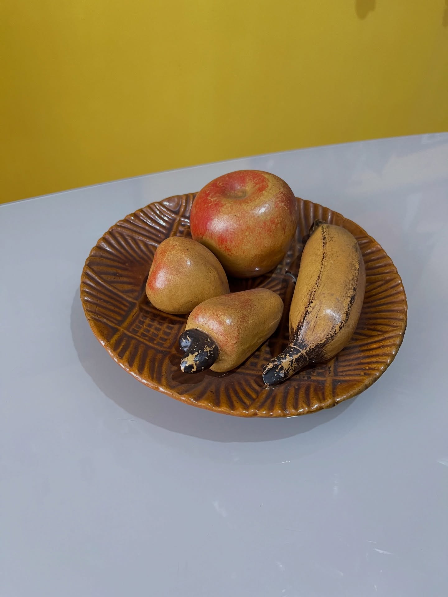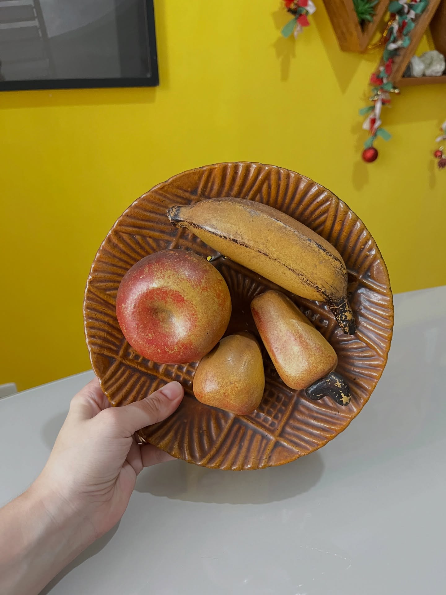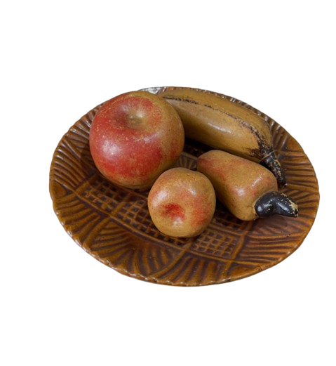 Fruteira em cerâmica com frutinhas. Para pendurar! Marcas do tempo e uso como um lascado na banana (em uso não dá pra ver) e um restauro na banana.