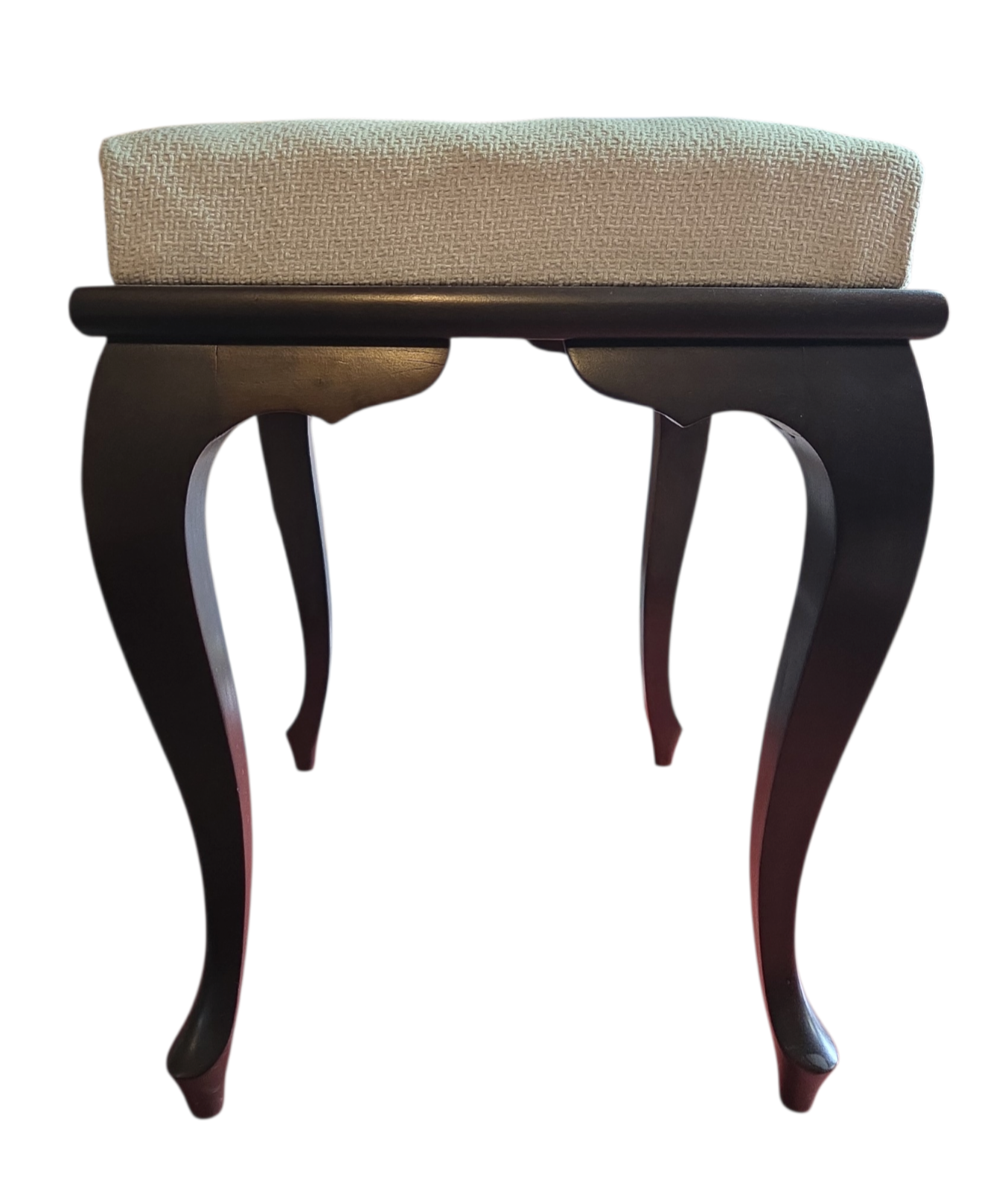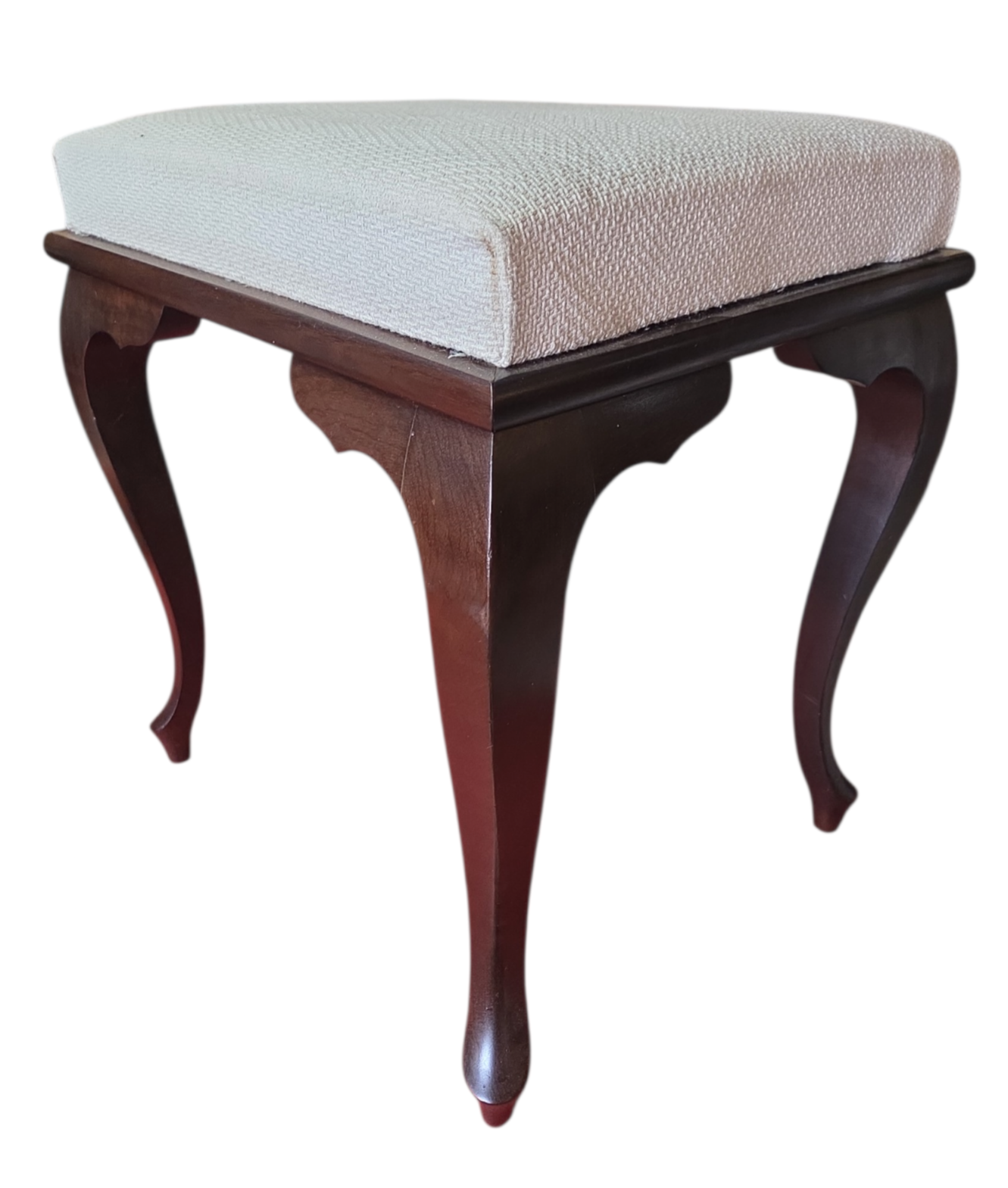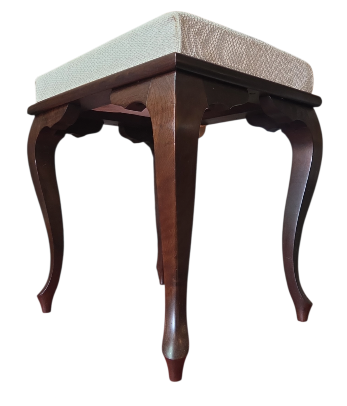 Enriqueça seu ambiente com a elegância atemporal desta banqueta estilo Chippendale. Executada em imbuia maciça, madeira nobre conhecida por sua durabilidade e veios únicos, a peça apresenta as icônicas pernas curvas (cabriolet) com entalhes discretos e refinados.