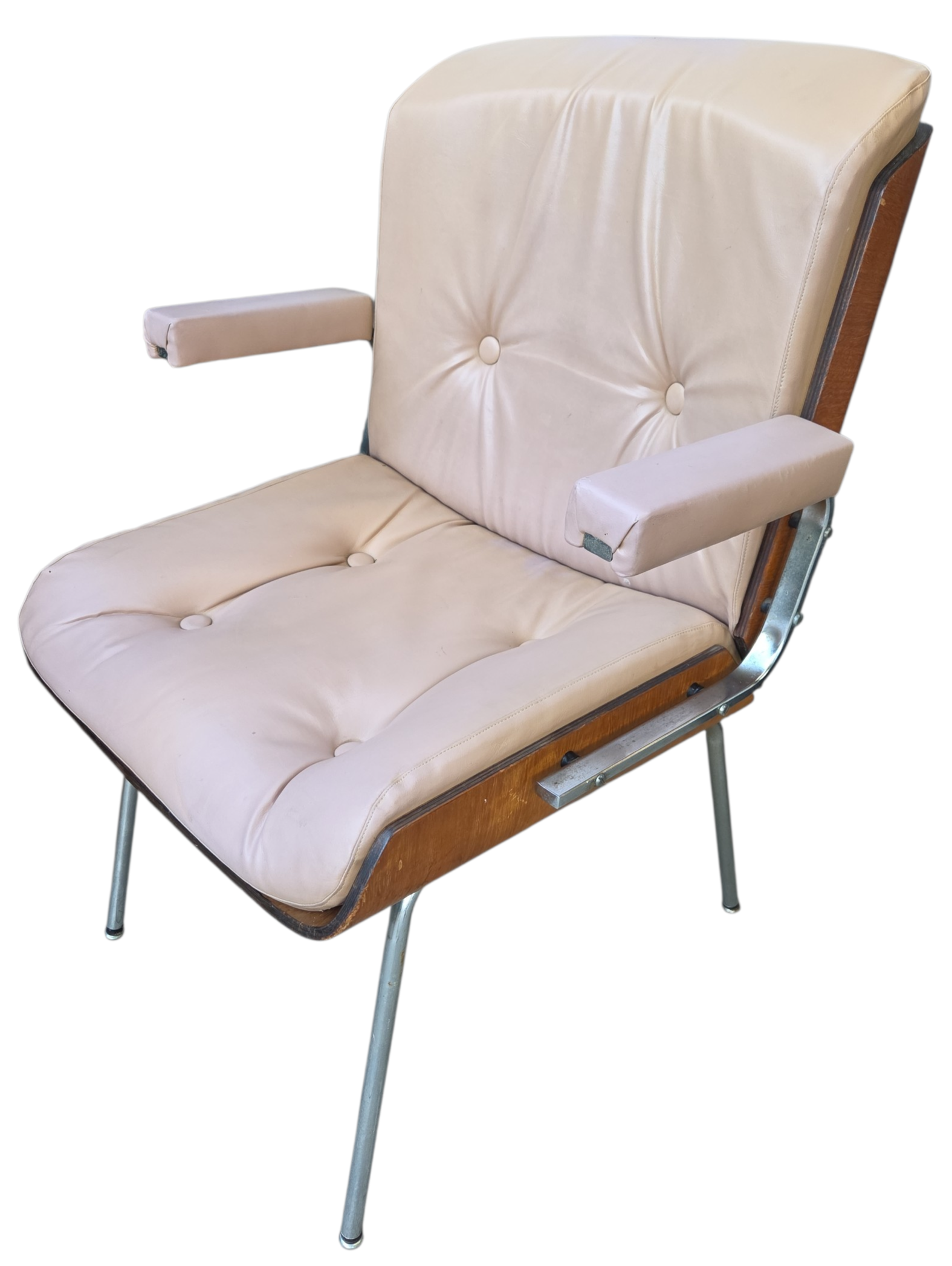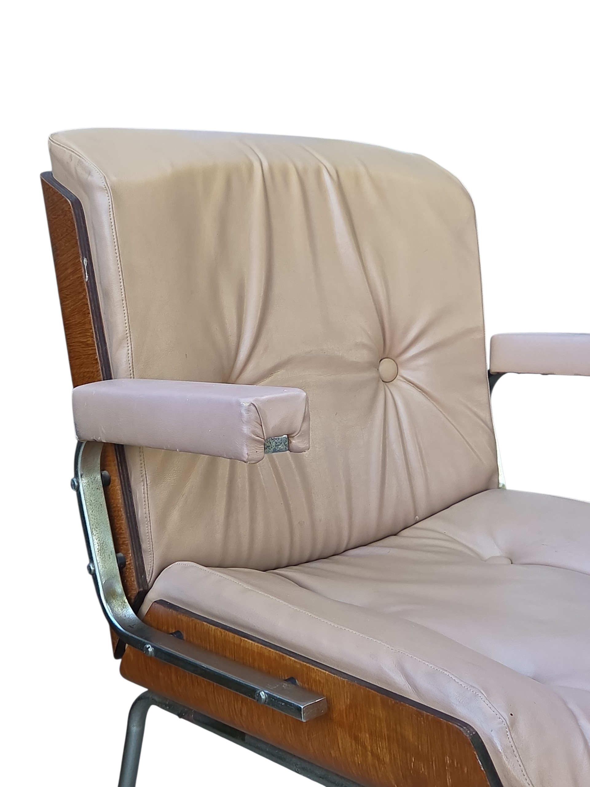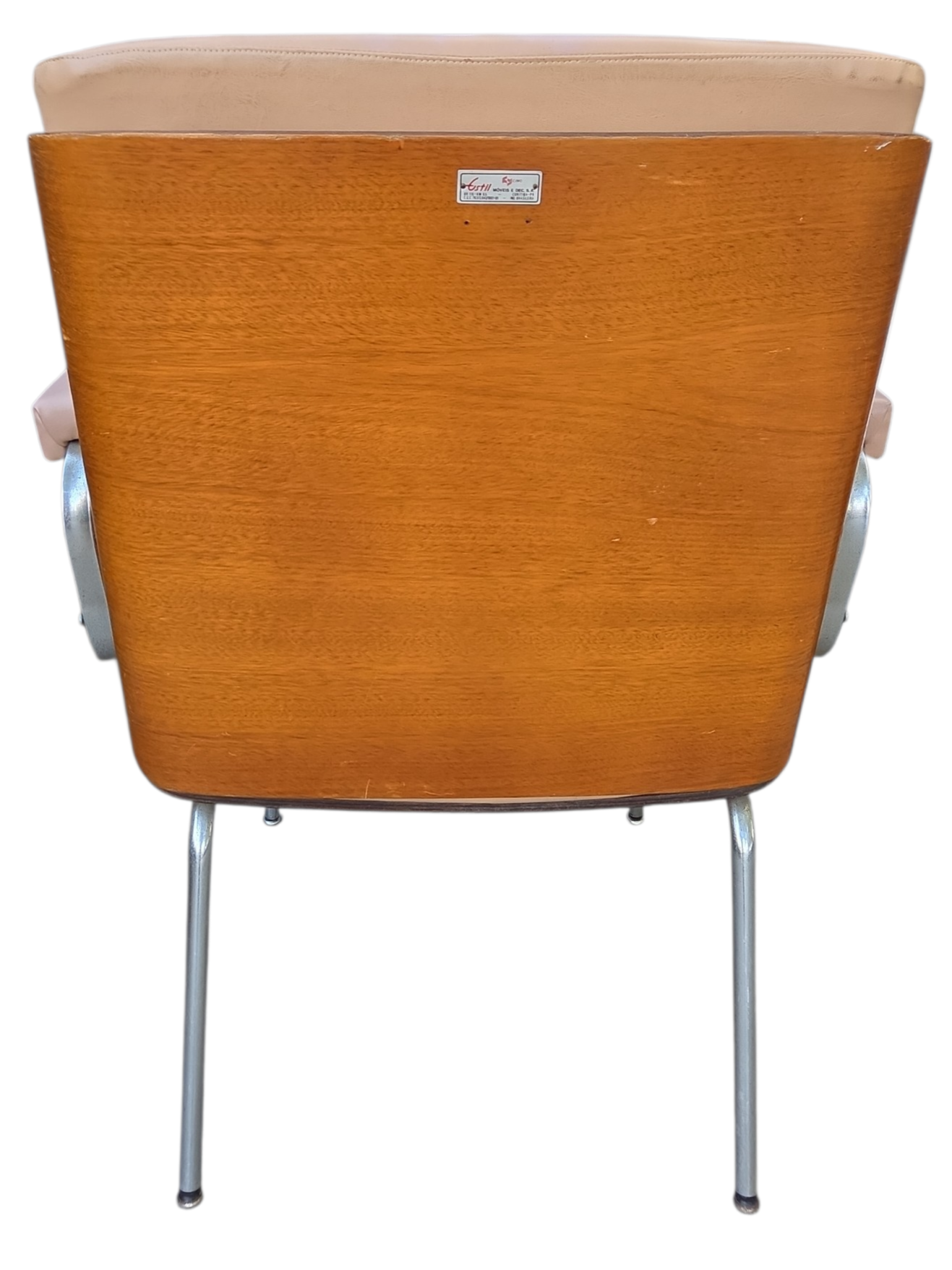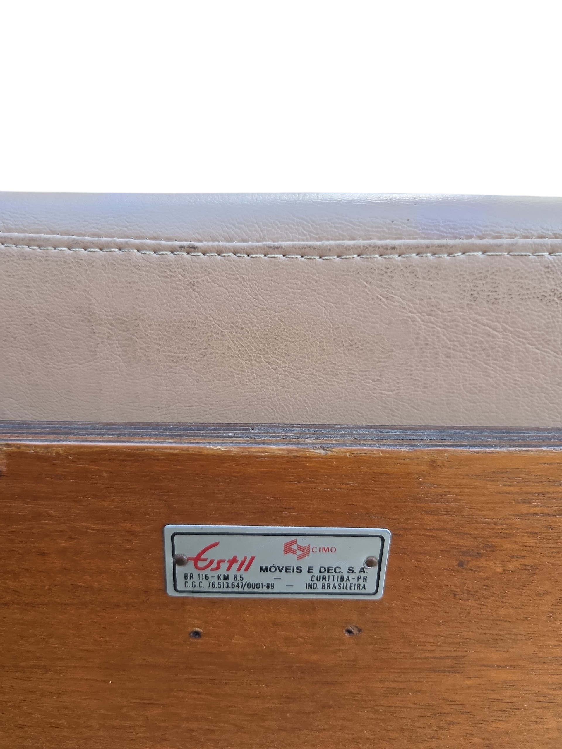 Rara cadeira de escritório fabricada pela Móveis Cimo (Curitiba-PR), o maior nome da história do mobiliário industrial brasileiro. Este modelo faz parte da Linha Estil, caracterizada pelo design funcional e uso de materiais nobres para a época.