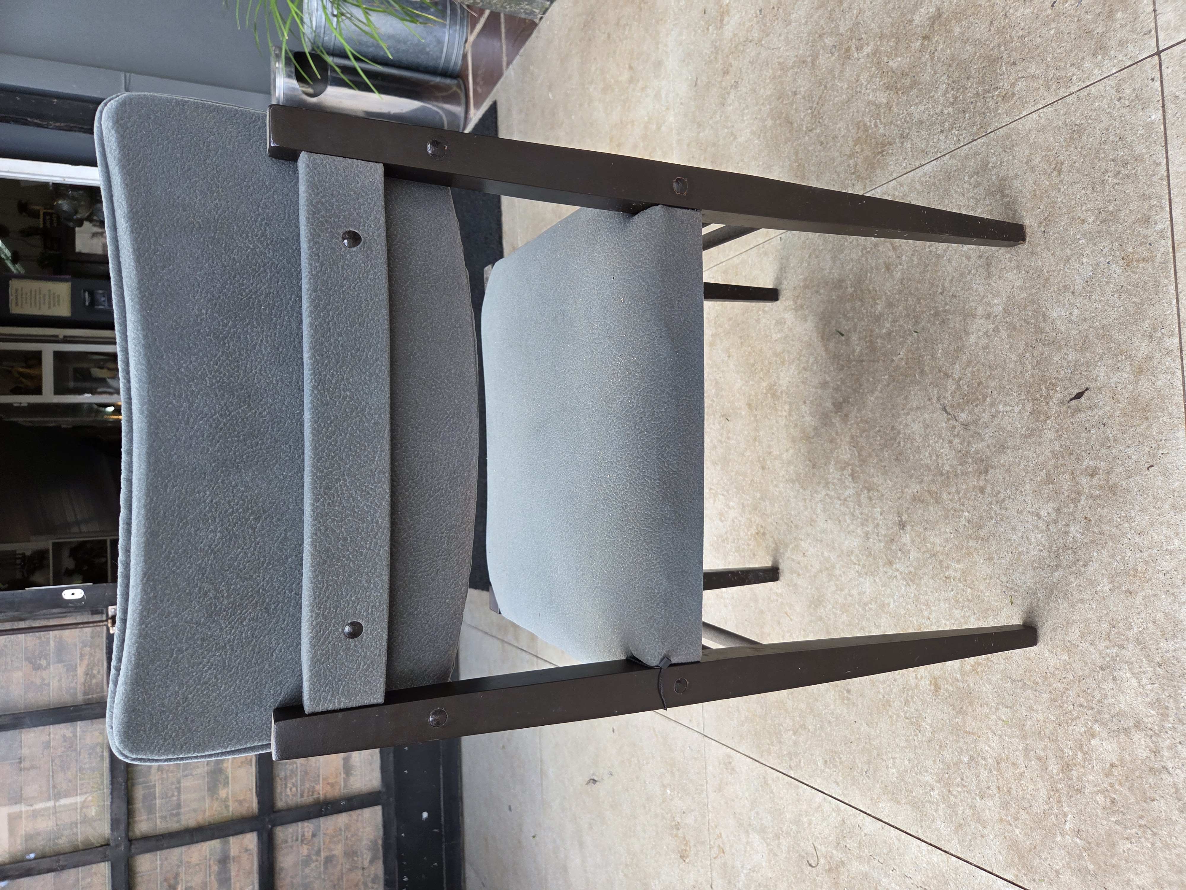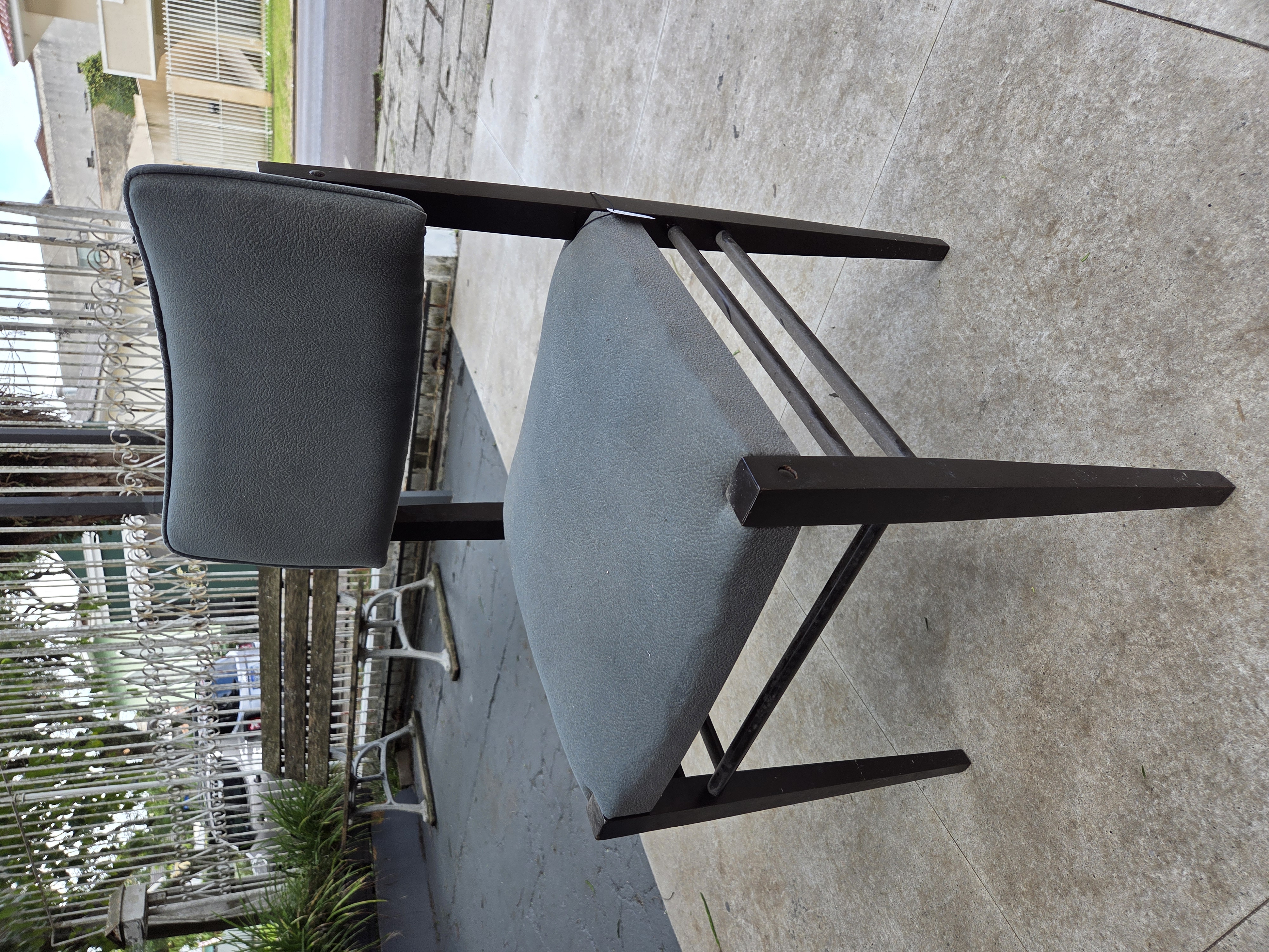 Cadeiras com estrutura em madeira maciça, de linhas retas e design modernista. Possui assento e encosto estofados, oferecendo conforto e firmeza no uso diário. O acabamento escuro da madeira contrasta elegantemente com o tecido em tom cinza, tornando a peça versátil para salas de jantar, escritórios, recepções ou ambientes comerciais. Estrutura resistente, visual sóbrio e funcionalidade garantida.
