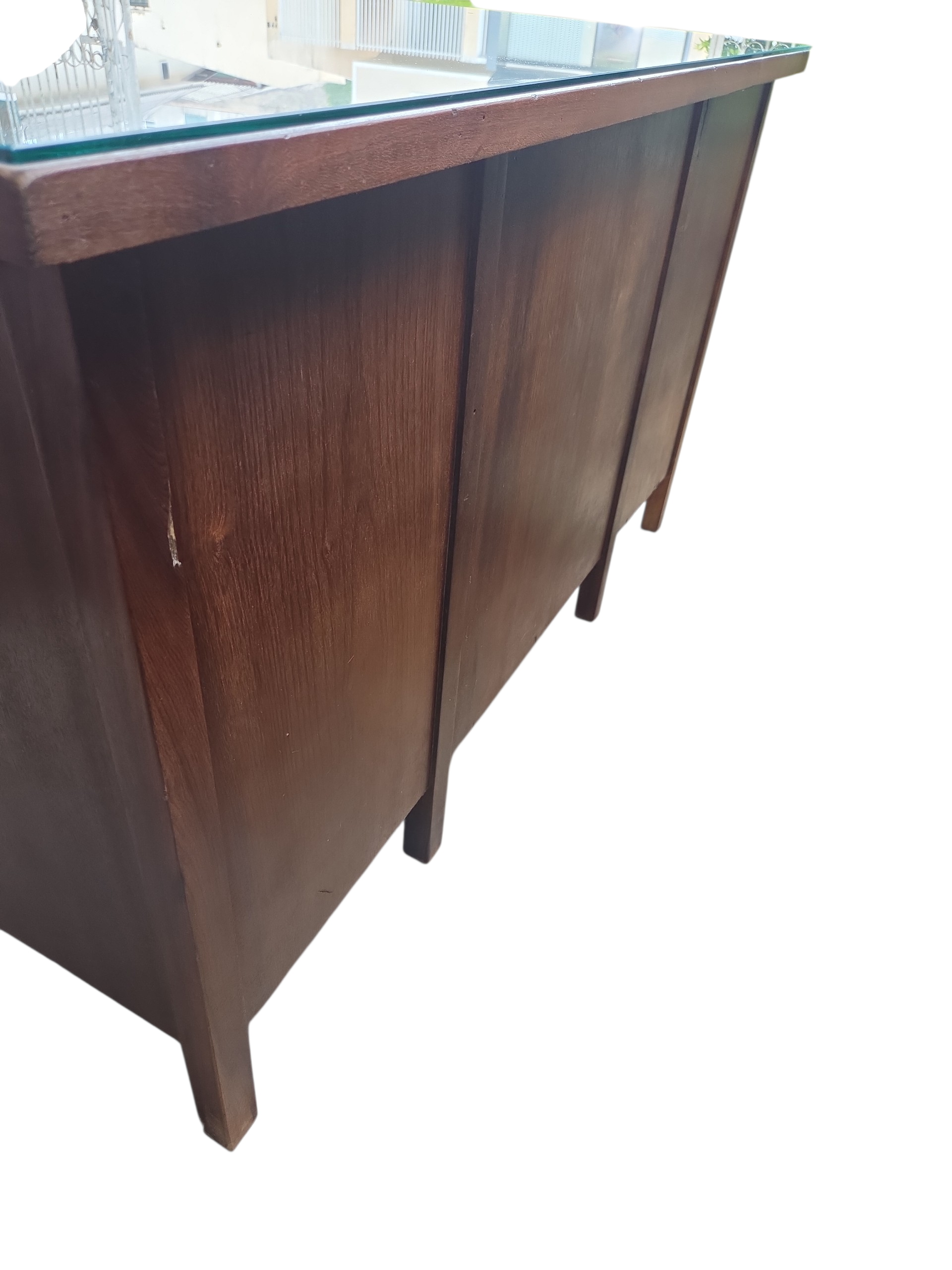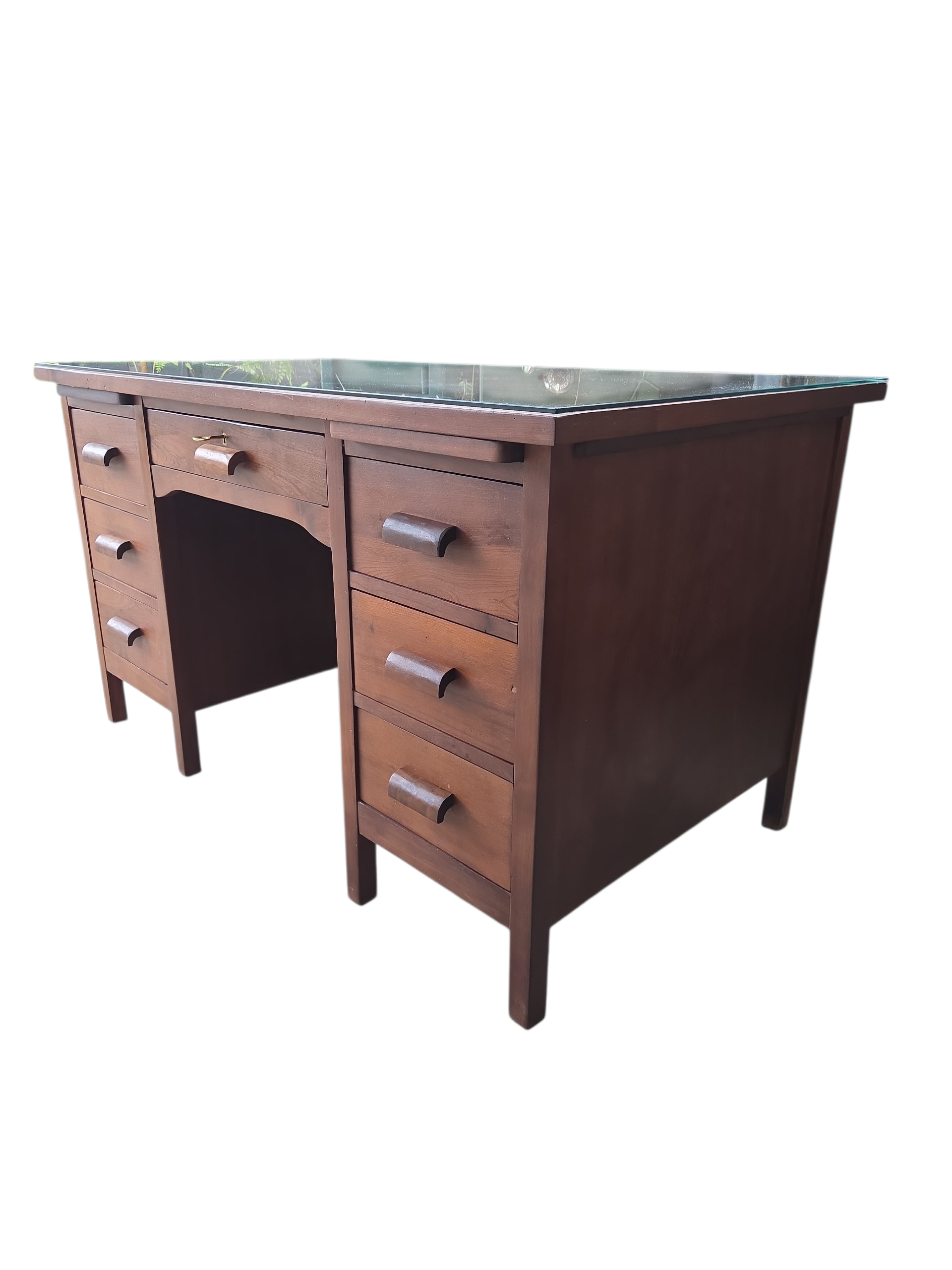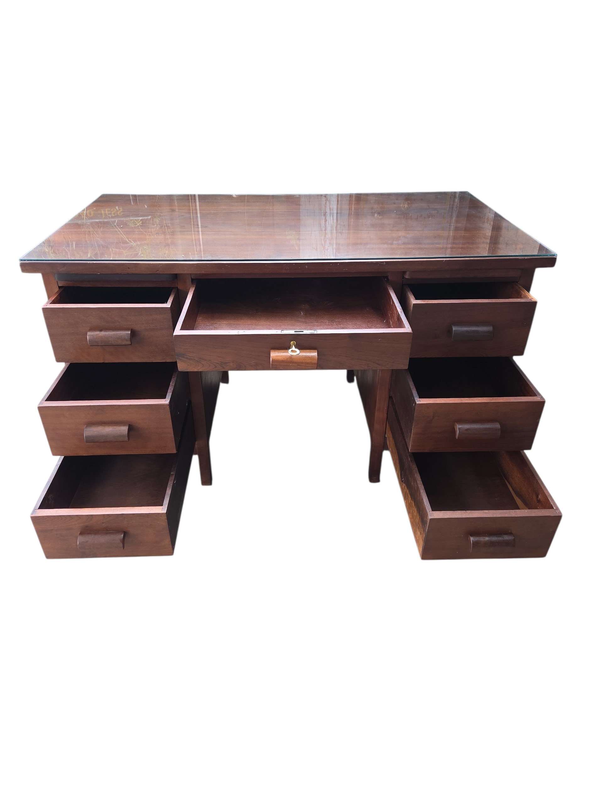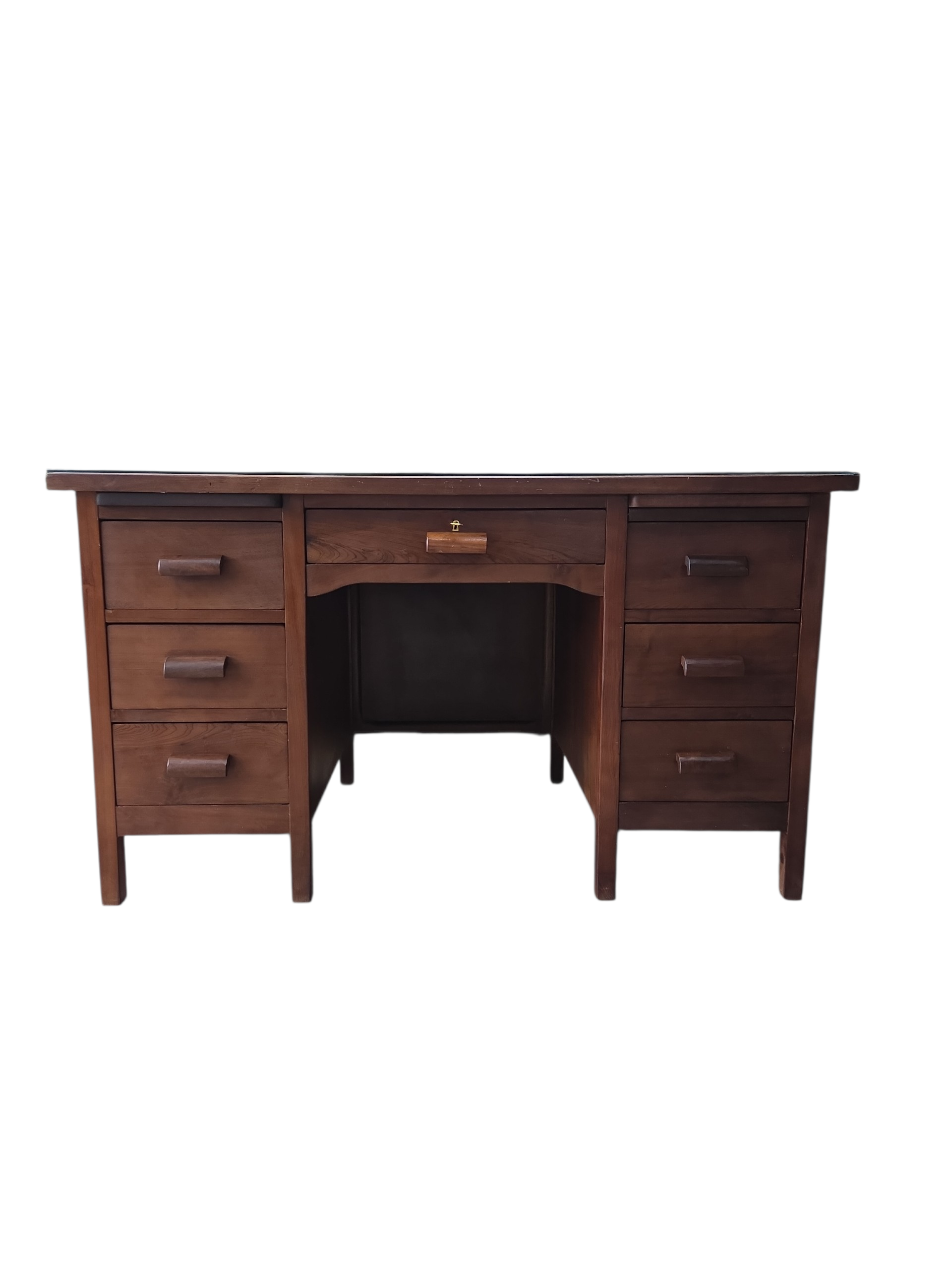 Uma oportunidade única para adquirir uma peça de história do mobiliário brasileiro. Esta escrivaninha, fabricada pela renomada Móveis Ronconi, é inteiramente executada em Imbuia, madeira nobre conhecida por seus veios escuros dramáticos e durabilidade secular.