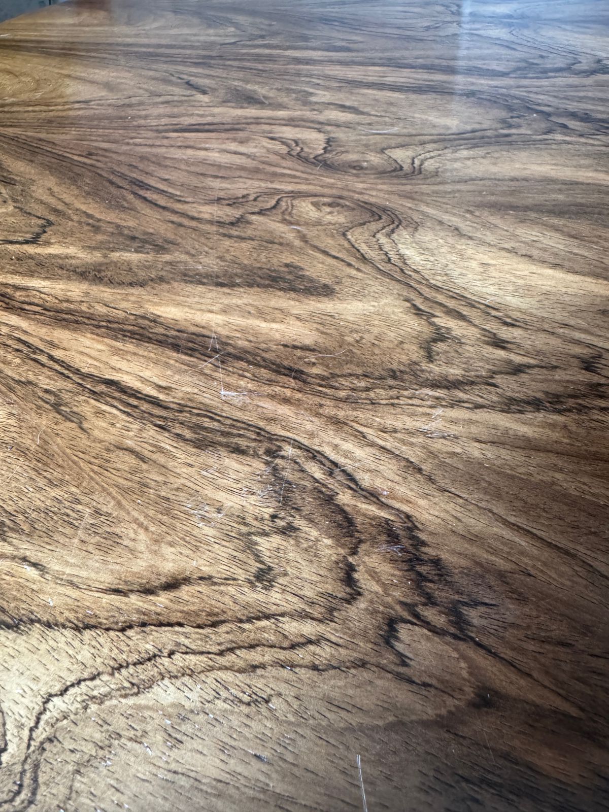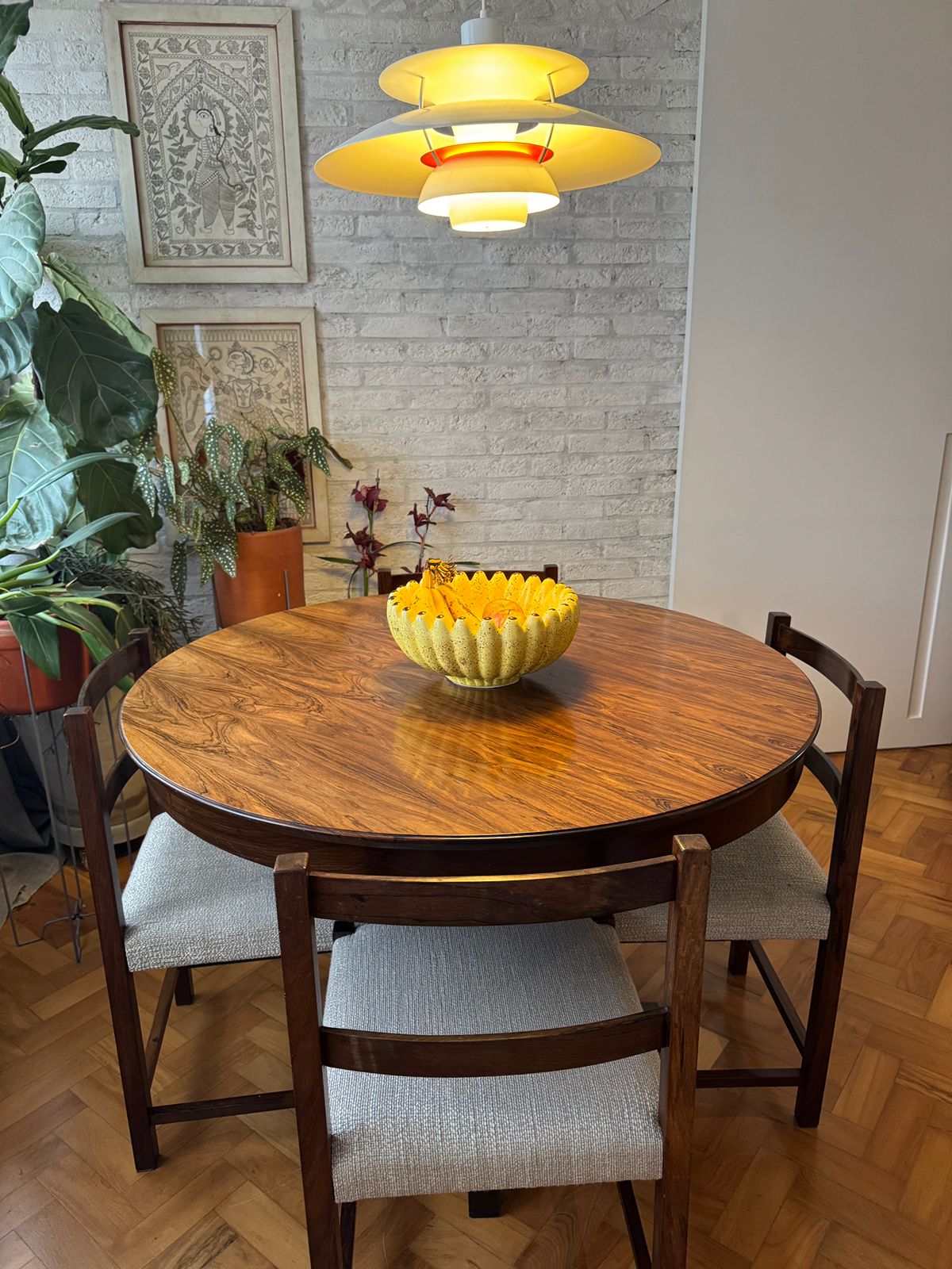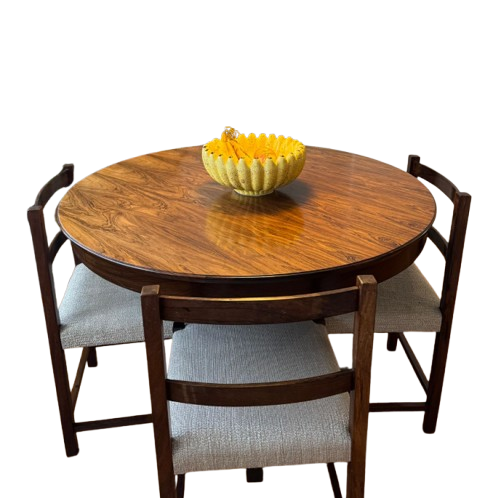 Linda mesa com pés em jacarandá e tampo com lâmina de jacarandá (restaurada em 2022).