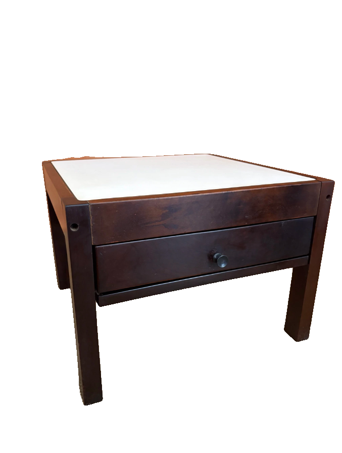 O tampo traz pequenas manchinhas do tempo, que não comprometem o uso e ajudam a contar a história da peça.
