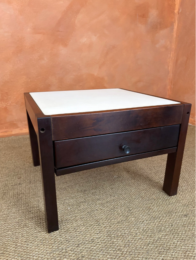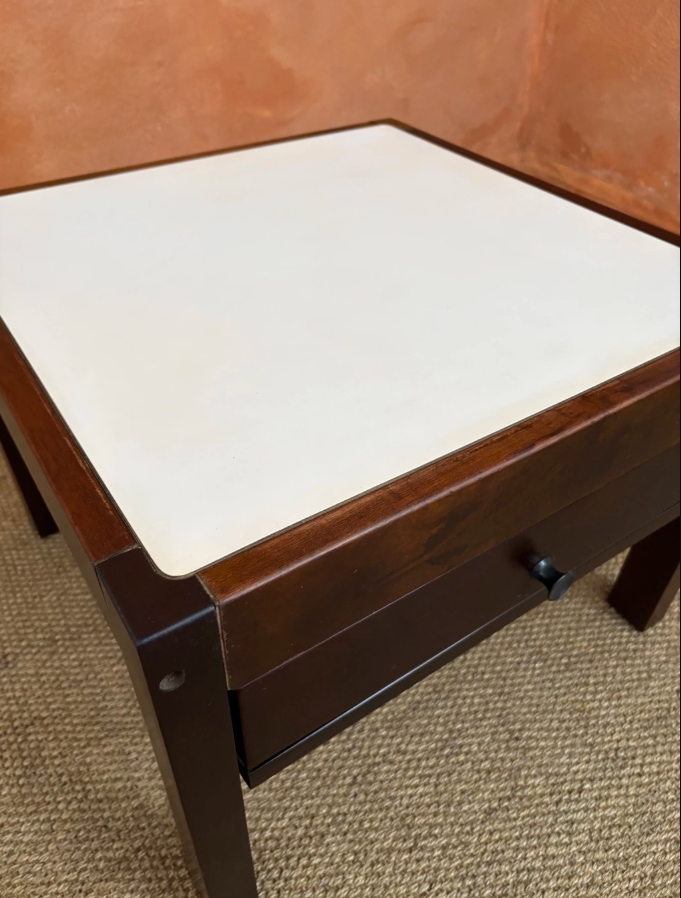 De linhas simples e desenho limpo, essa mesa quadrada combina estrutura em madeira maciça com tampo em fórmica branca, criando um contraste bonito entre o calor da madeira e a leveza da fórmica.