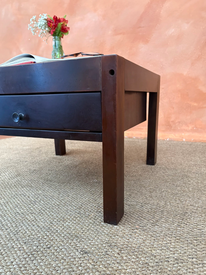O formato quadrado é amplo, e permite que ela seja usada tanto como mesa de centro quanto mesa lateral, perfeita para quem gosta de móveis versáteis e com presença.