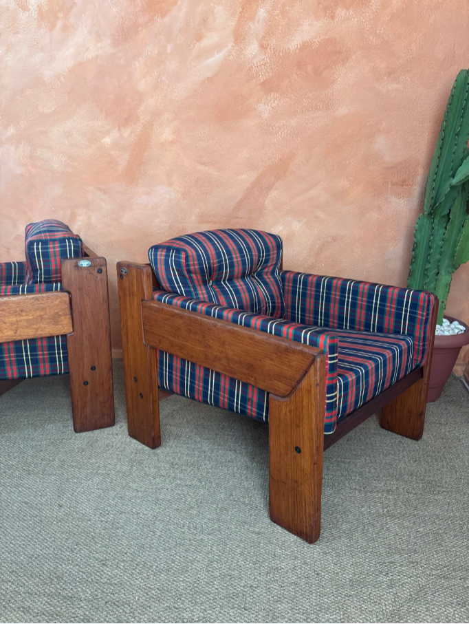 Produzidas pela Mobilinea nos anos 70, essas peças trazem a força da madeira maciça de freijó, com marcas do tempo e de restauro que contam sua trajetória sem tirar nada da beleza — pelo contrário, só acrescentam charme e autenticidade.