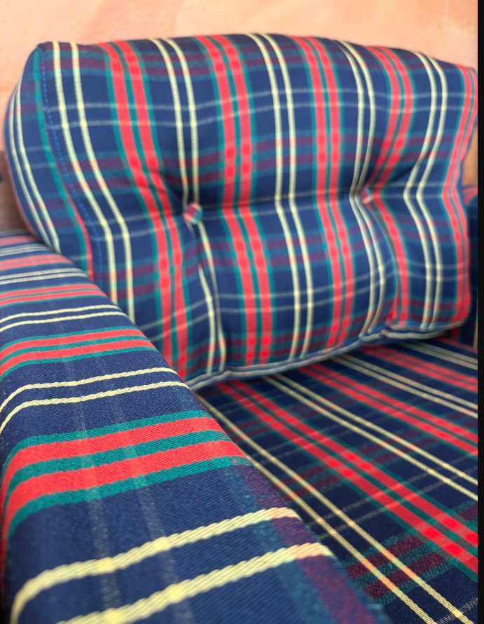 Os estofados foram totalmente renovados, agora em um jacquard fio tinto listrado, que combina com perfeição o conforto do assento generoso e o estilo marcante do design original.