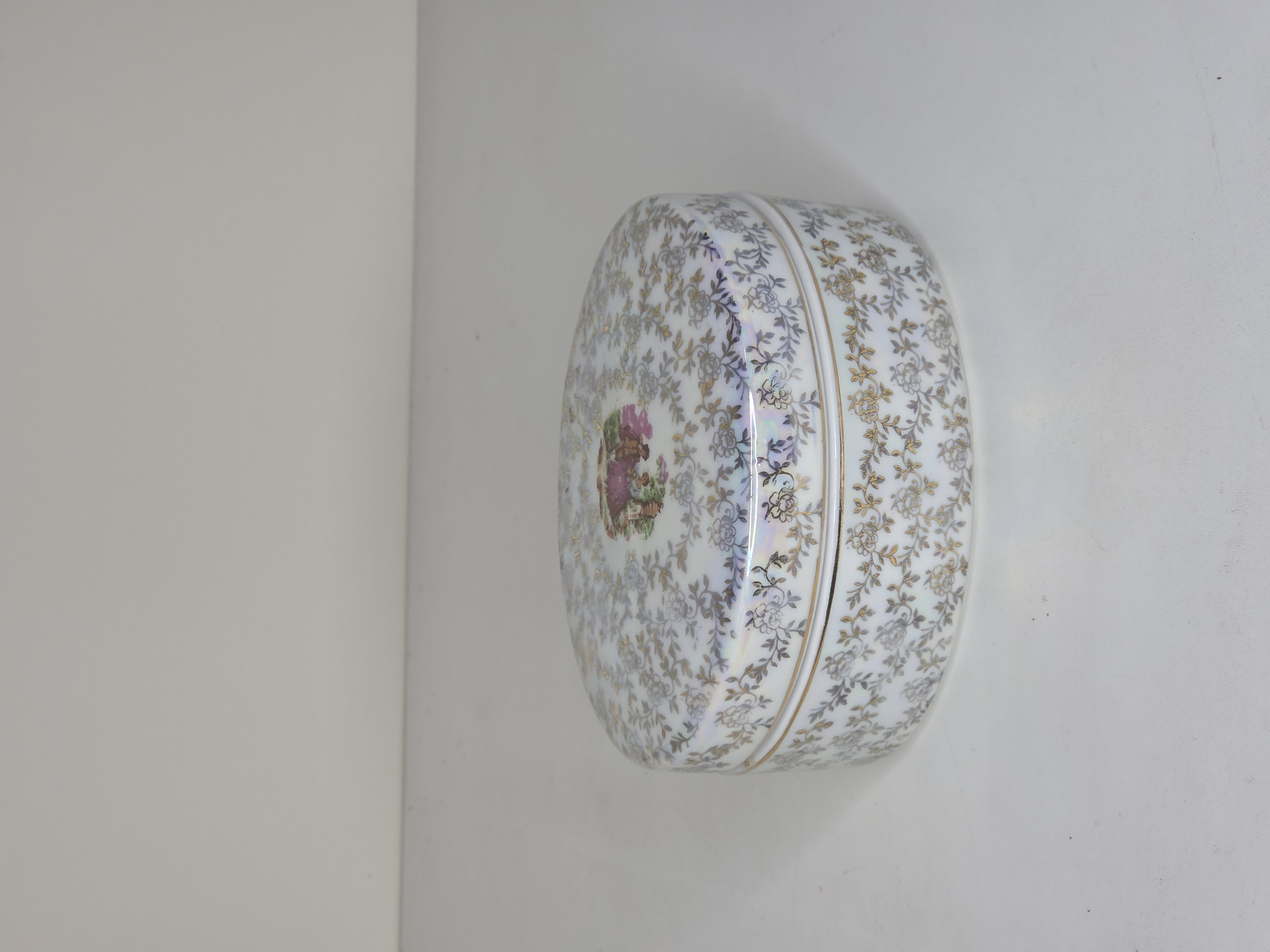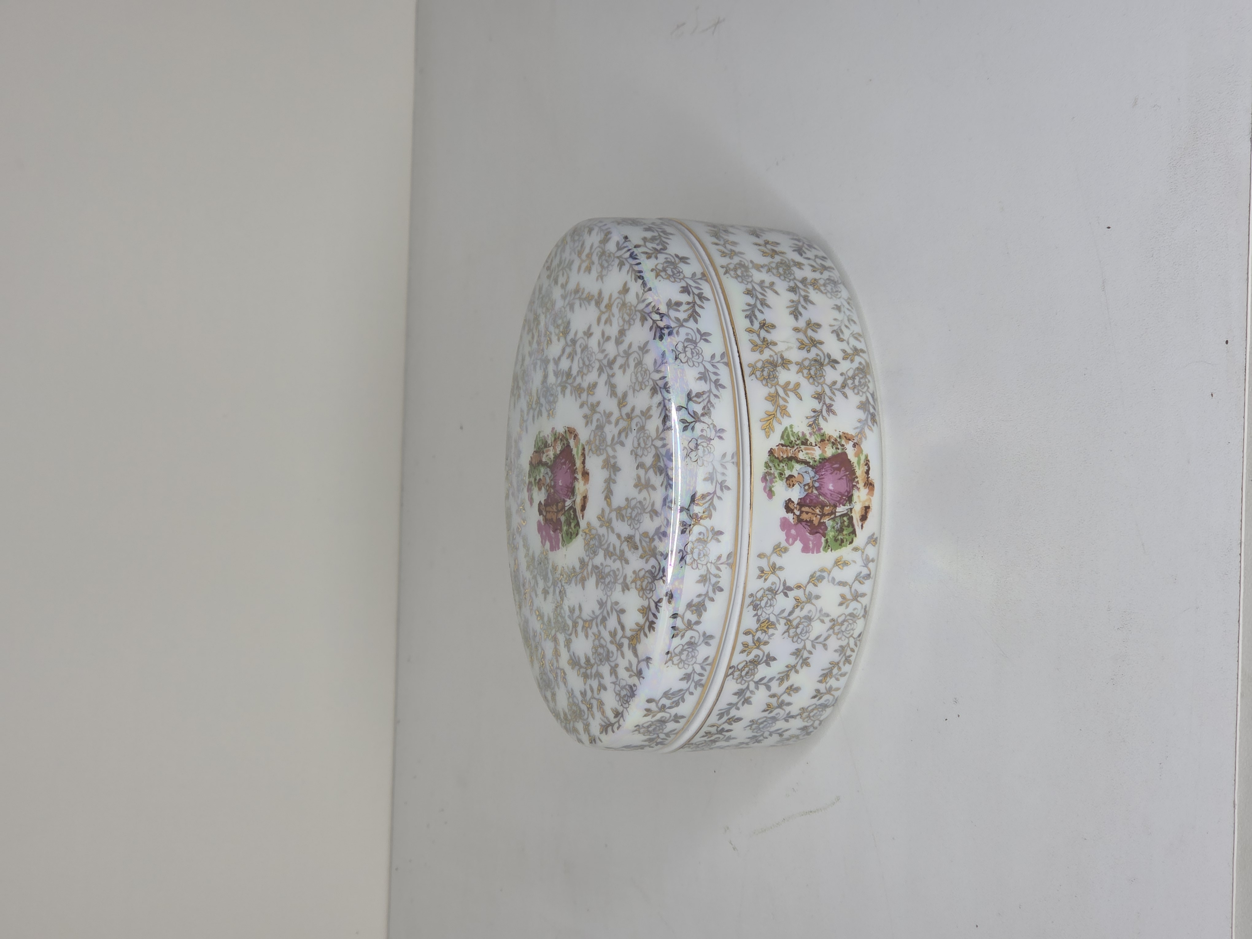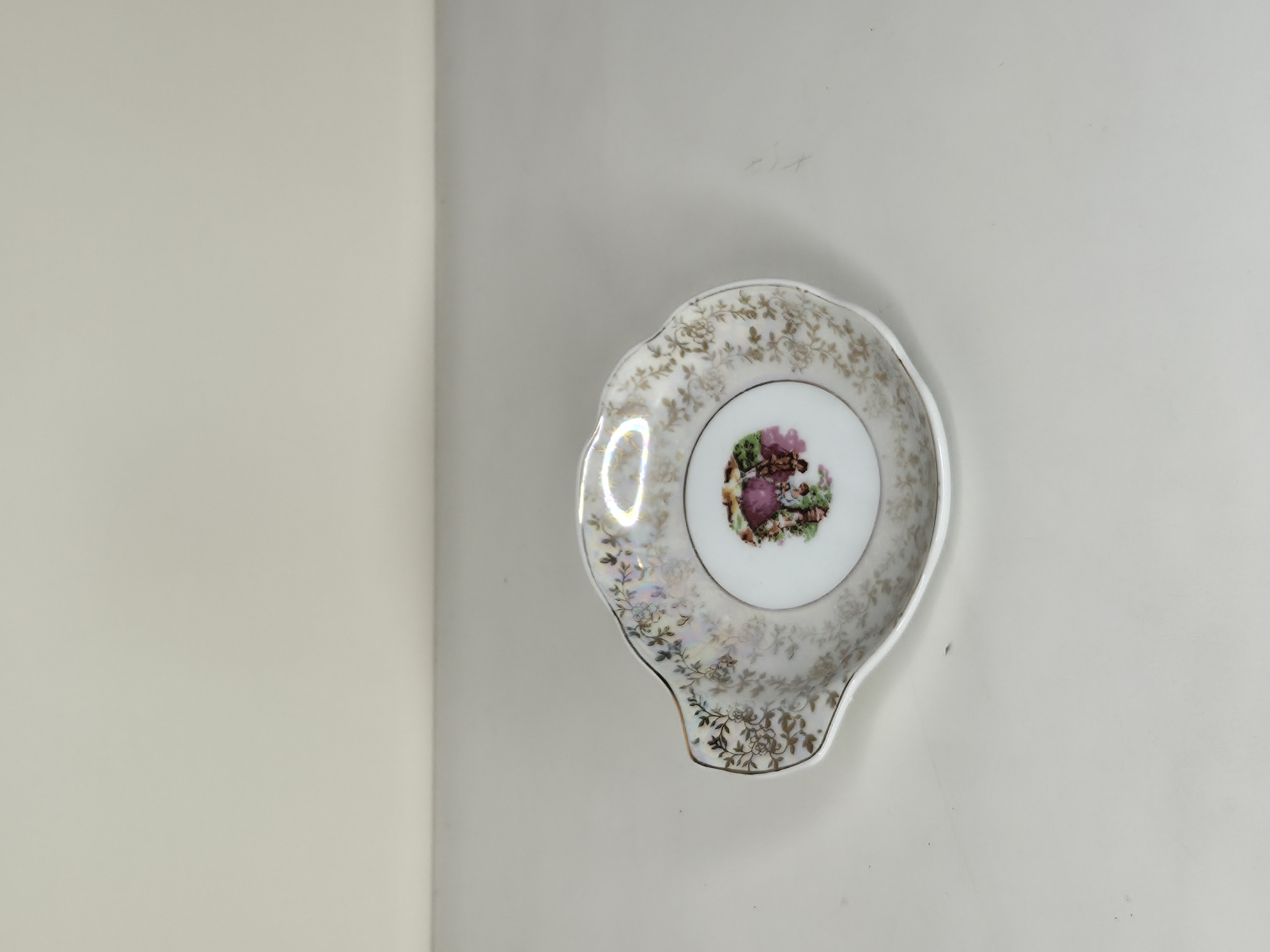 Adicione um toque de nobreza ao seu lavabo com este requintado kit em porcelana esmaltada. Decorado com delicadas cenas galantes que evocam o romantismo, cada peça apresenta um acabamento vitrificado impecável e detalhes minuciosos. Uma verdadeira joia funcional que transforma o ambiente em um espaço de pura elegância clássica.