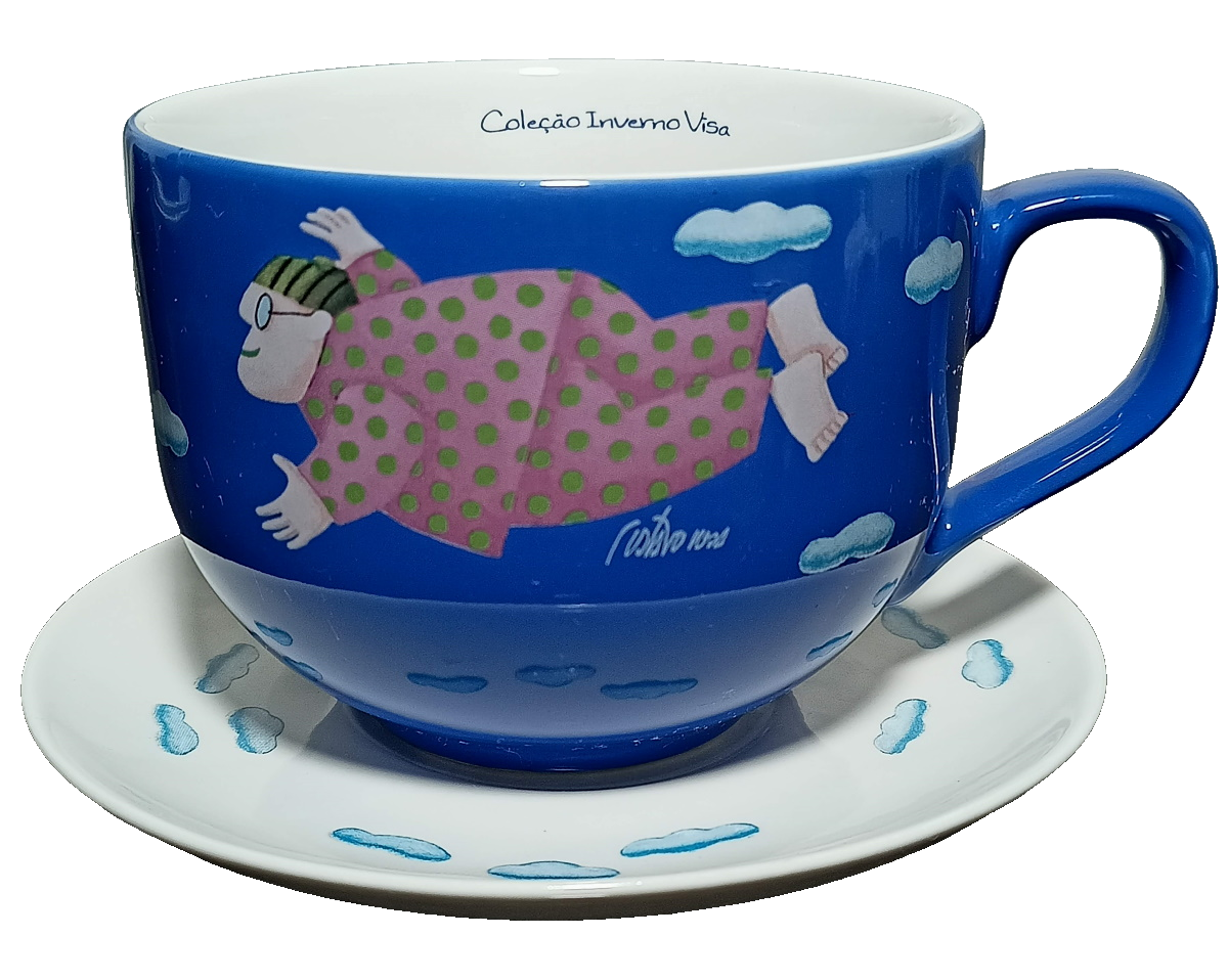 GUSTAVO ROSA, Sonhador, Coleção Inverno Visa, Xícara e pires de porcelana, xícara com 10cm de diâmetro e 8cm de altura, pires com 15 cm de diâmetro