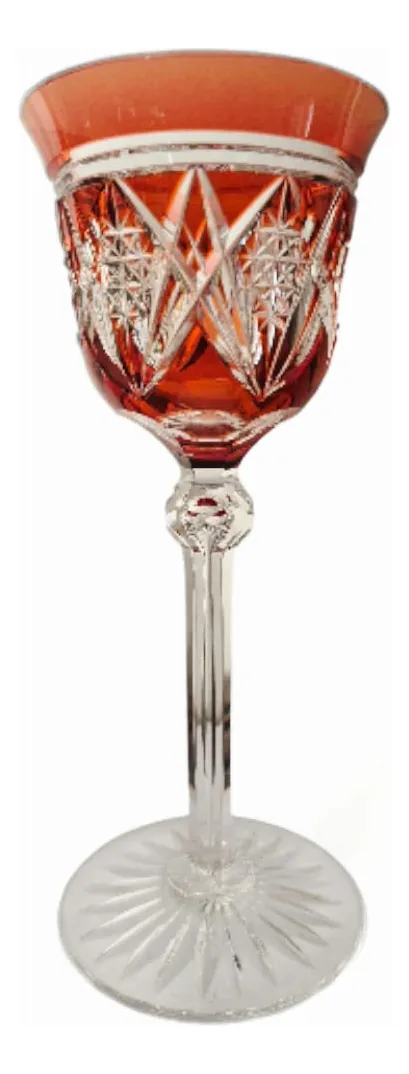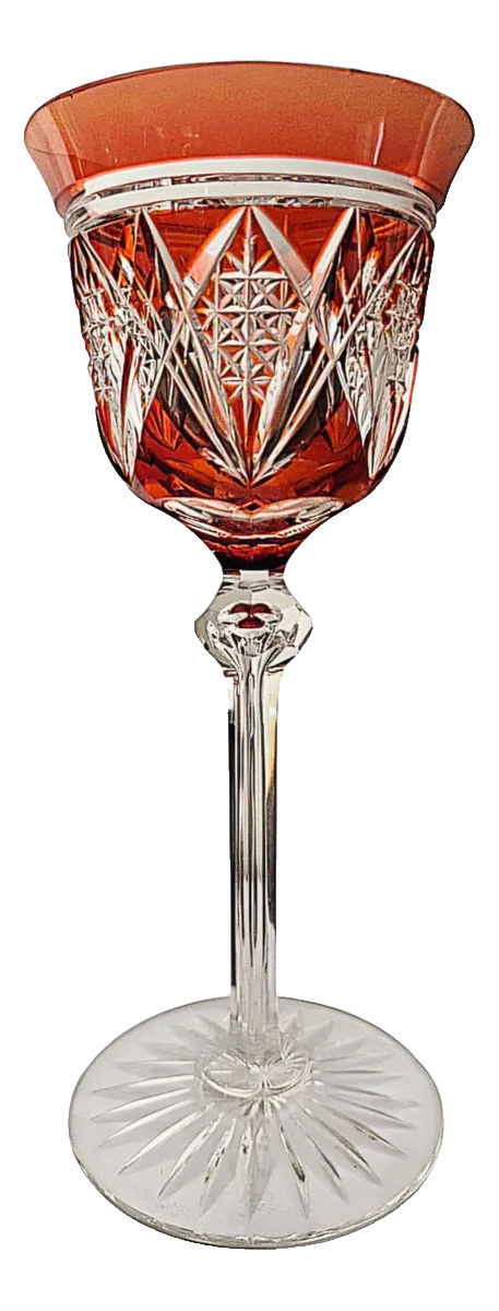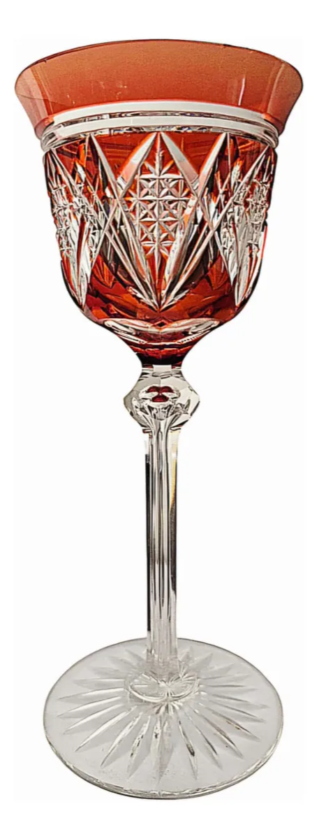 Taça de Vinho Cristal Overlay Lapidado - Estilo Val Saint Lambert - Vermelho Cereja 19cm