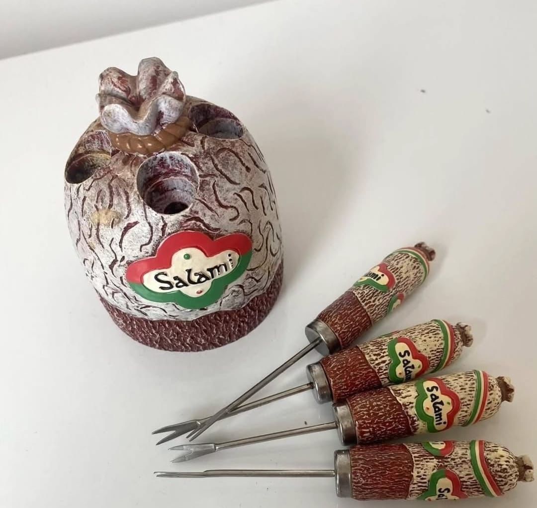 Conjunto de garfinhos para petiscos, com suporte