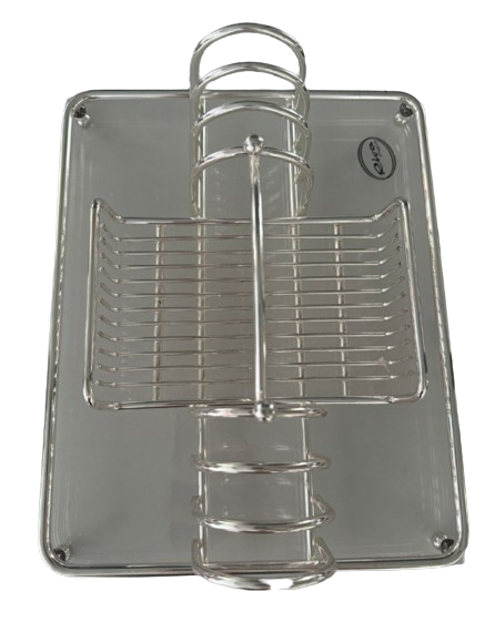 Estrutura central para acomodar talheres e base espelhada que valoriza a mesa posta.