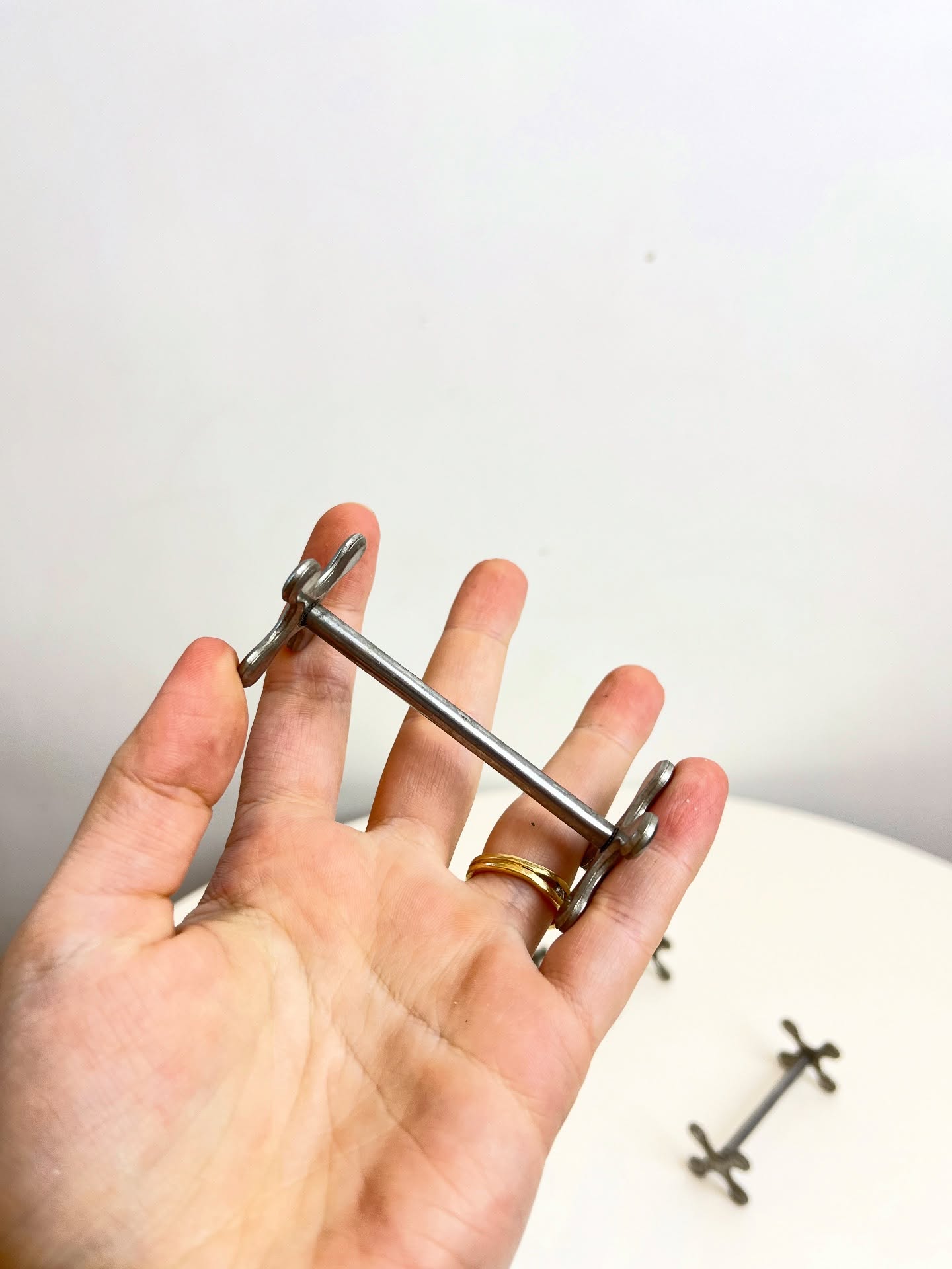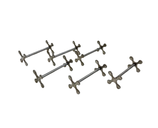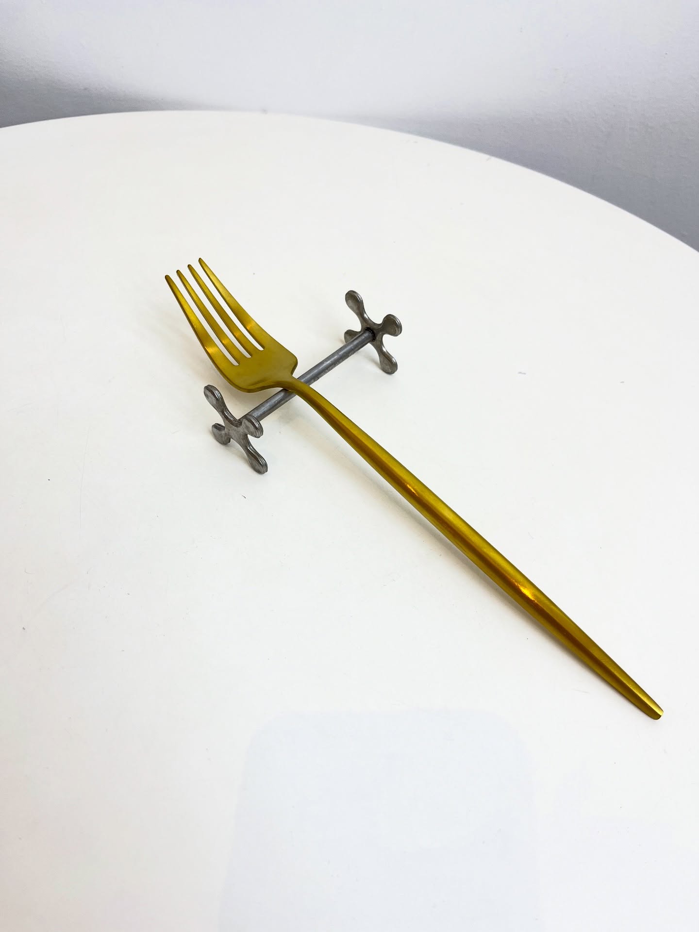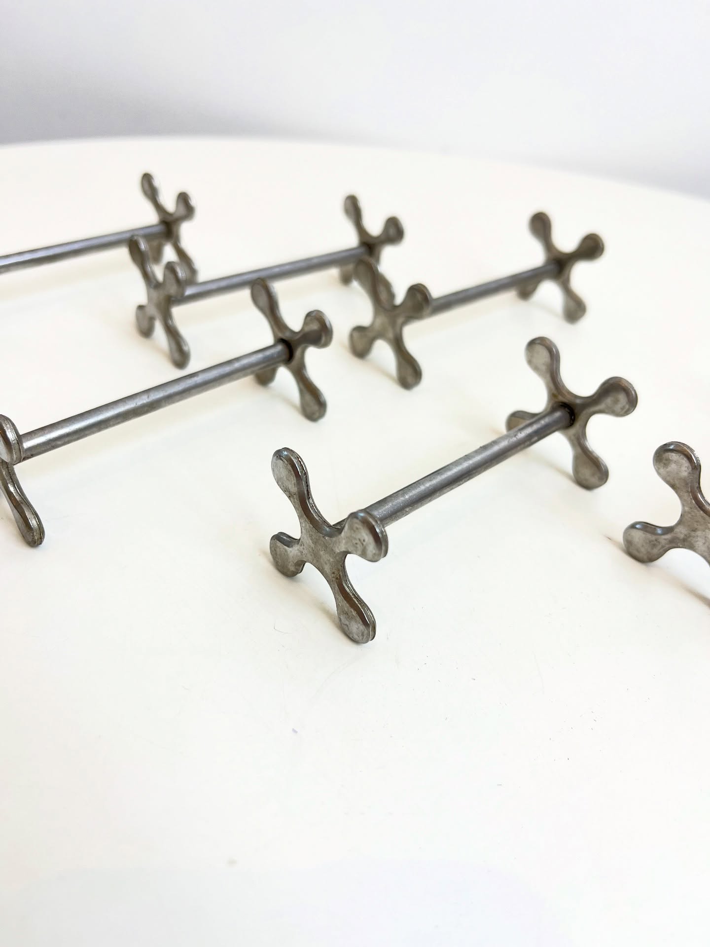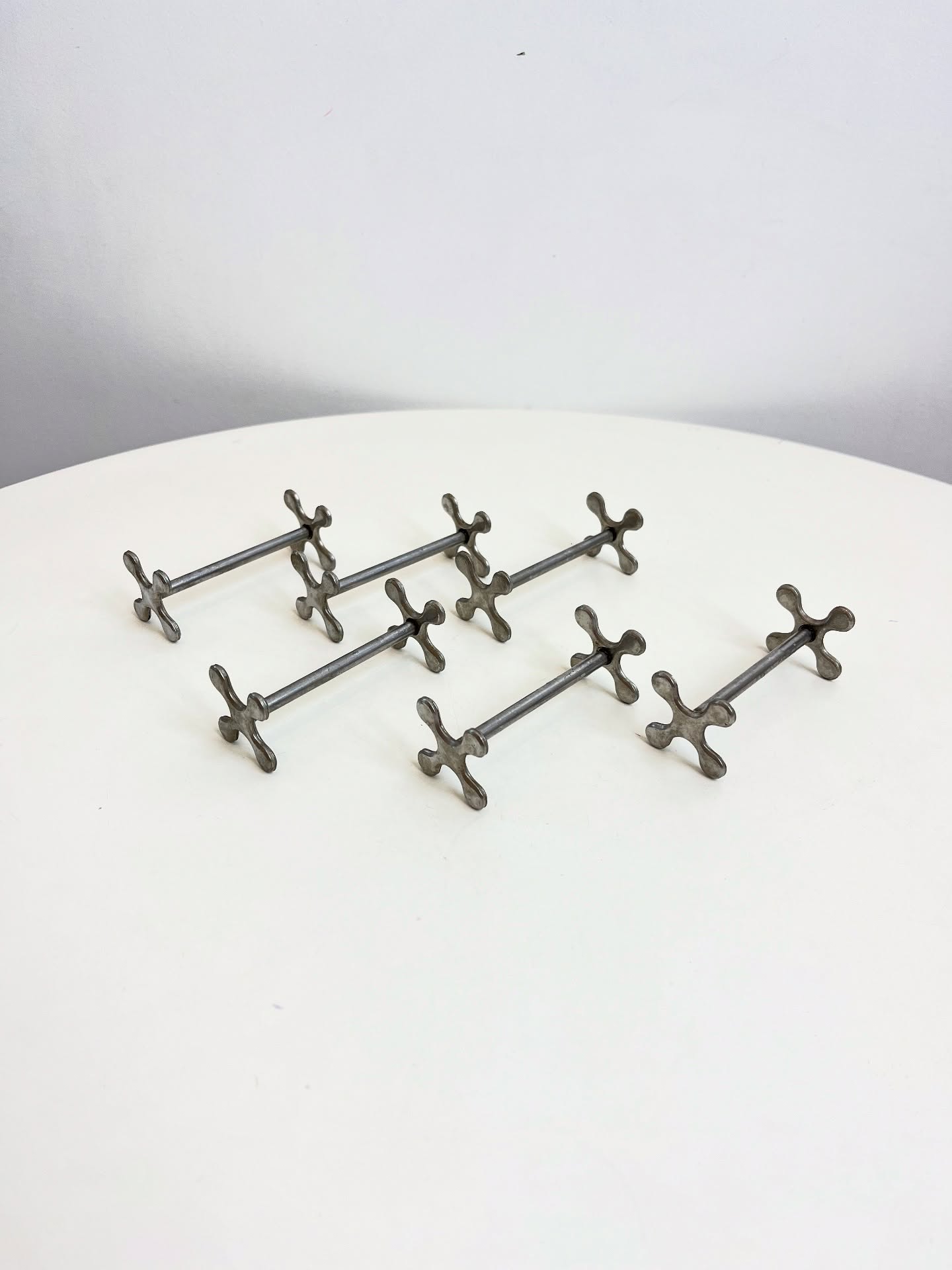 Jogo com 6 apoios de talher em metal. Leves marcas do tempo e uso.
