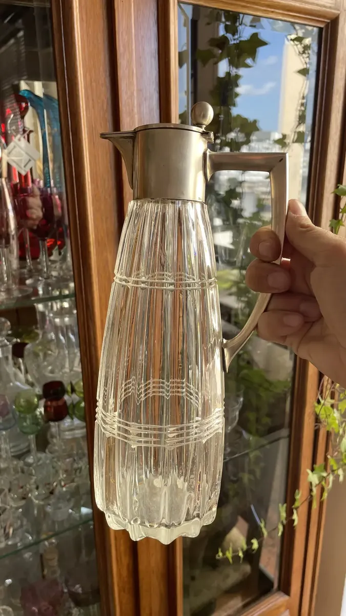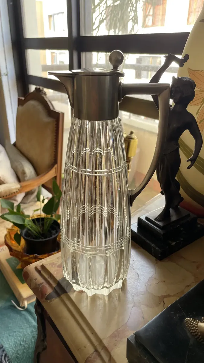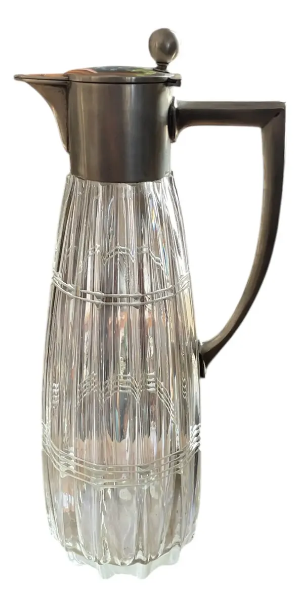 Finíssima jarra em cristal italiano lapidado à mão, com detalhes em prata de lei, teor 800. Peça muito versátil e elegante. Período Art Deco, década de 1920.