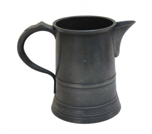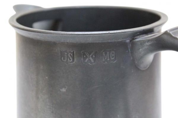 Jarra de estanho com pega lateral trabalhada, da manufatura J S X MG.