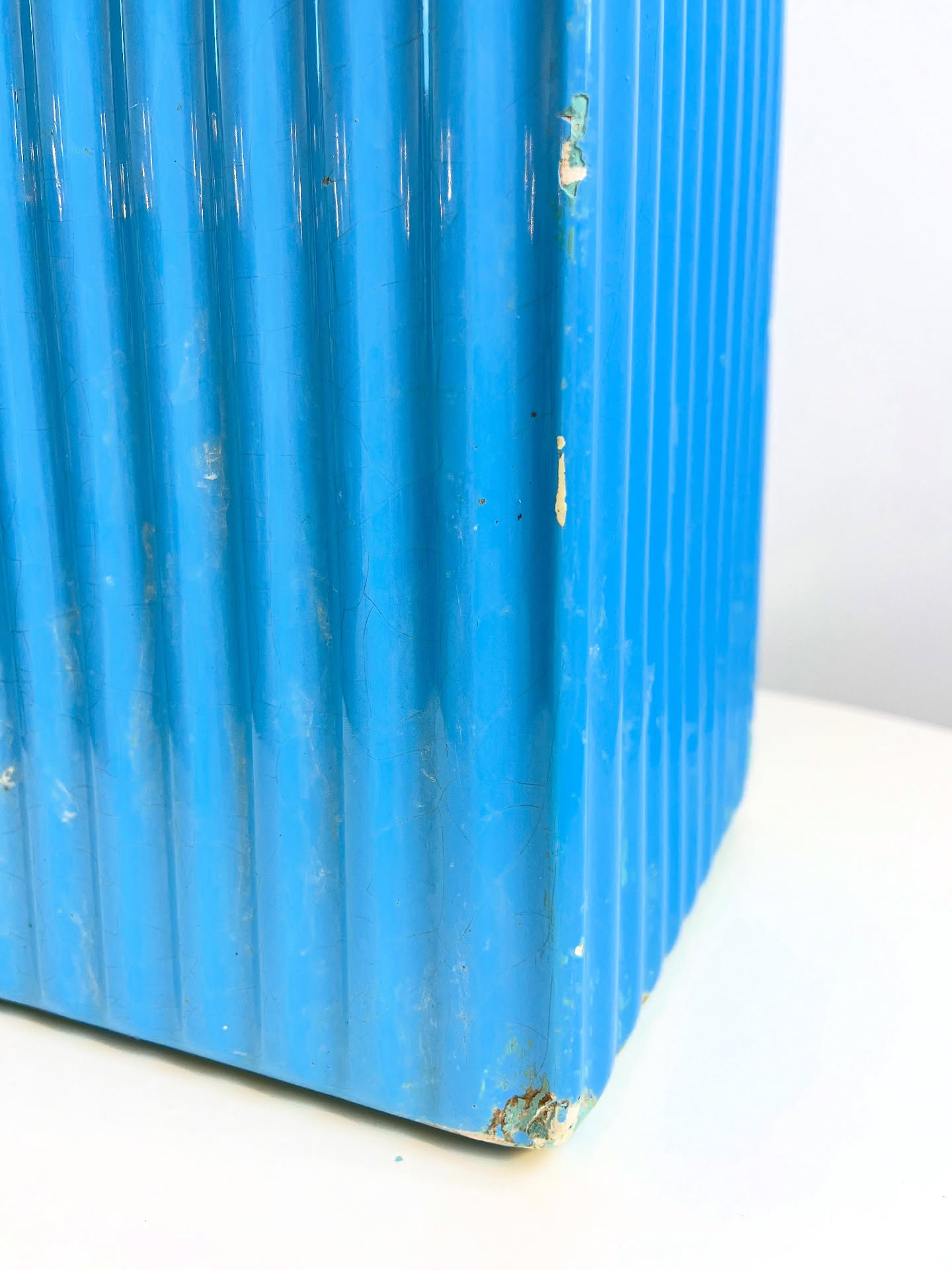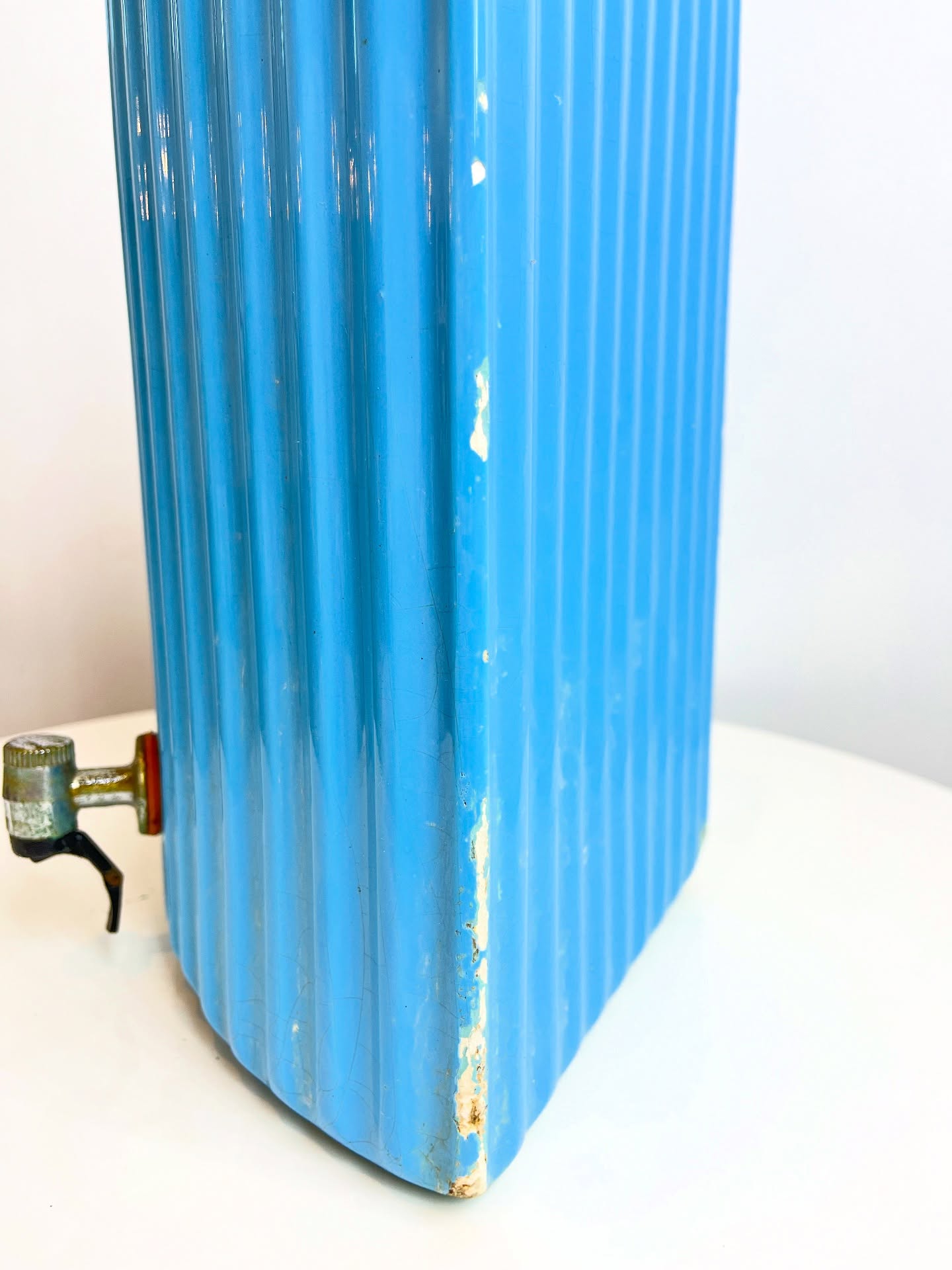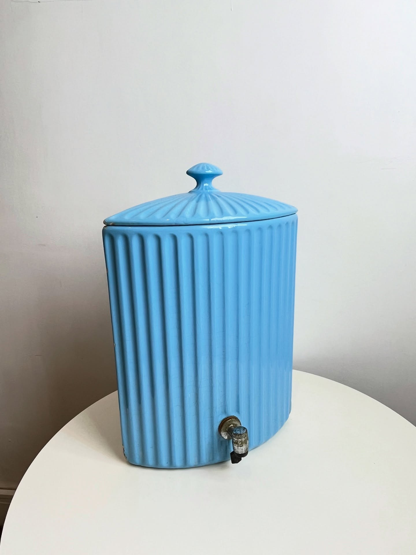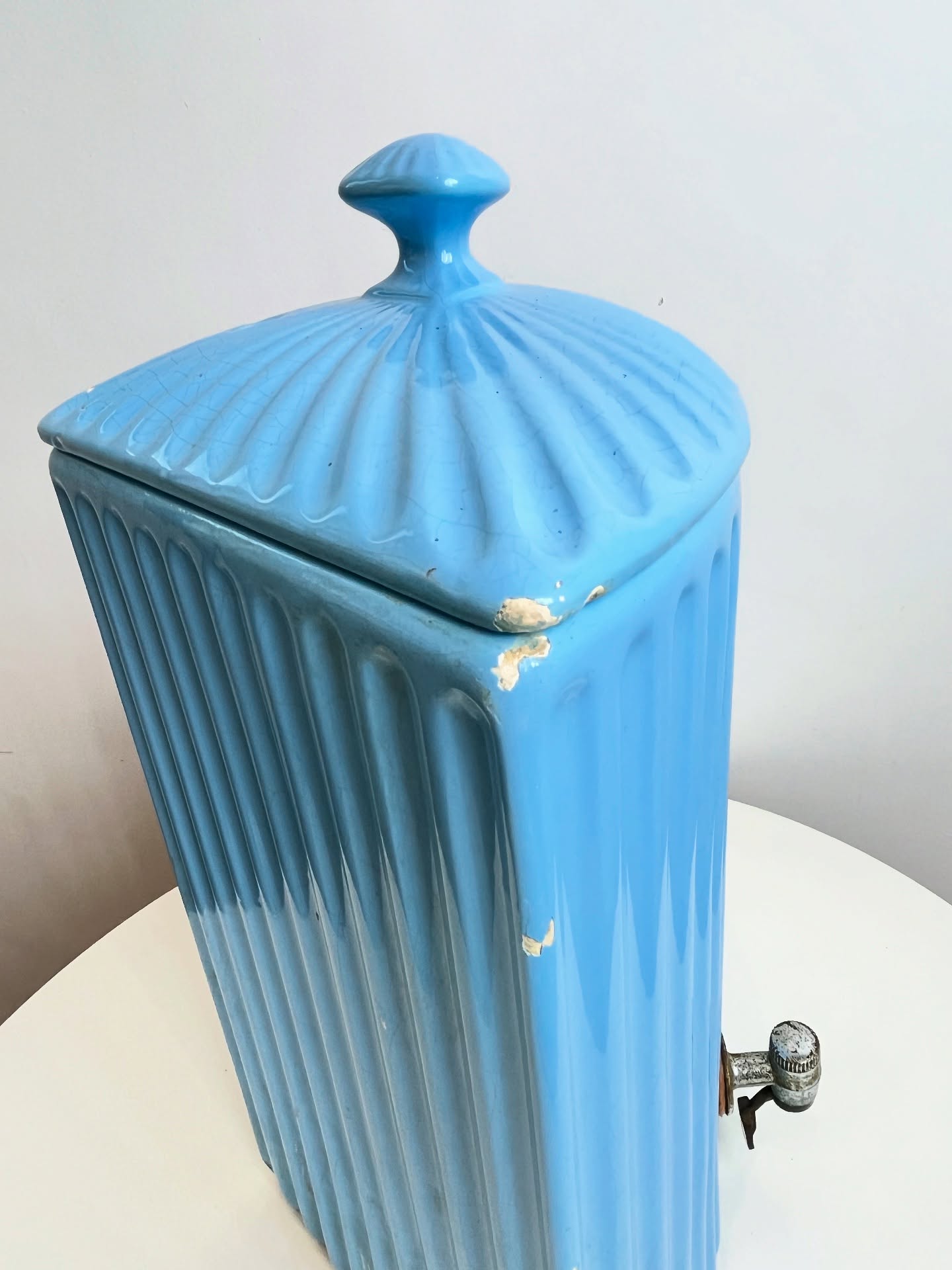 Grande talha em cerâmica esmaltada azul clara, para cantos 90 graus. Apresenta vários lascados como mostrado nas fotos. Precisa trocar o bocal do filtro.