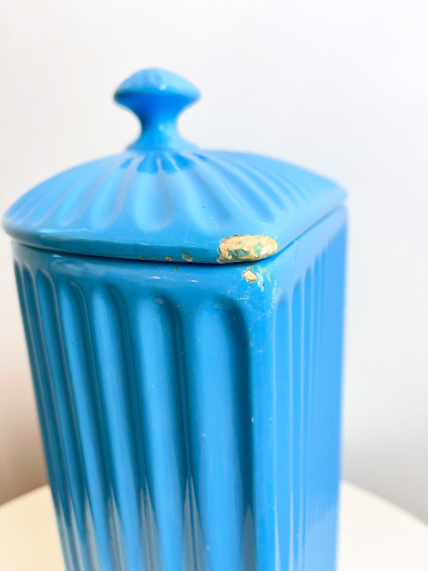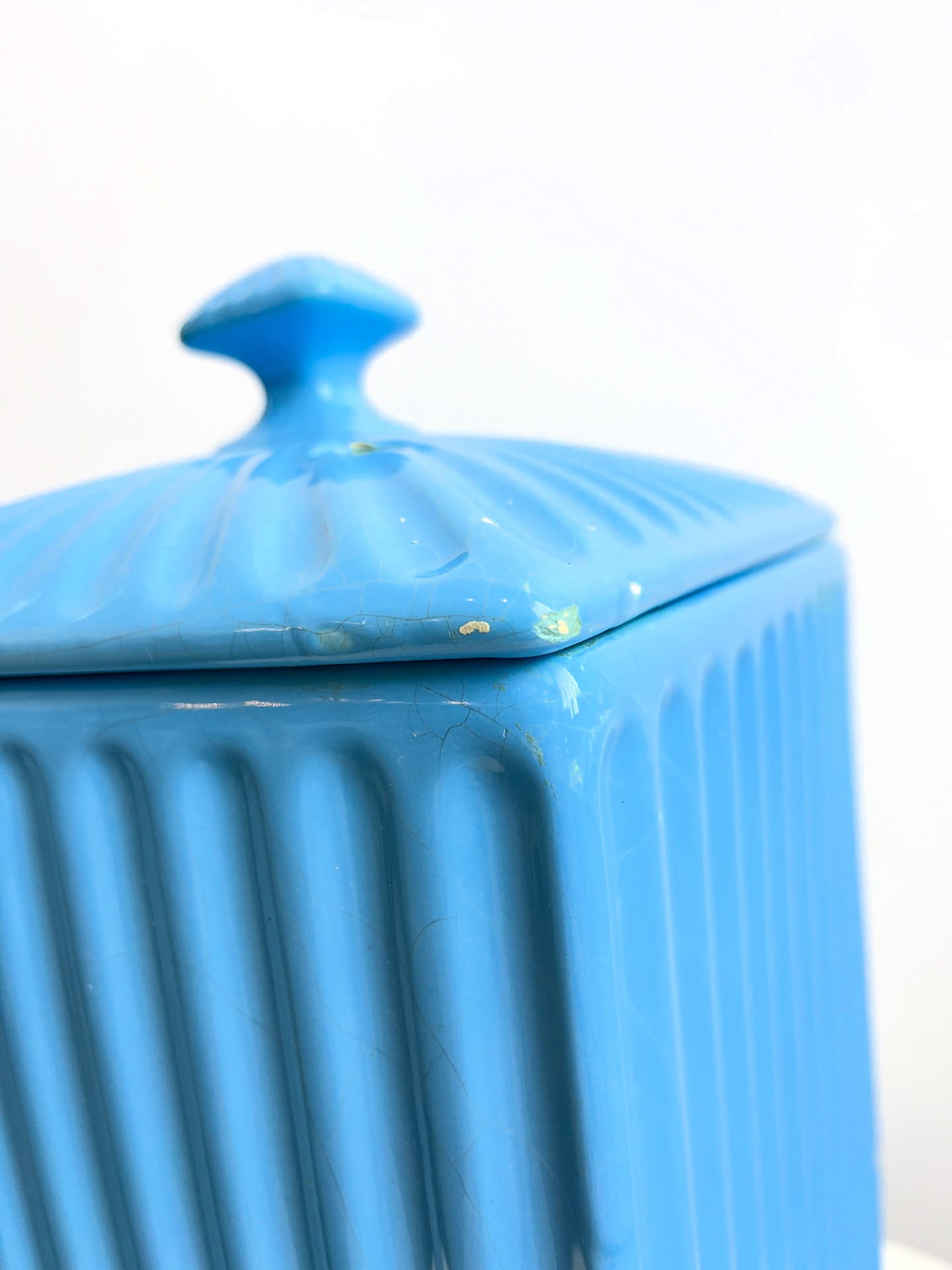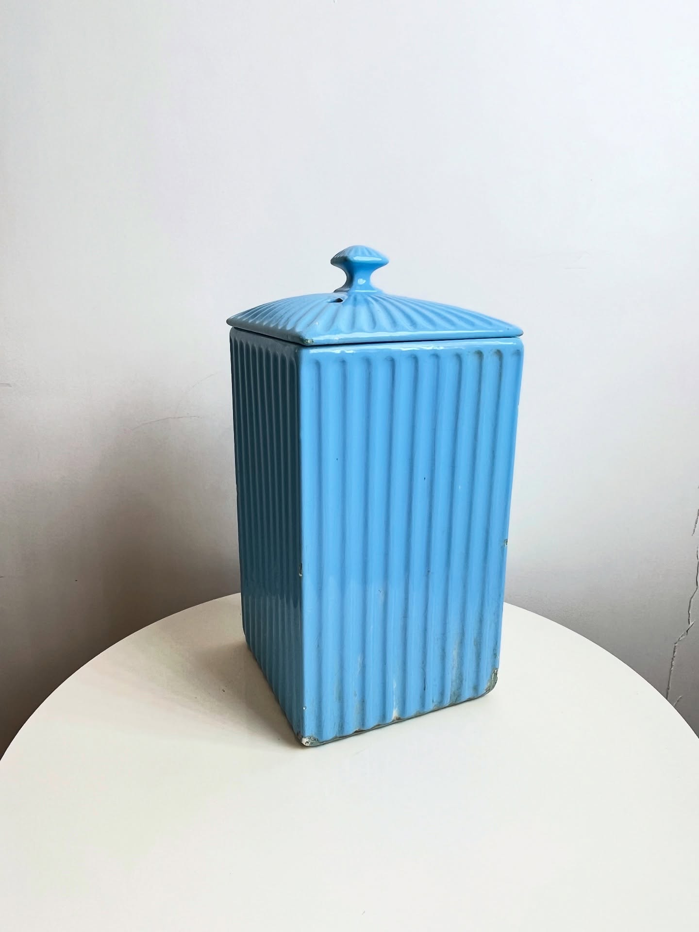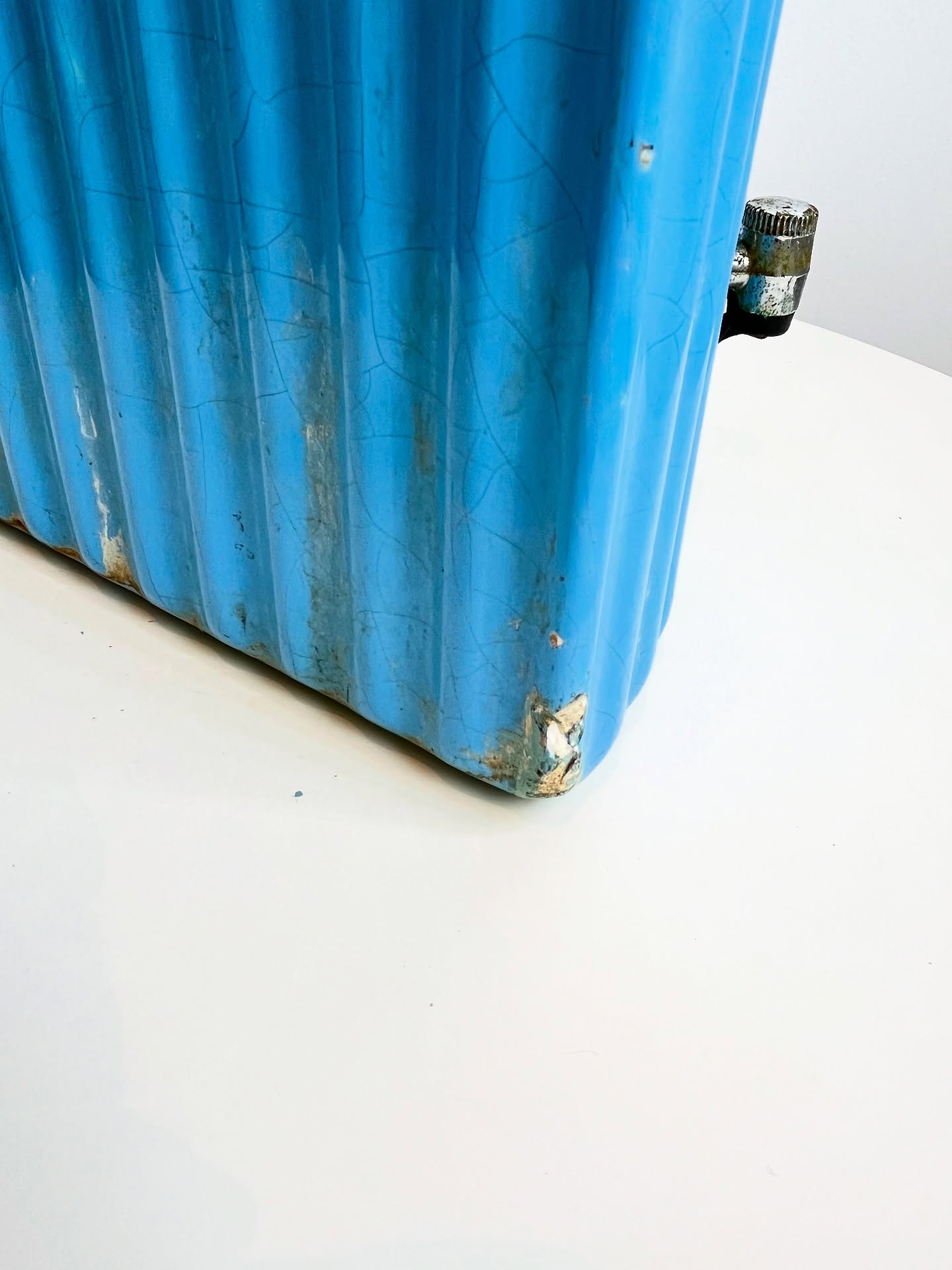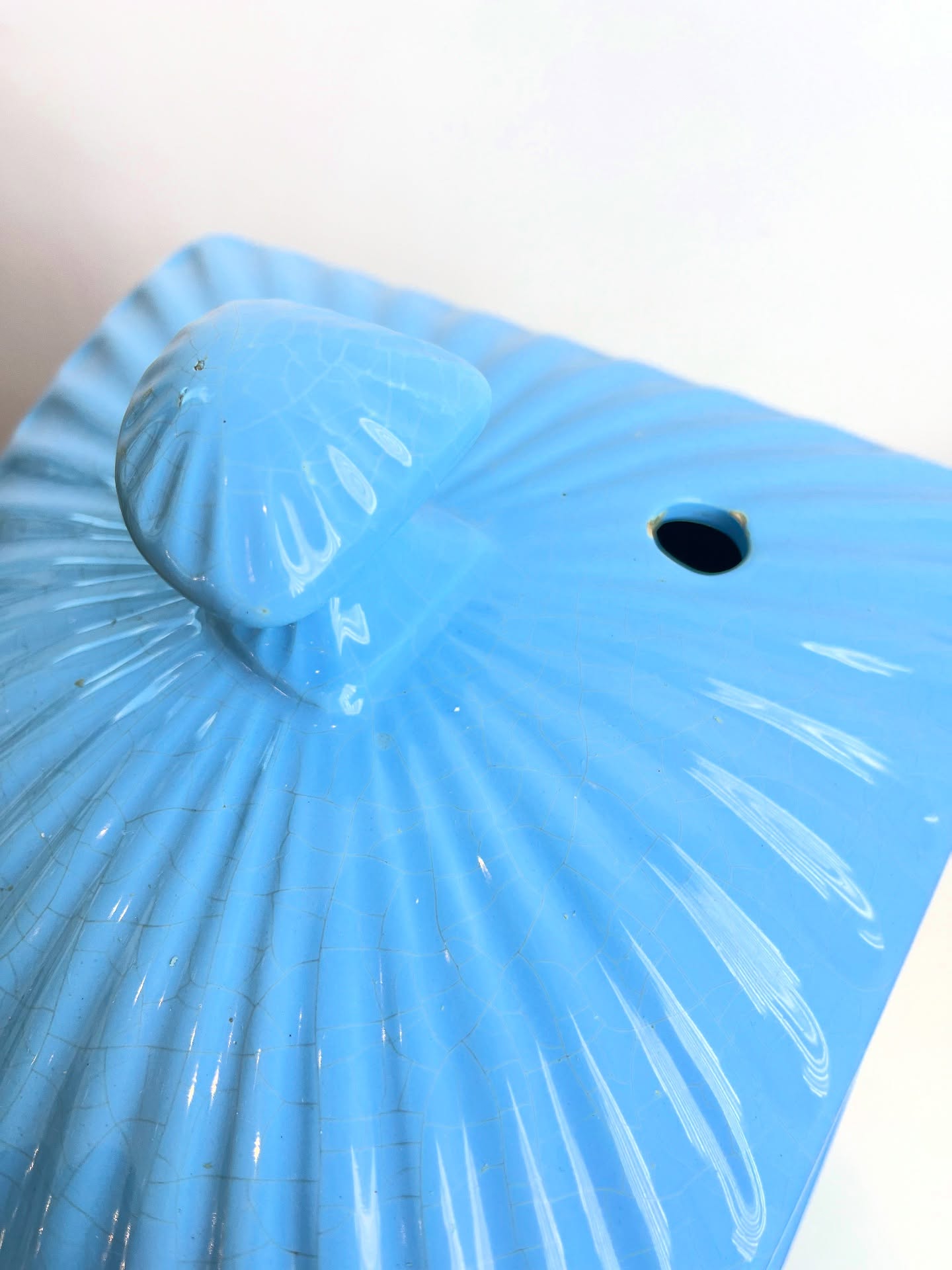 Grande talha em cerâmica esmaltada azul clara, para cantos 90 graus. Apresenta vários lascados como mostrado nas fotos. Precisa trocar o bocal do filtro.