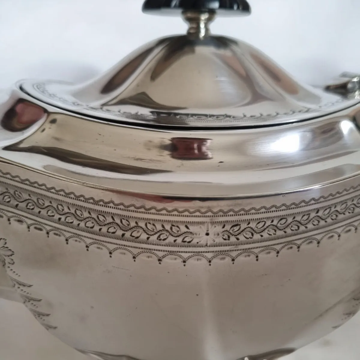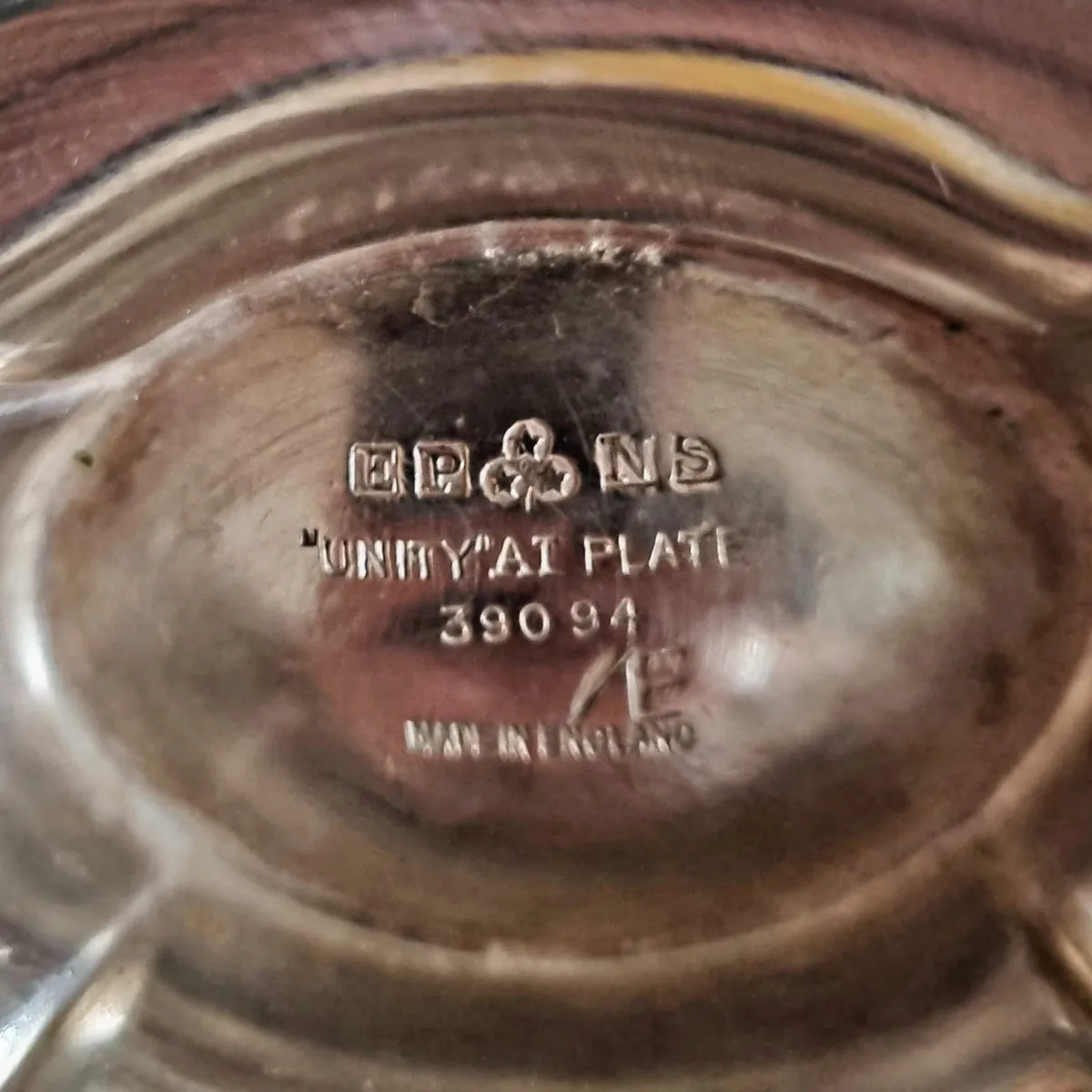 A prata E.P.N.S. da Inglaterra é um tipo de revestimento de prata popular em utensílios de mesa e objetos decorativos, apreciado por sua beleza, durabilidade e preço acessível em comparação com a prata maciça.