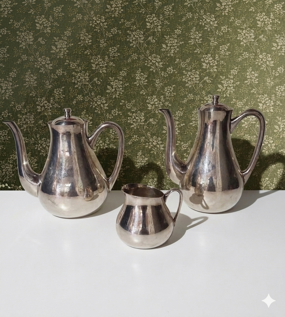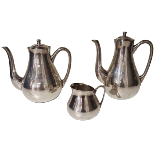 Belíssimo conjunto Wolff para chá e café confeccionado em metal espessurado à prata, estilo Art Déco do século XX. Composto de três peças, sendo, um bule para chá, um bule para café e uma cremeira. Um jogo muito elegante e clássico, desta marca alemã que fabrica peças de excelência!