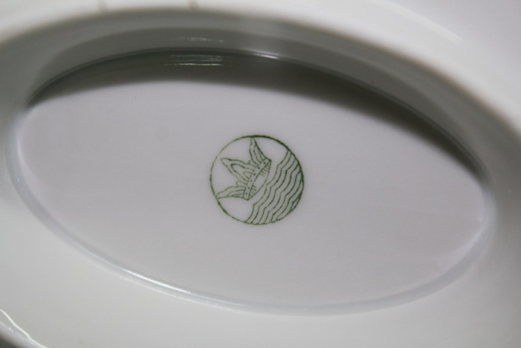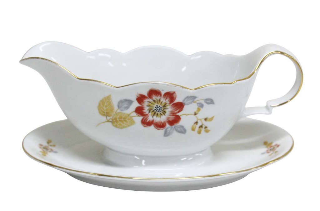 Antiga molheira em porcelana branca com decoração de flores em policromia remanescente de jogo europeu alemão.