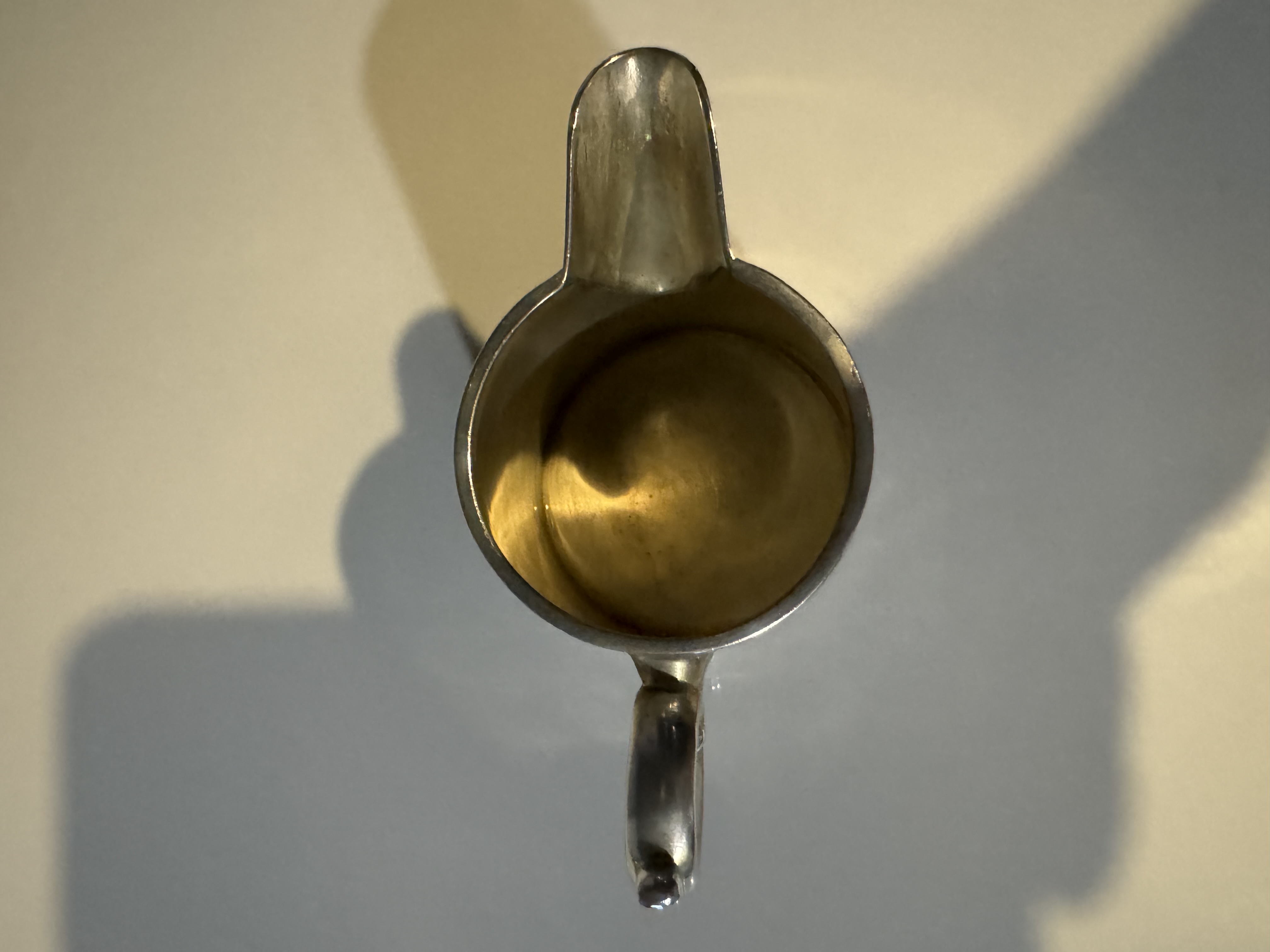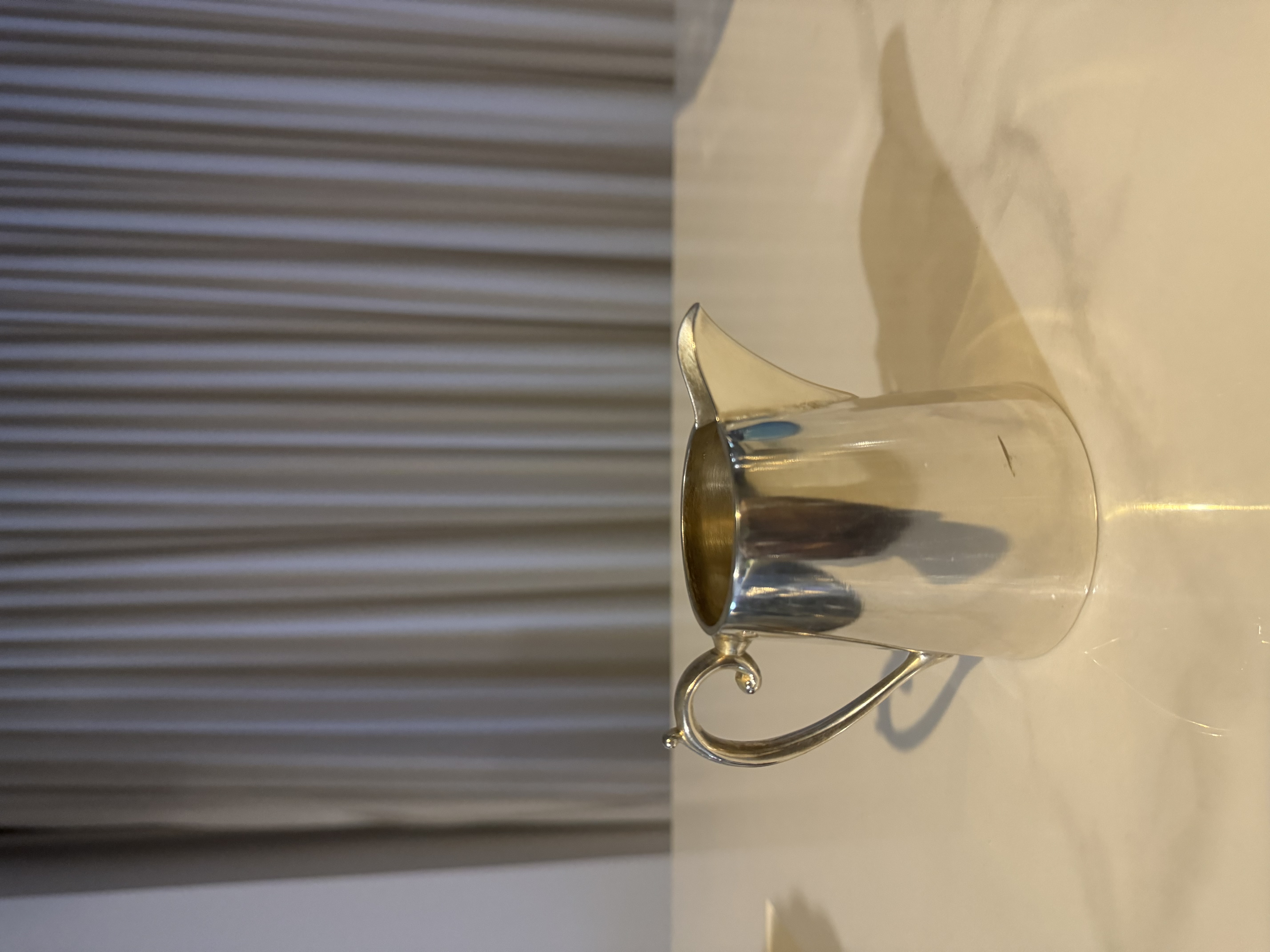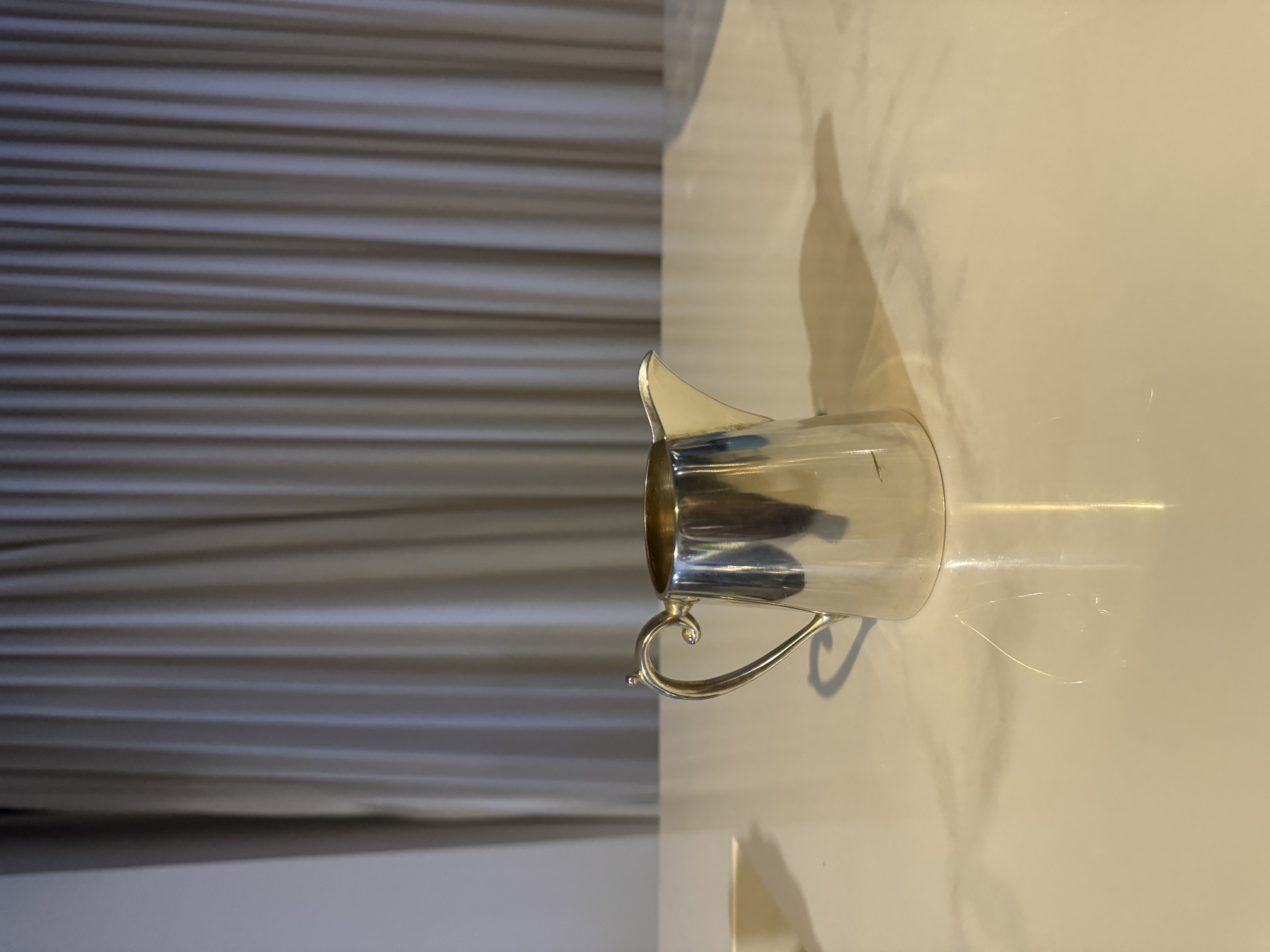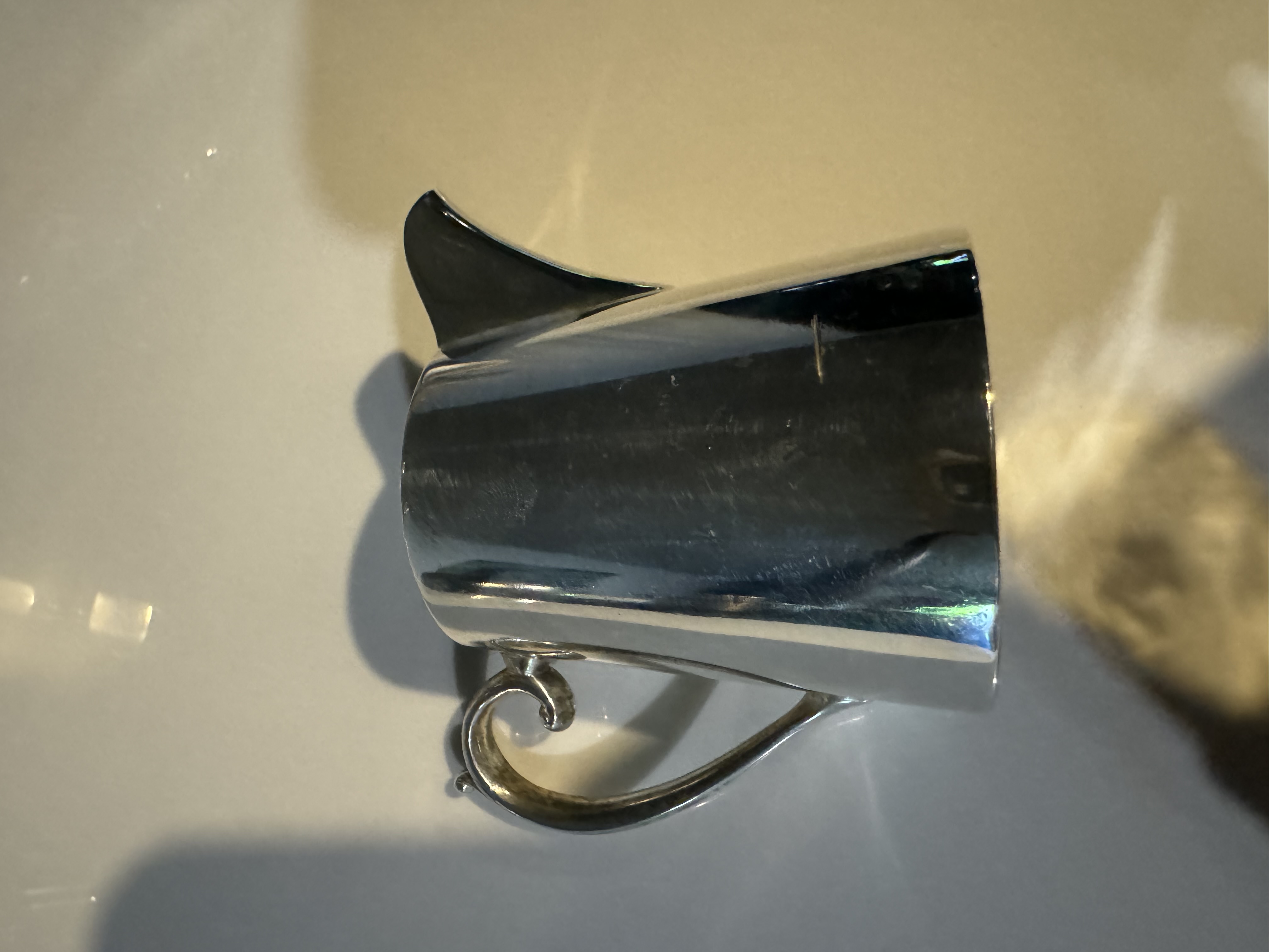 Elegante mini leiteira em prata espessurada da tradicional casa inglesa Mappin & Webb, modelo Prince’s Plate, produzida em London & Sheffield.