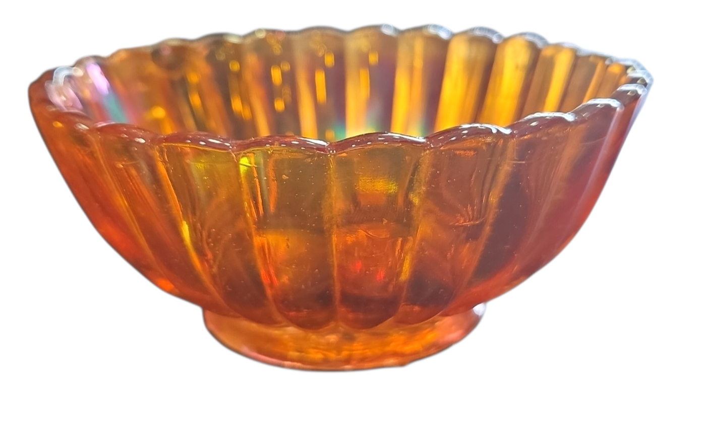 Traga o charme das feiras de antiguidade para a sua mesa. Esta xícara de Carnival Glass não é apenas um item utilitário, mas uma peça de destaque que muda de cor sob a luz, criando um efeito visual mágico e sofisticado.