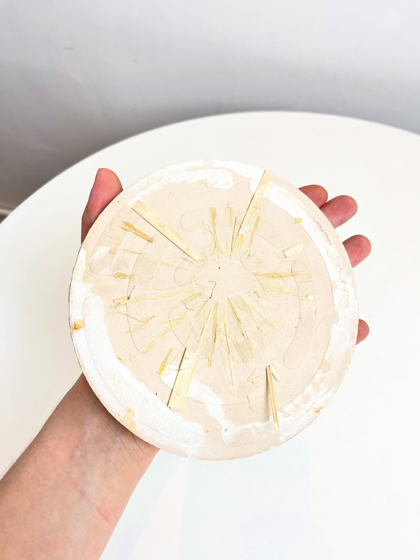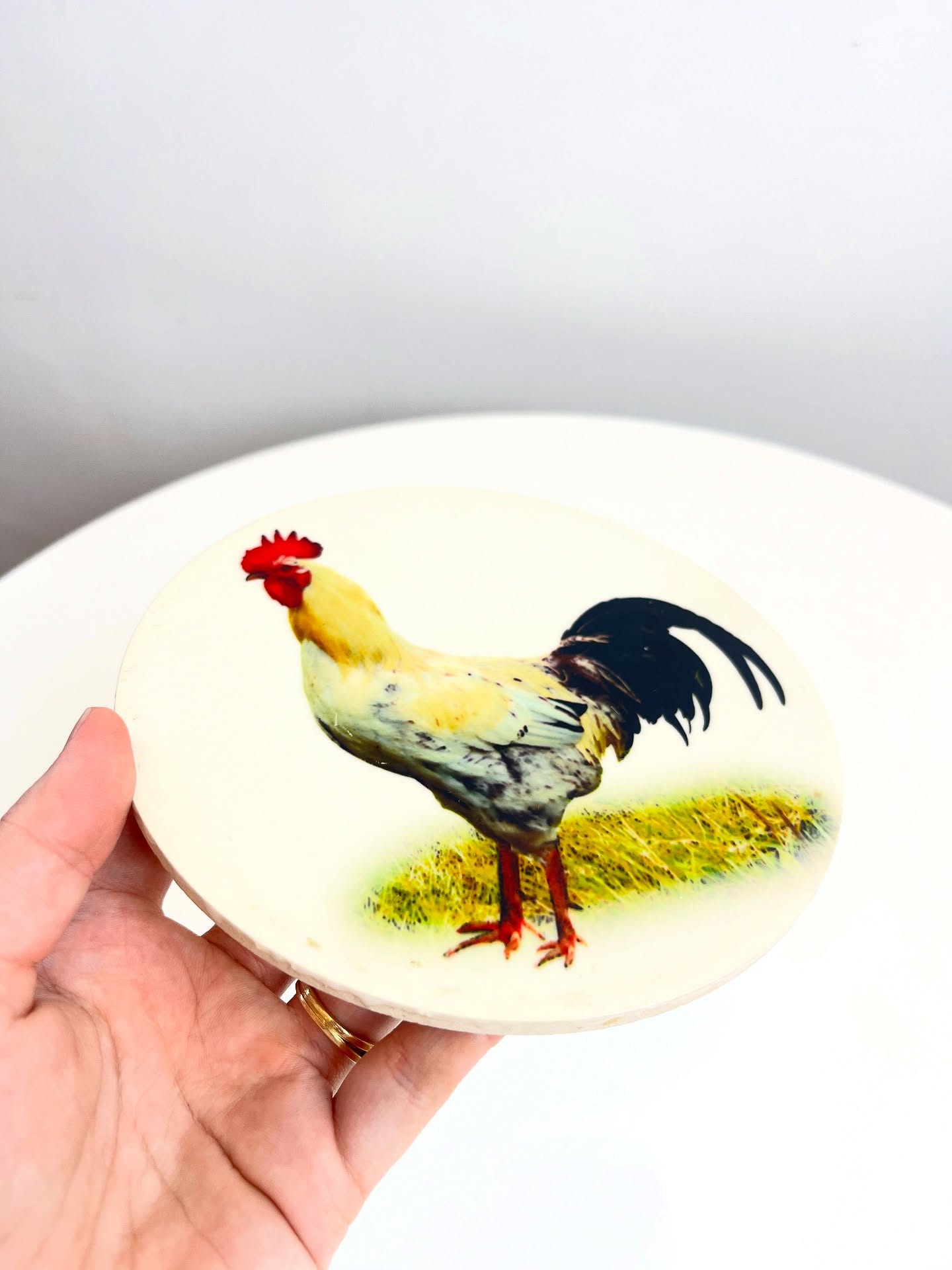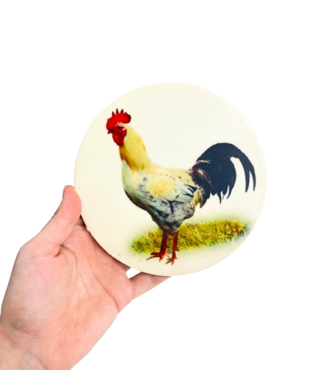 Apoio de panela, ou se preferir dá pra colocar um suporte para pendurar, em cerâmica estampada. Marcas do tempo e uso como nas fotos.