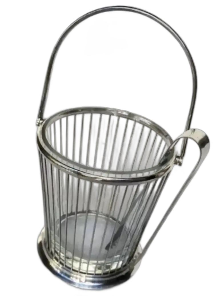 Balde de gelo e pegador em prata com balde de vidro nunca usado retrô