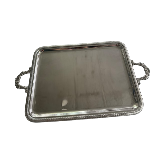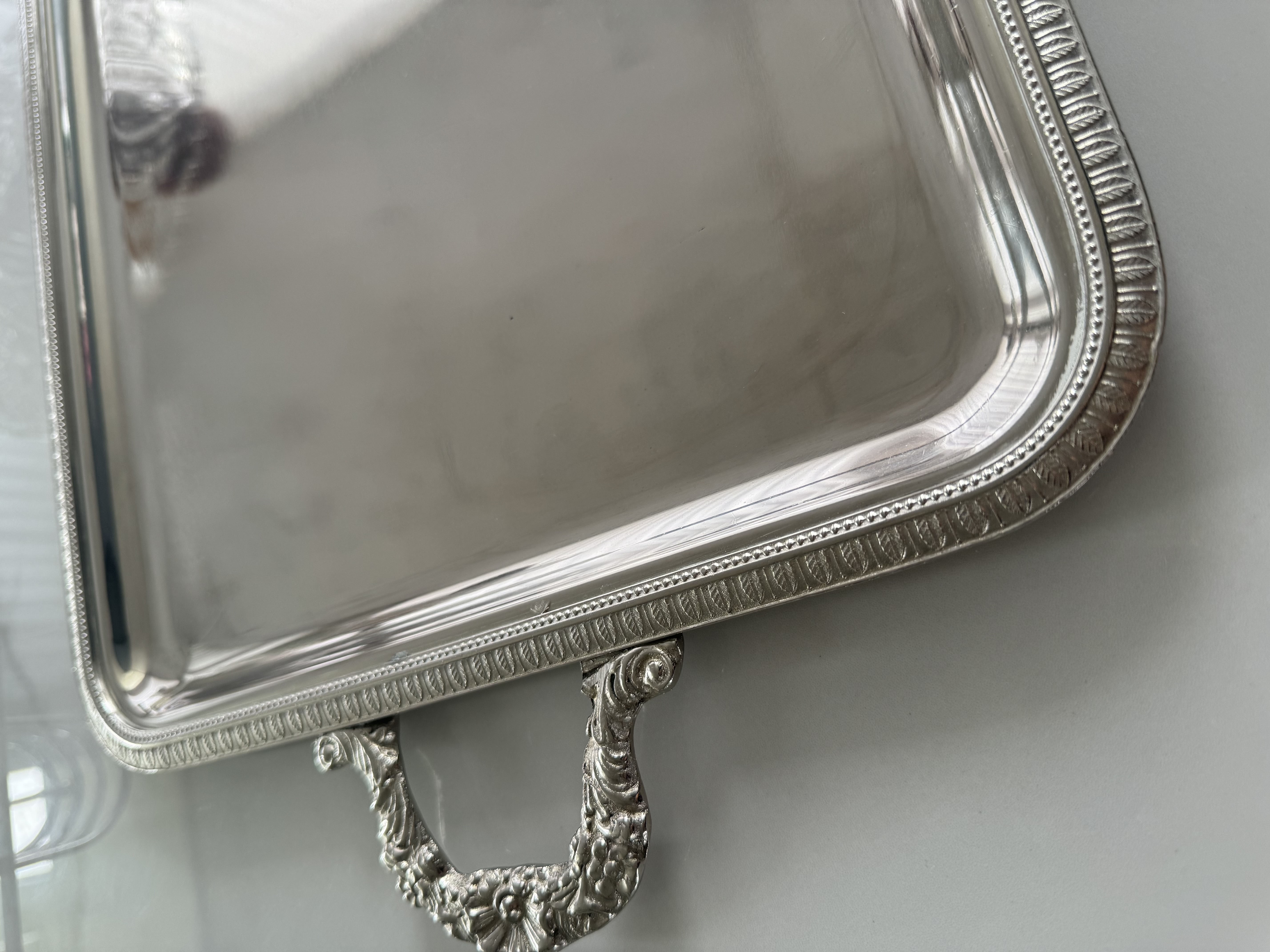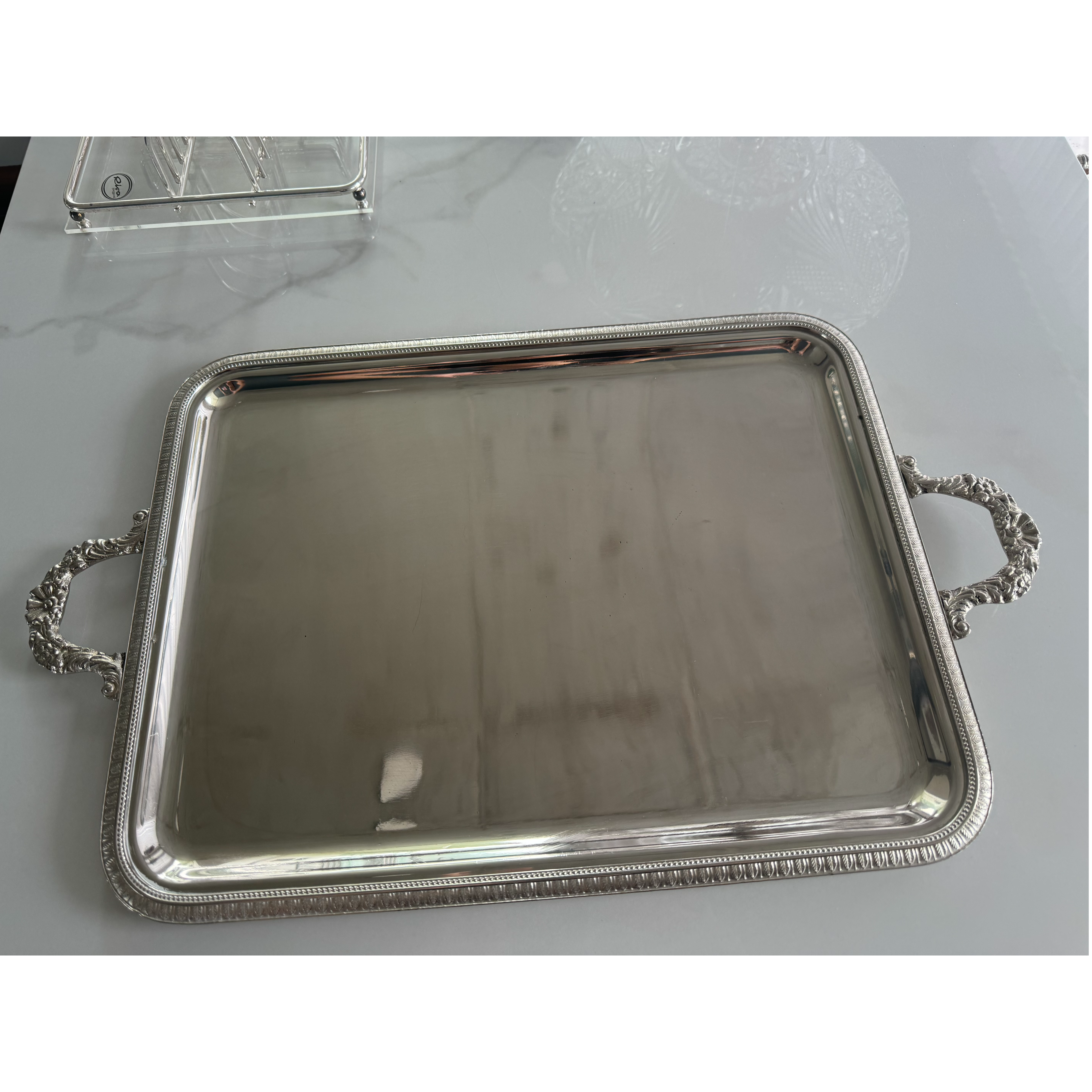 Bandeja retangular da tradicional maison francesa Christofle, referência mundial em prataria de alto padrão.