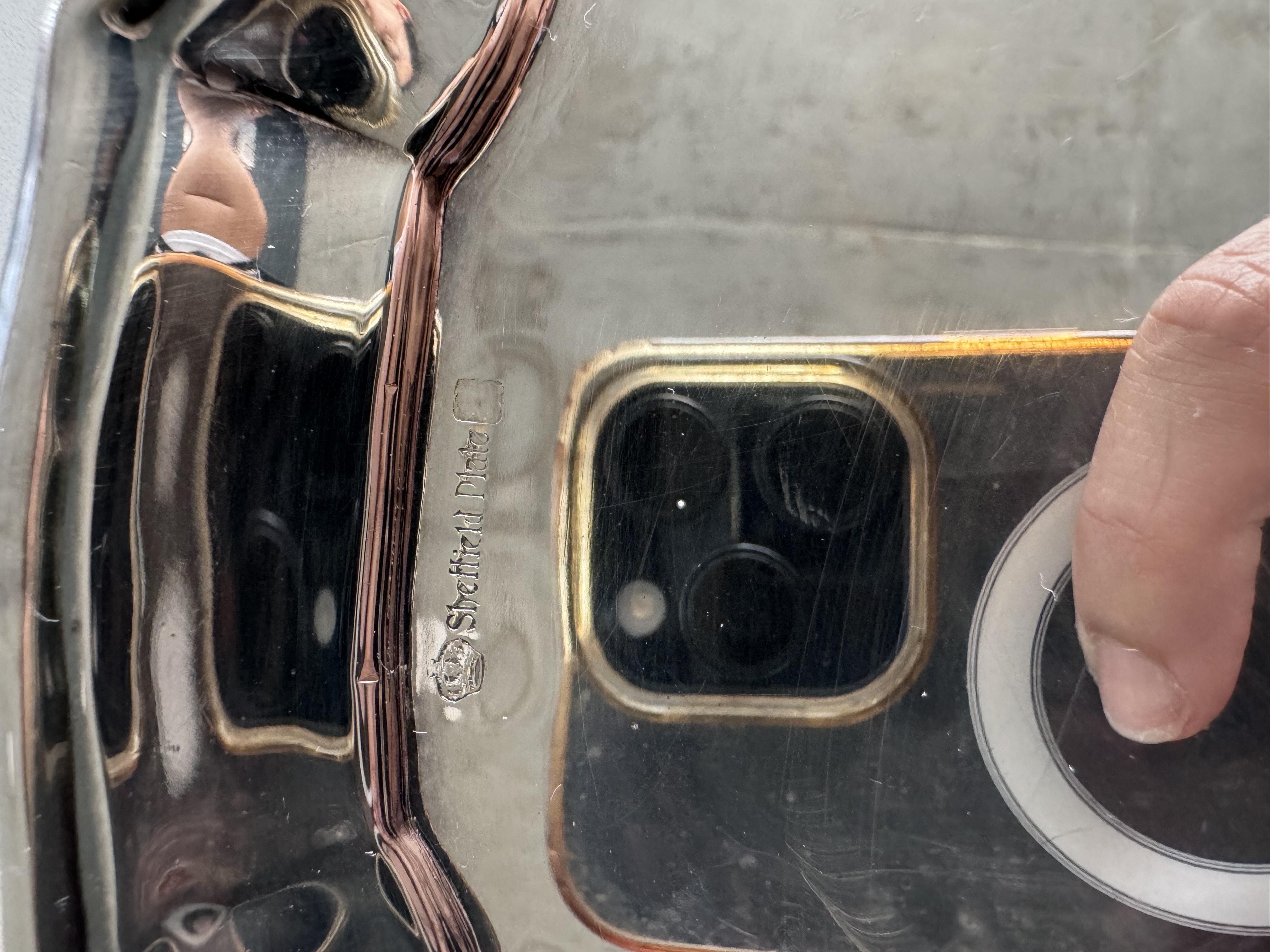 Brilho espelhado bonito, com marcas naturais do tempo no centro (micro riscos compatíveis com uso e idade), sem amassados ou danos estruturais.