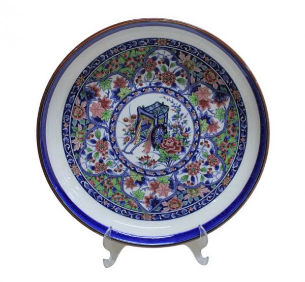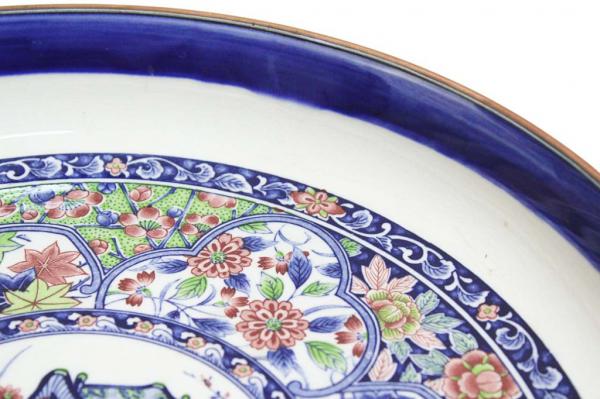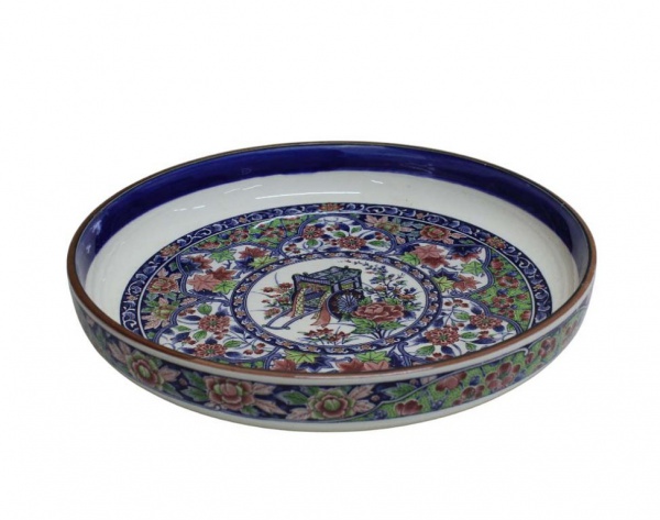 Exuberante centro de mesa em cerâmica vitrificada, pintada à mão com motivos florais em policromia, barrado externo de flores. MADE IN JAPAN.