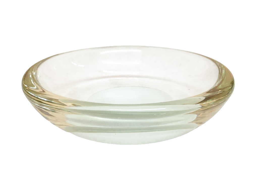 Pequeno centro de mesa contemporâneo em murano na tonalidade translúcida e centro na cor branca.