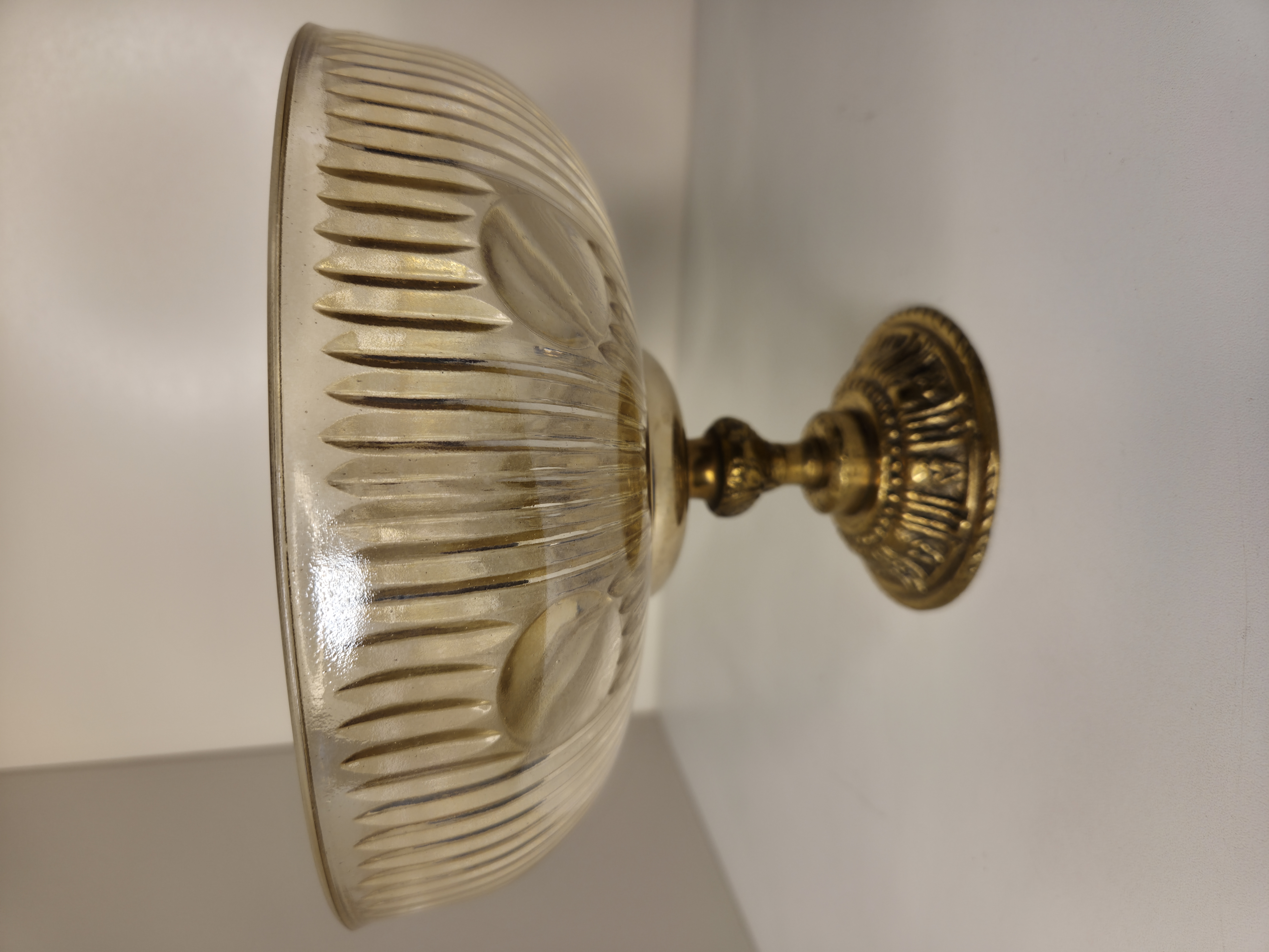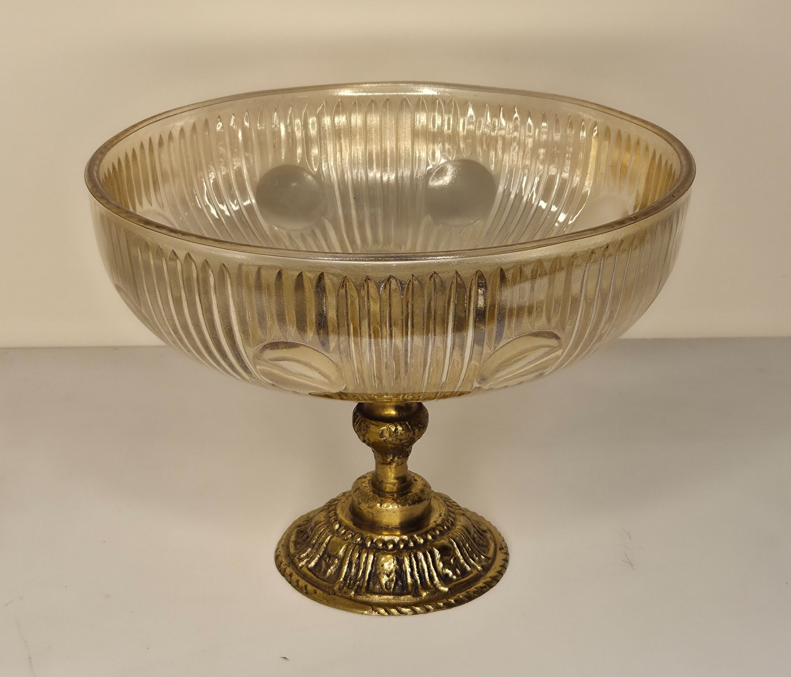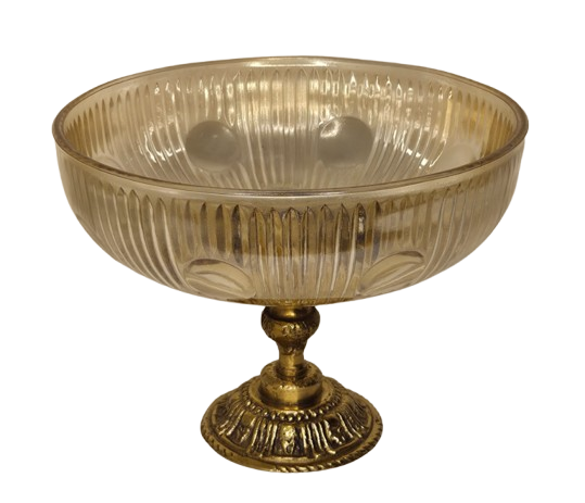 Uma peça de presença que redefine a elegância da sua sala de jantar. Este centro de mesa combina a robustez e o brilho eterno do bronze com a delicadeza translúcida do vidro em tom âmbar. O contraste entre o metal trabalhado e o calor da cor âmbar cria um jogo de luz hipnotizante, tornando-o a peça central perfeita para mesas de madeira nobre ou superfícies espelhadas.