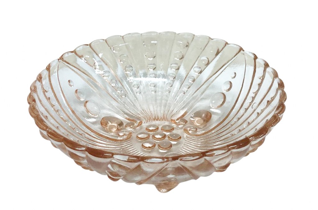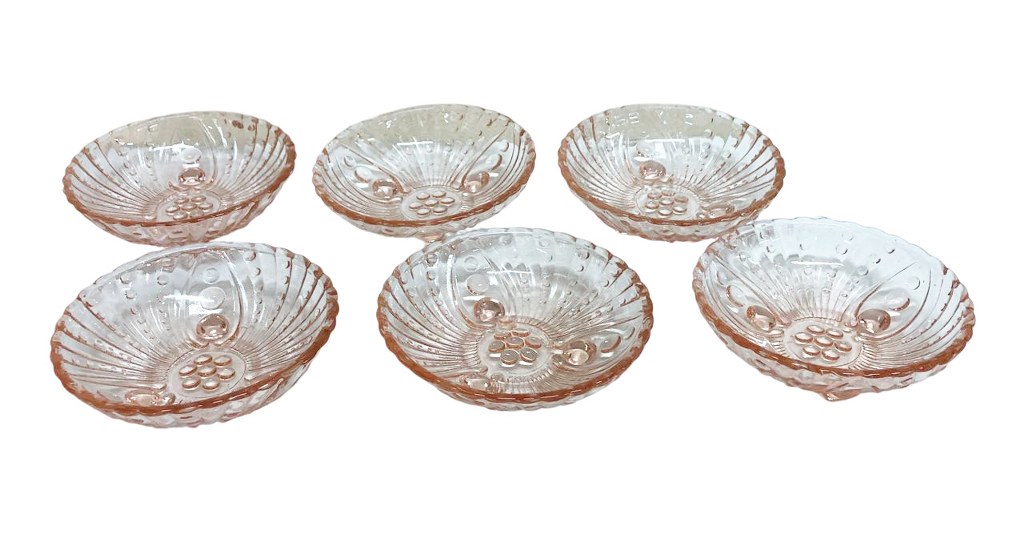 Conjunto de saladeira contendo 7 peças em vidrão na tonalidade âmbar, todas as peças com assente em tripé com formato de bolas. Medidas: saladeira 8A x 22D e 6 saladeiras menores 4A X 12cm de diâmetro