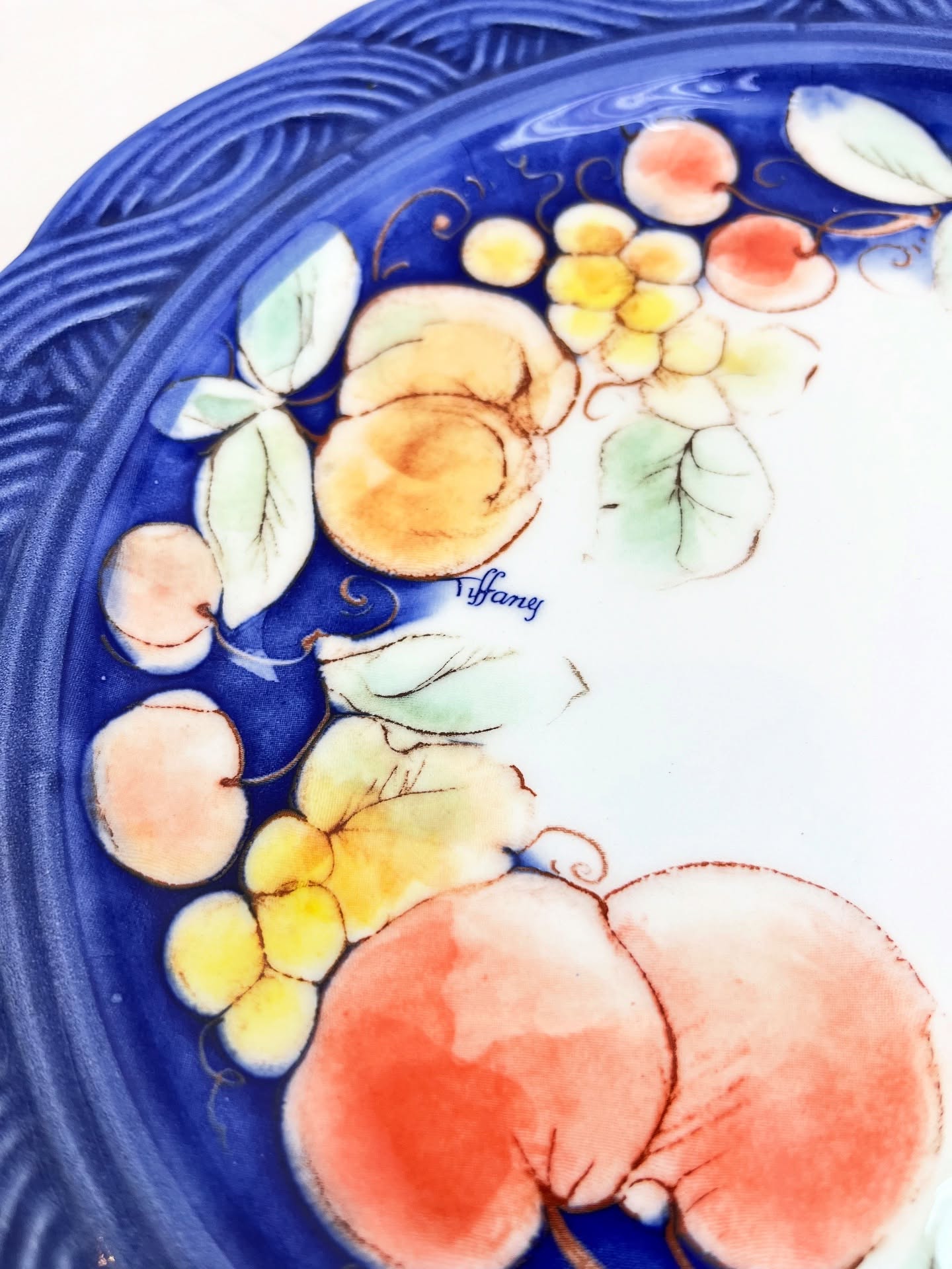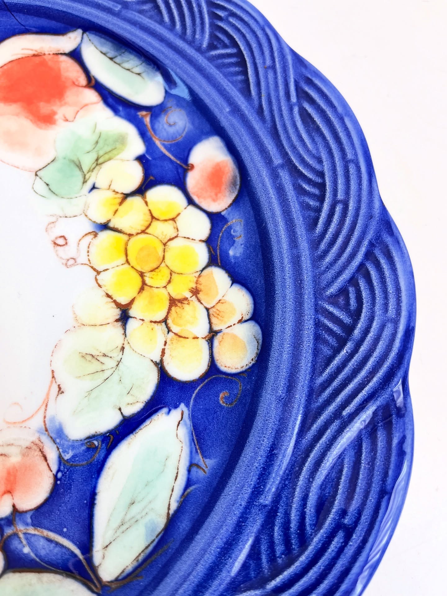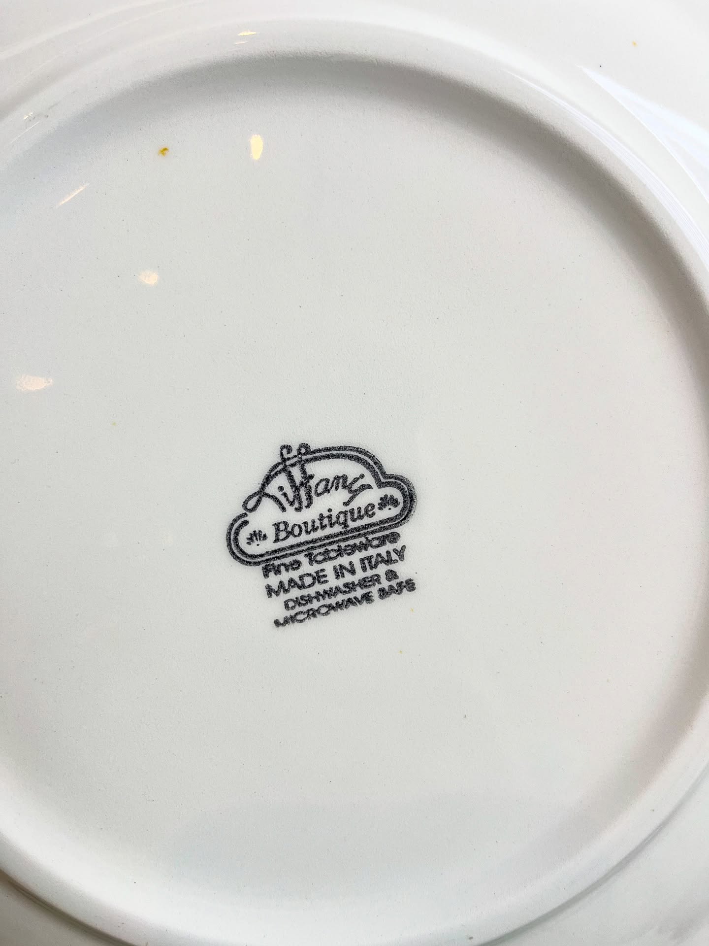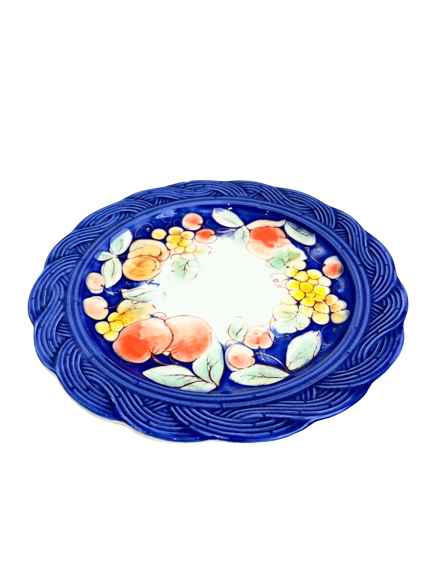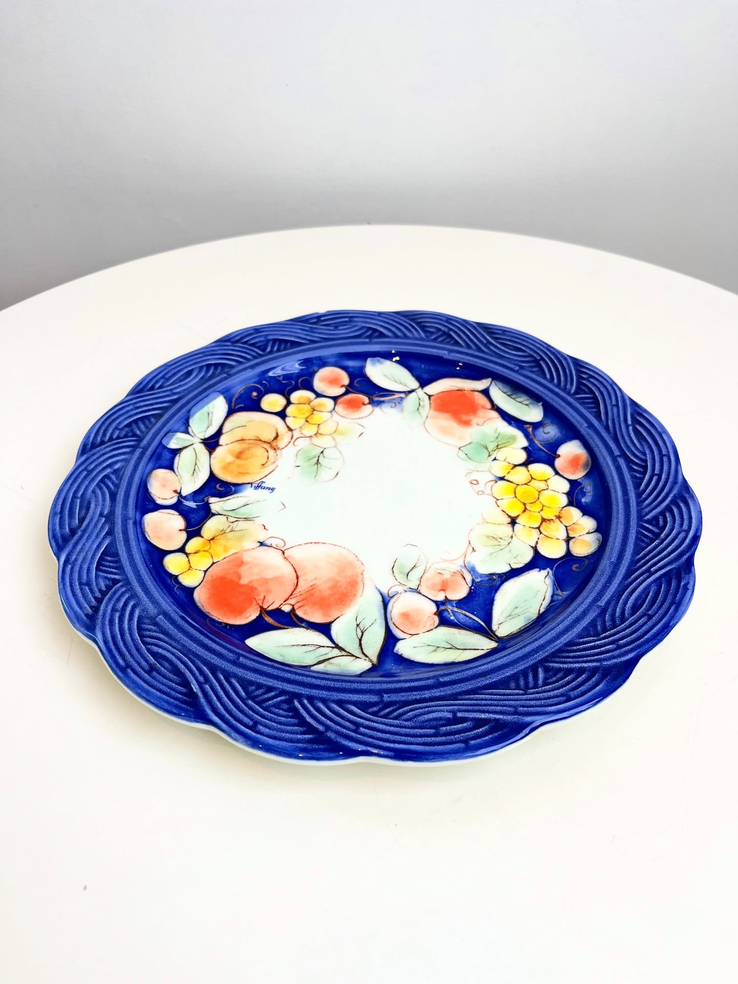 Prato para doces em porcelana italiana estampada. Possui um lascado na borda como nas fotos.