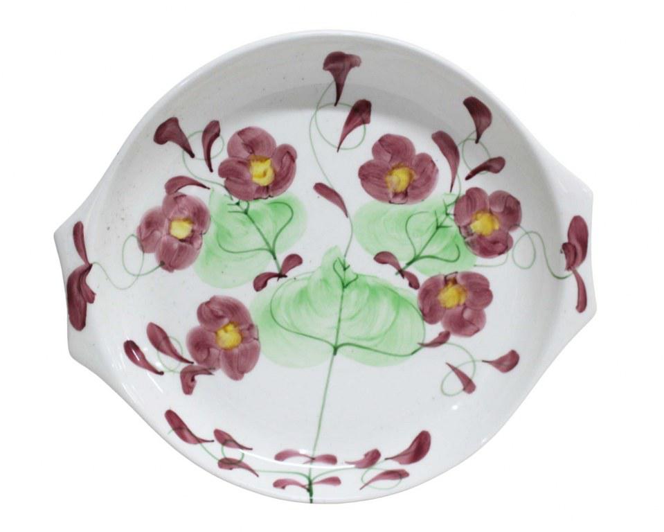 Refratário em cerâmica, com decoração floral policromada e pegas laterais. Manufatura INCA, refratário para forno e mesa.